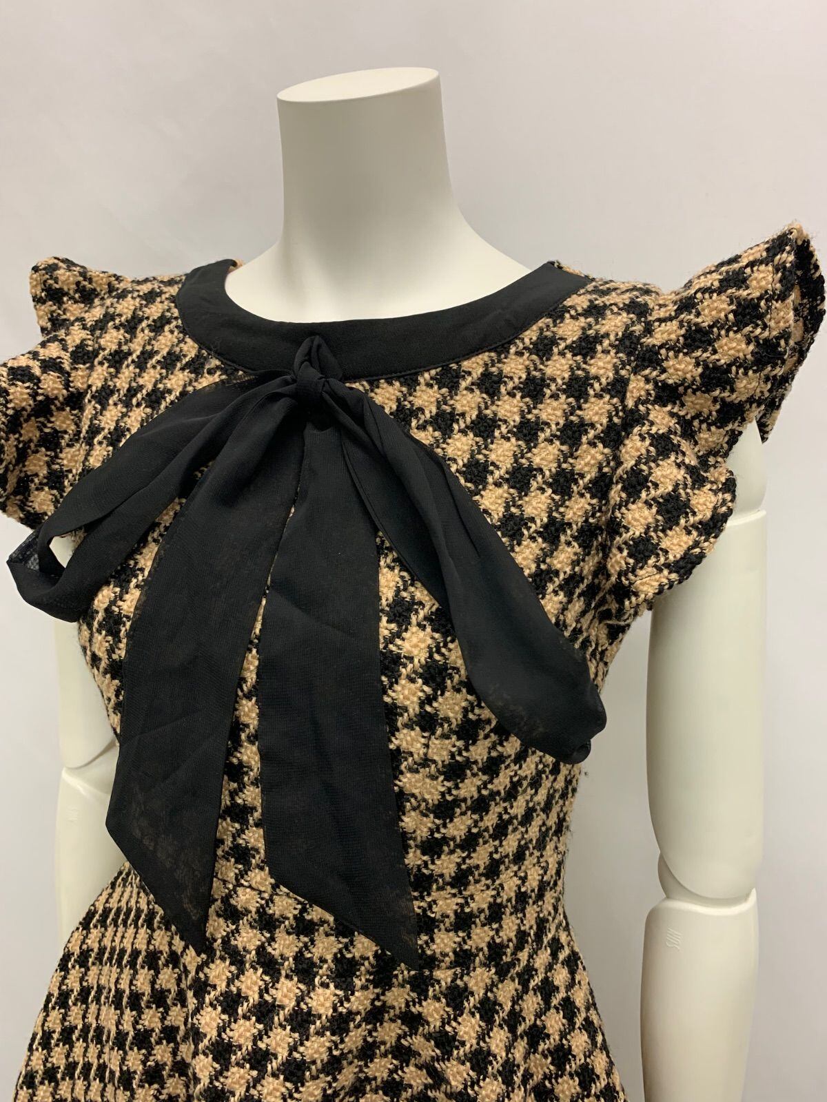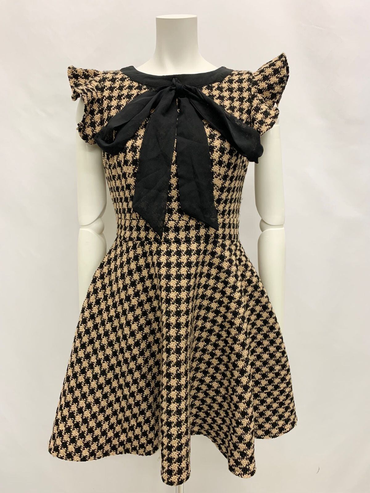 1467 JEWELS ジュエルズ キャバクラ ドレス ツイード チェック リボン フレア ミニ タイト キャバドレス S