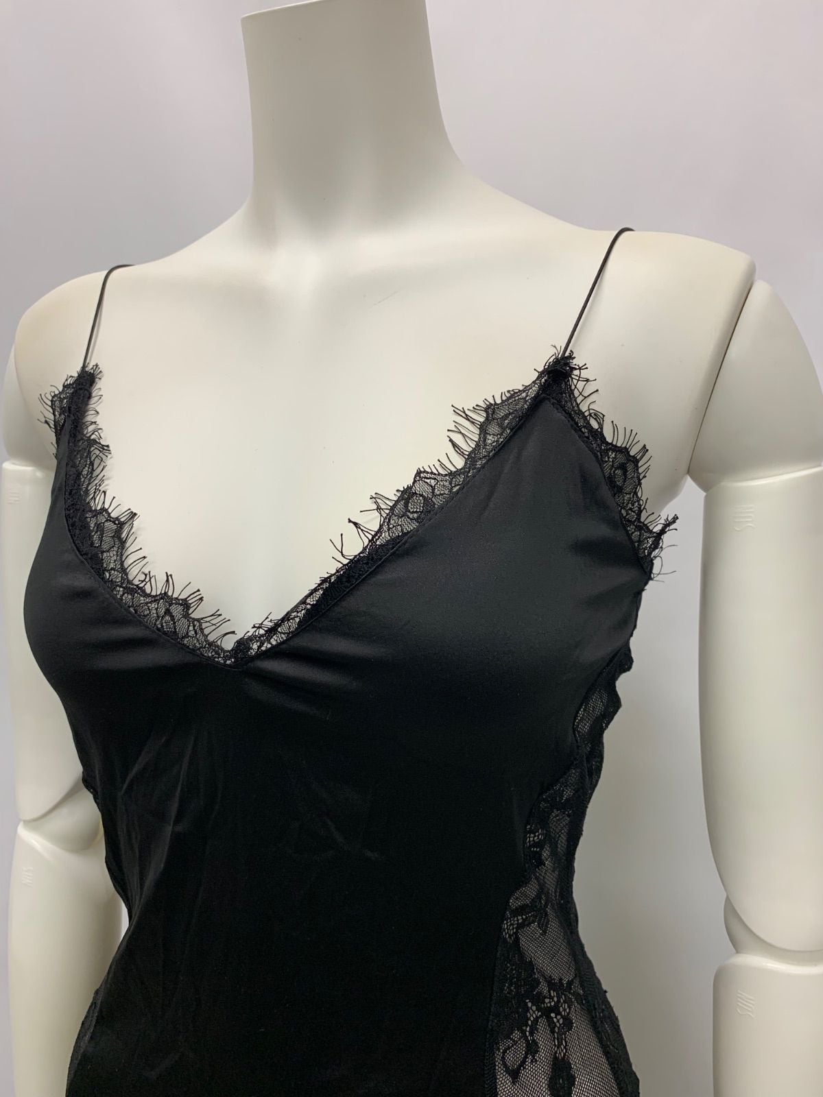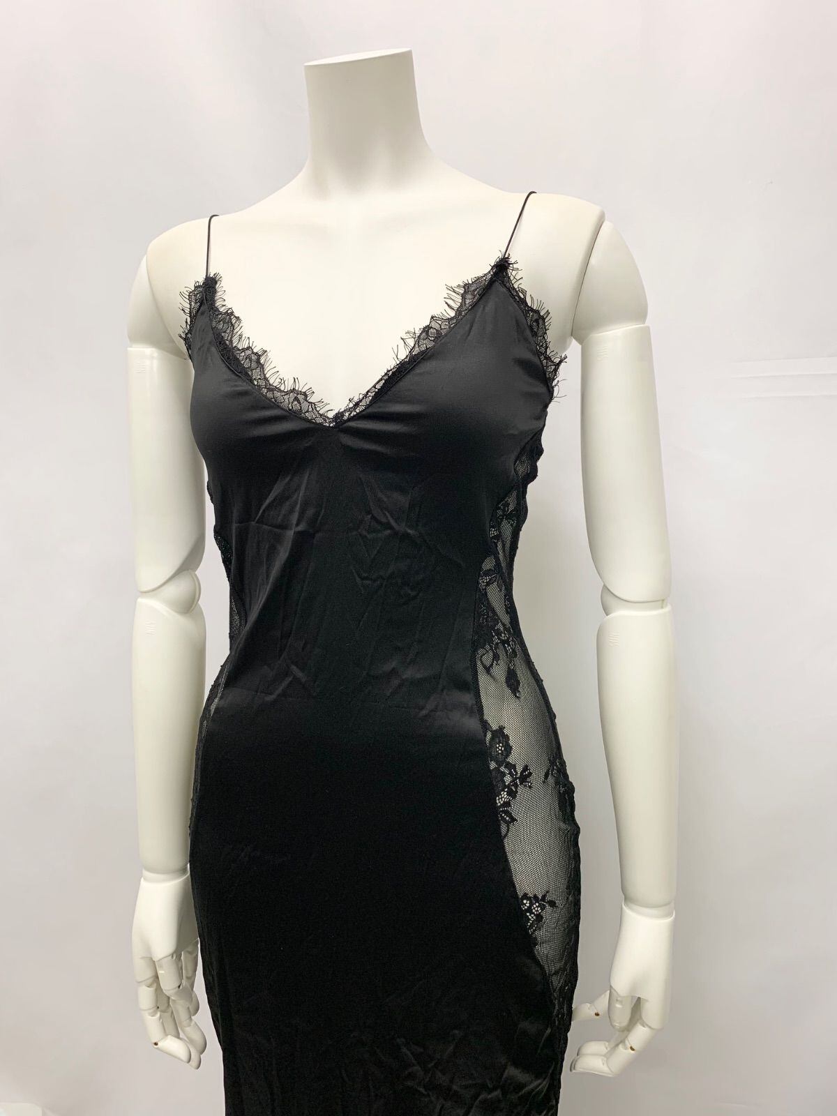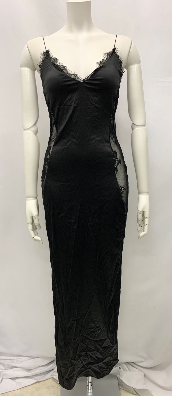 1485 キャバクラ ドレス ロングドレス サテン レース スリット キャミ シンプル キャバドレス XS