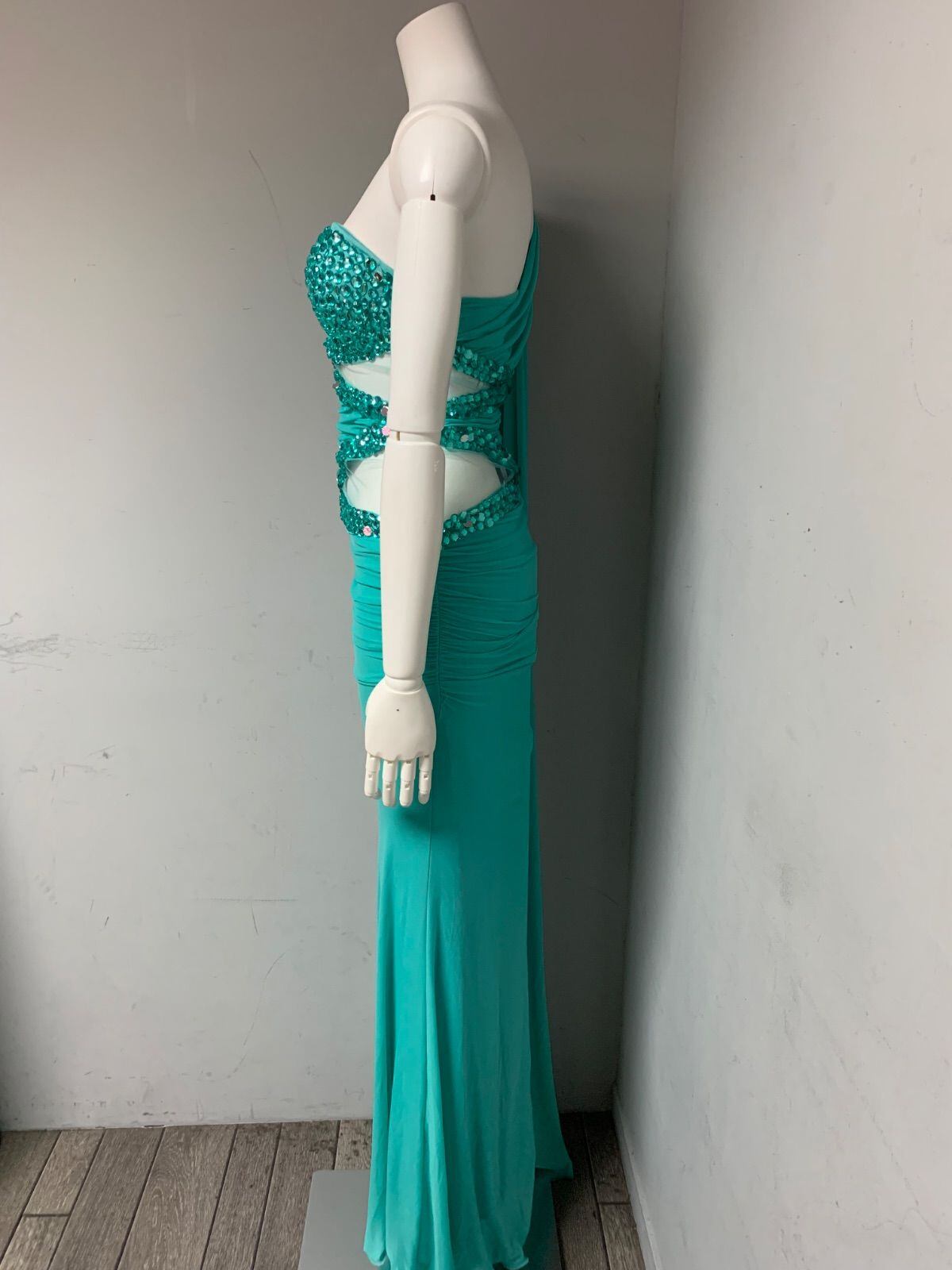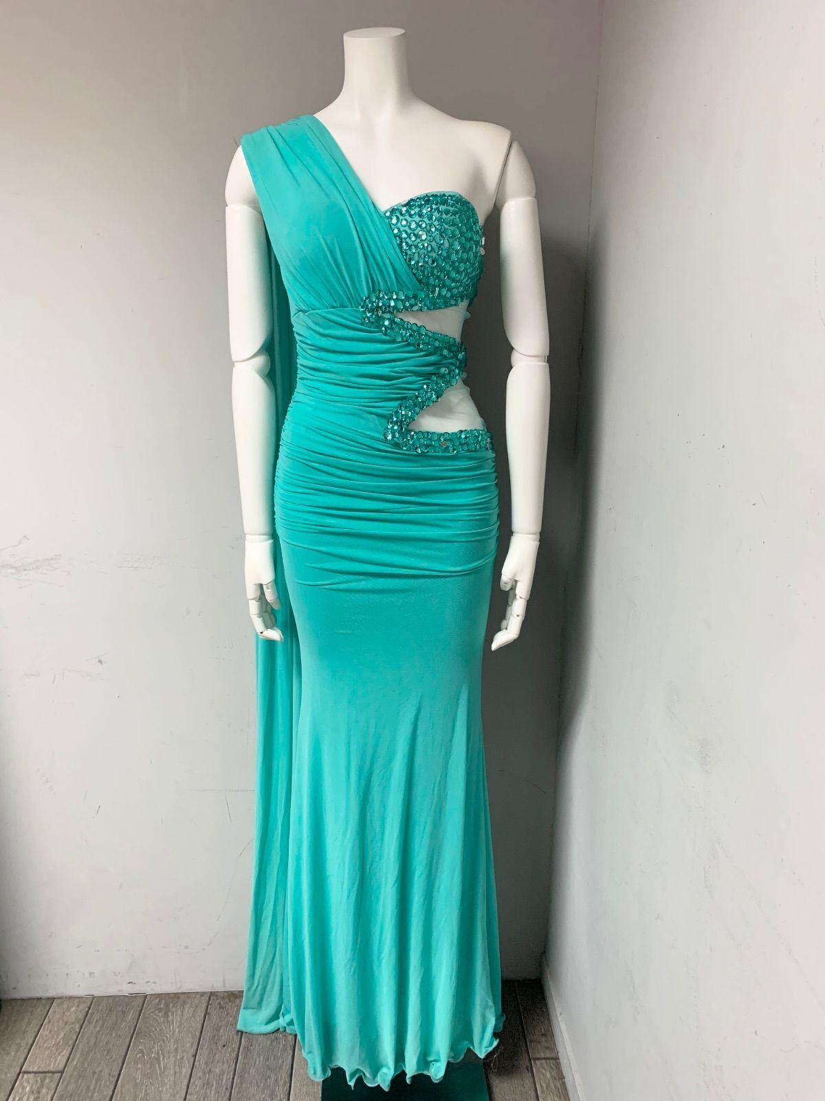 1486 キャバクラ ドレス ワンショルダー ロングドレス リゾート ストーン シースルー 伸縮性 イベント パーティー キャバドレス
