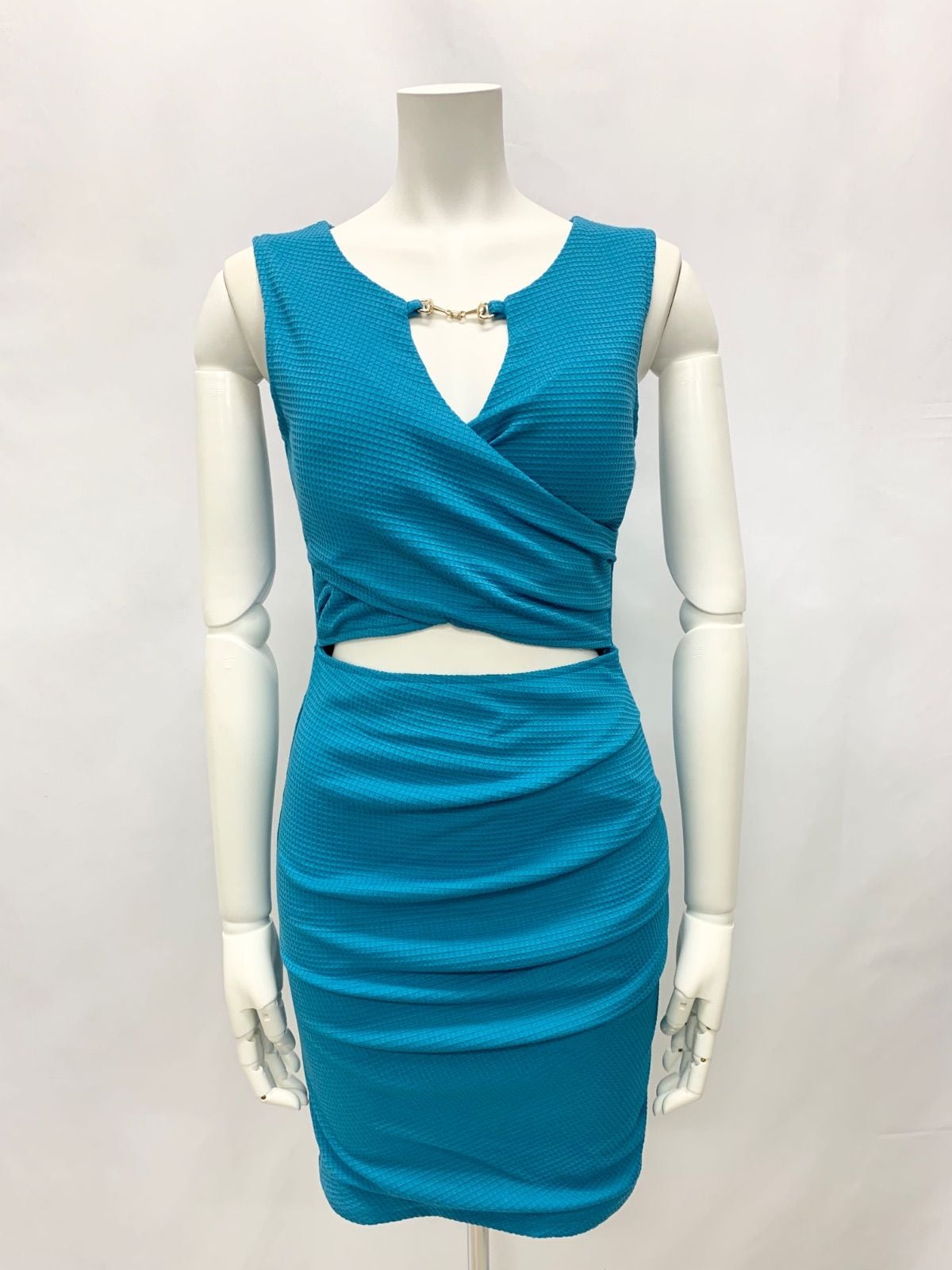 1493 BayBClub ベイビークラブ キャバクラ ドレス ワッフル生地 ゴールド タイト ウエストオープン フロントオープン クロスデザイン キャバドレス