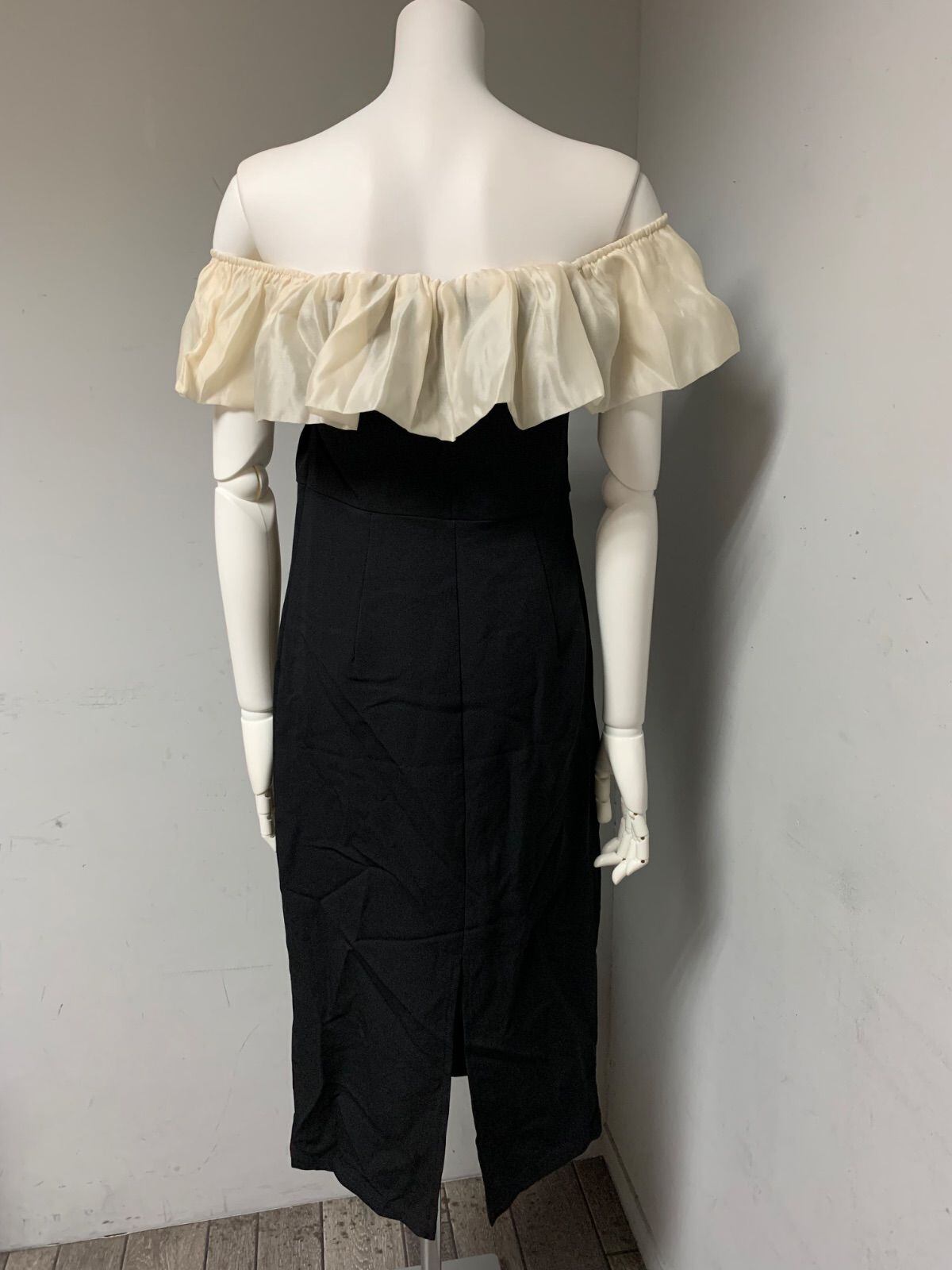 1516 キャバクラ ドレス オフショル スリット ロング フリル シンプル キャバドレス M
