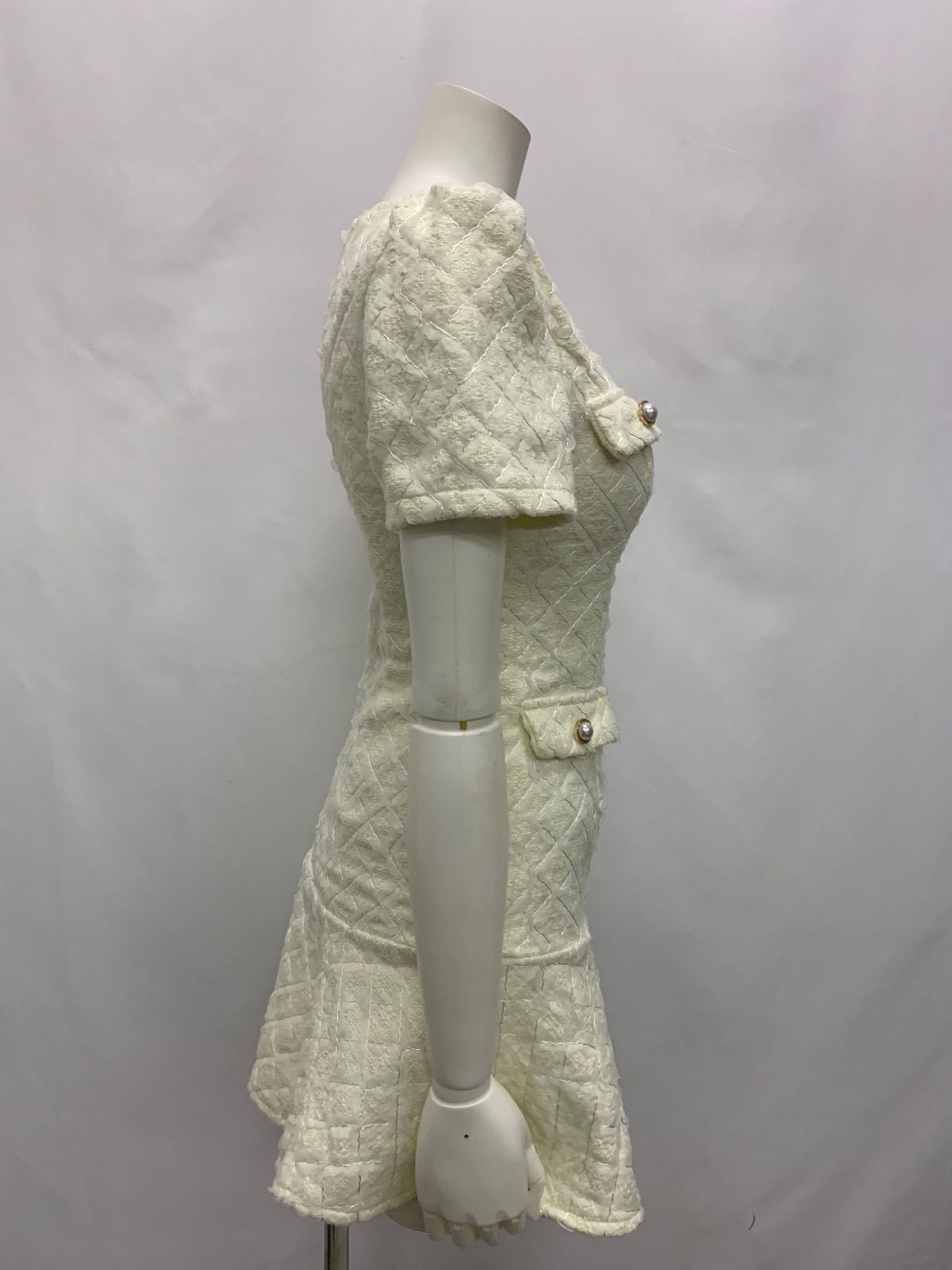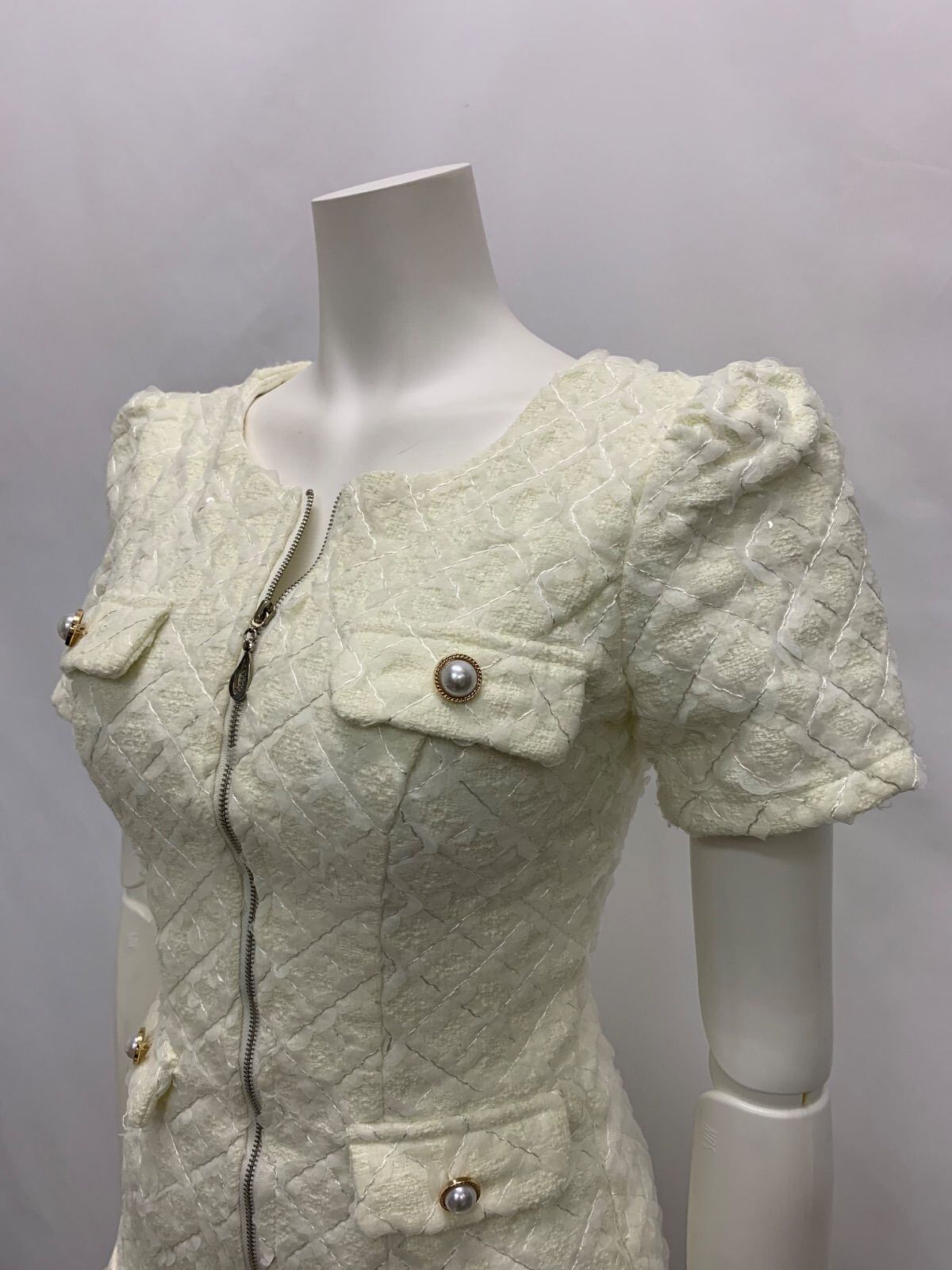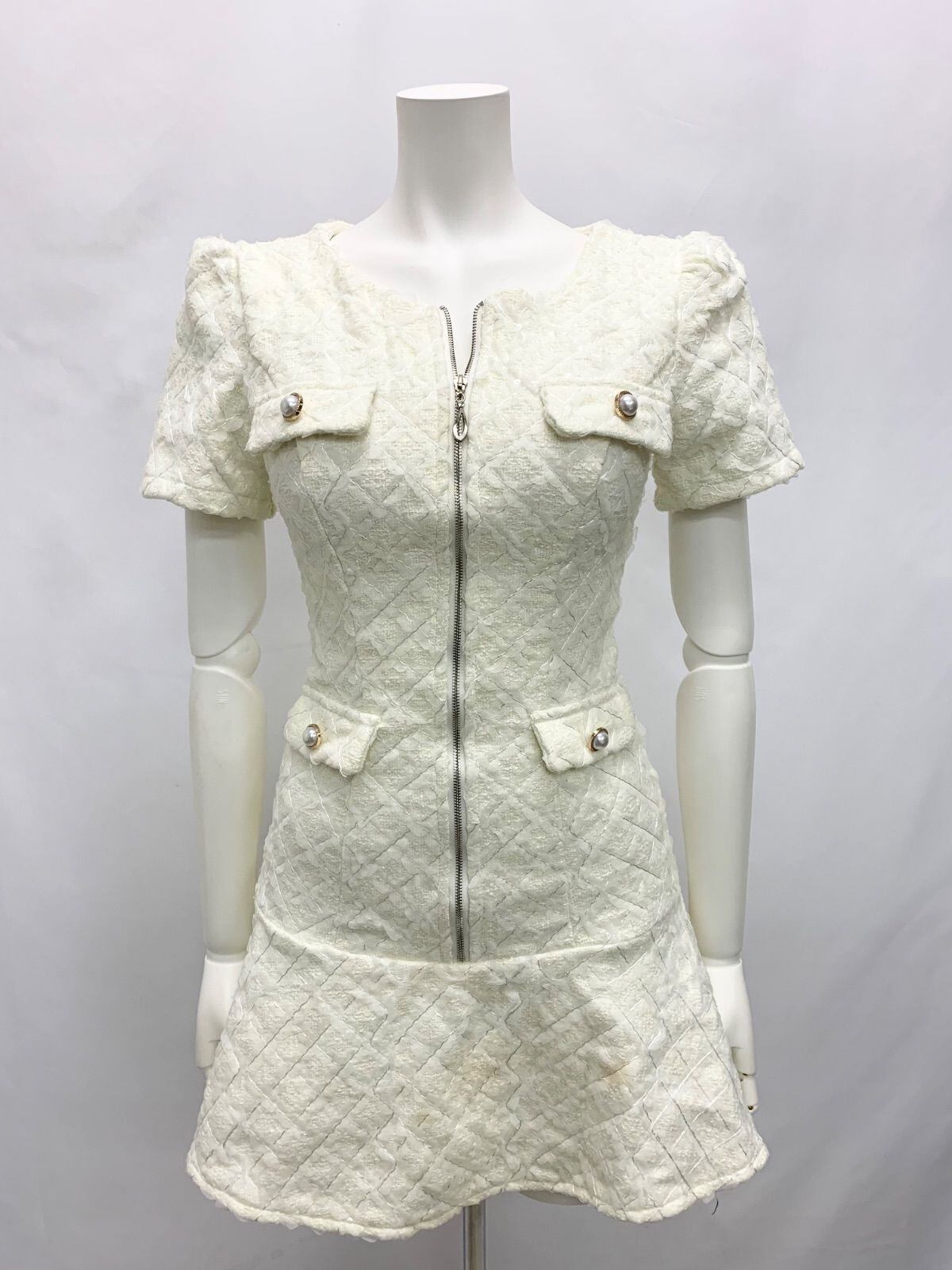 1523 JEWELS ジュエルズ キャバクラ ドレス スパンコール チュール 刺繍 フロントジップ パールボタン ミニ キャバドレス S