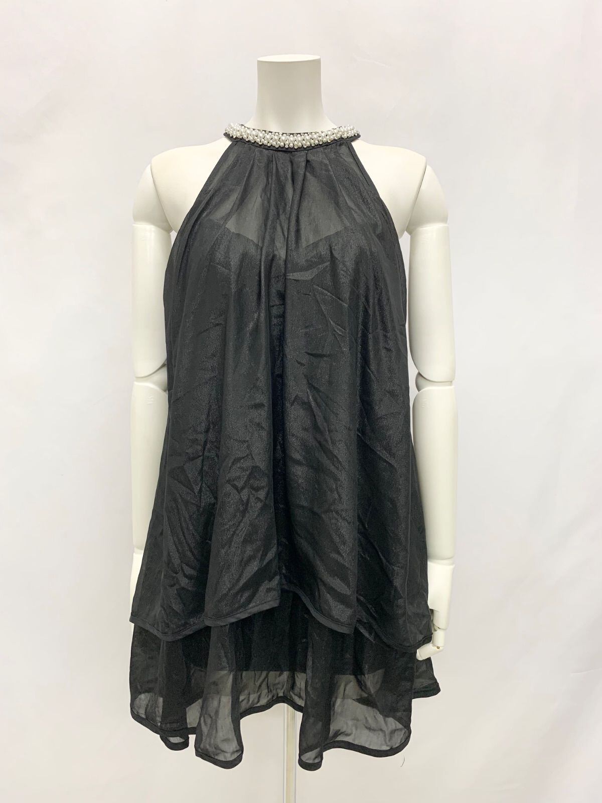1526 AR Angel R エンジェルアール キャバクラ ドレス オーガンジー ラメ ホルターネック パール ストーン ミニ シースルー キャバドレス S