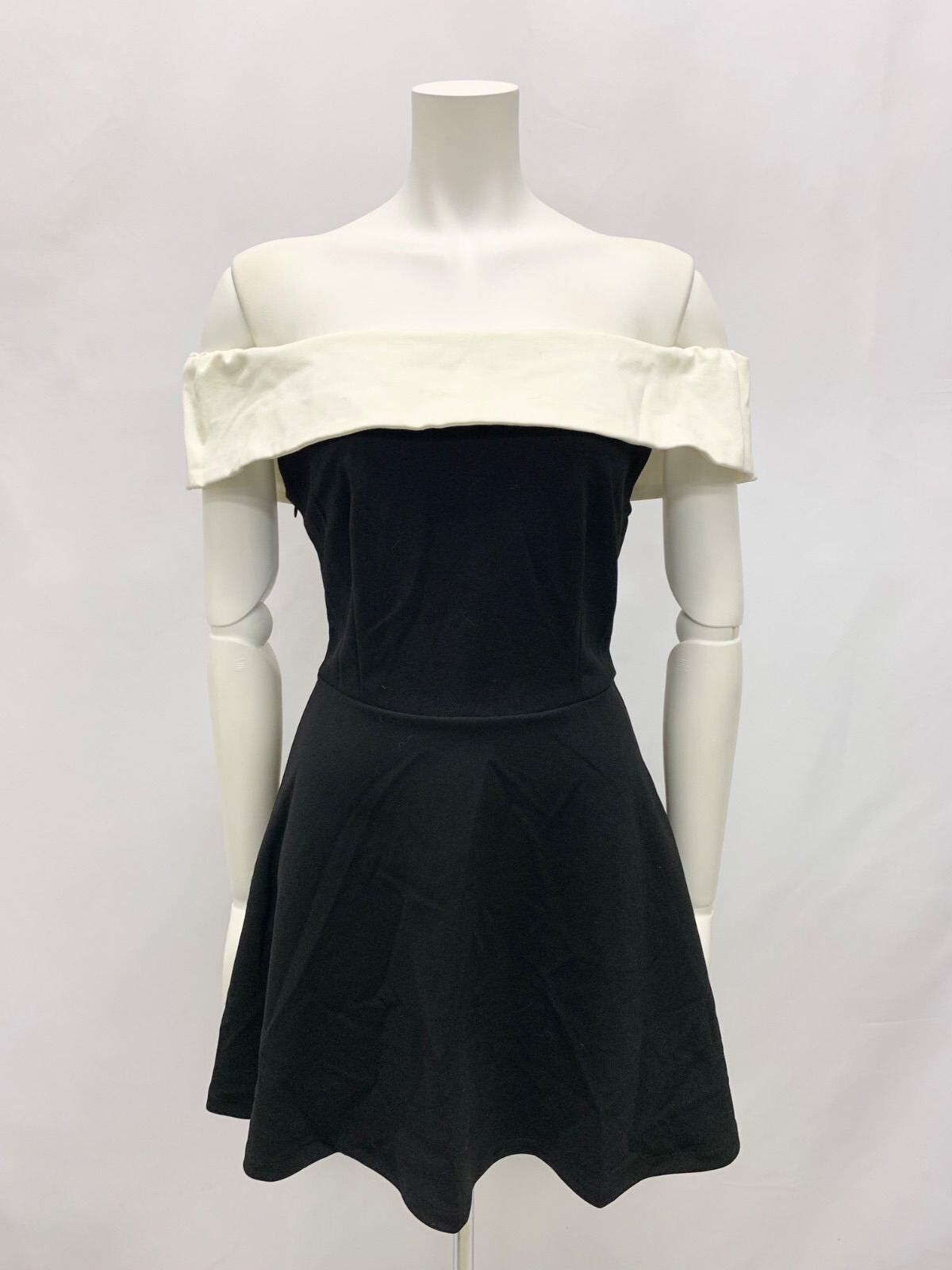 1555 キャバクラ ドレス フレア オフショル バイカラー タイト ミニ キャバドレス S
