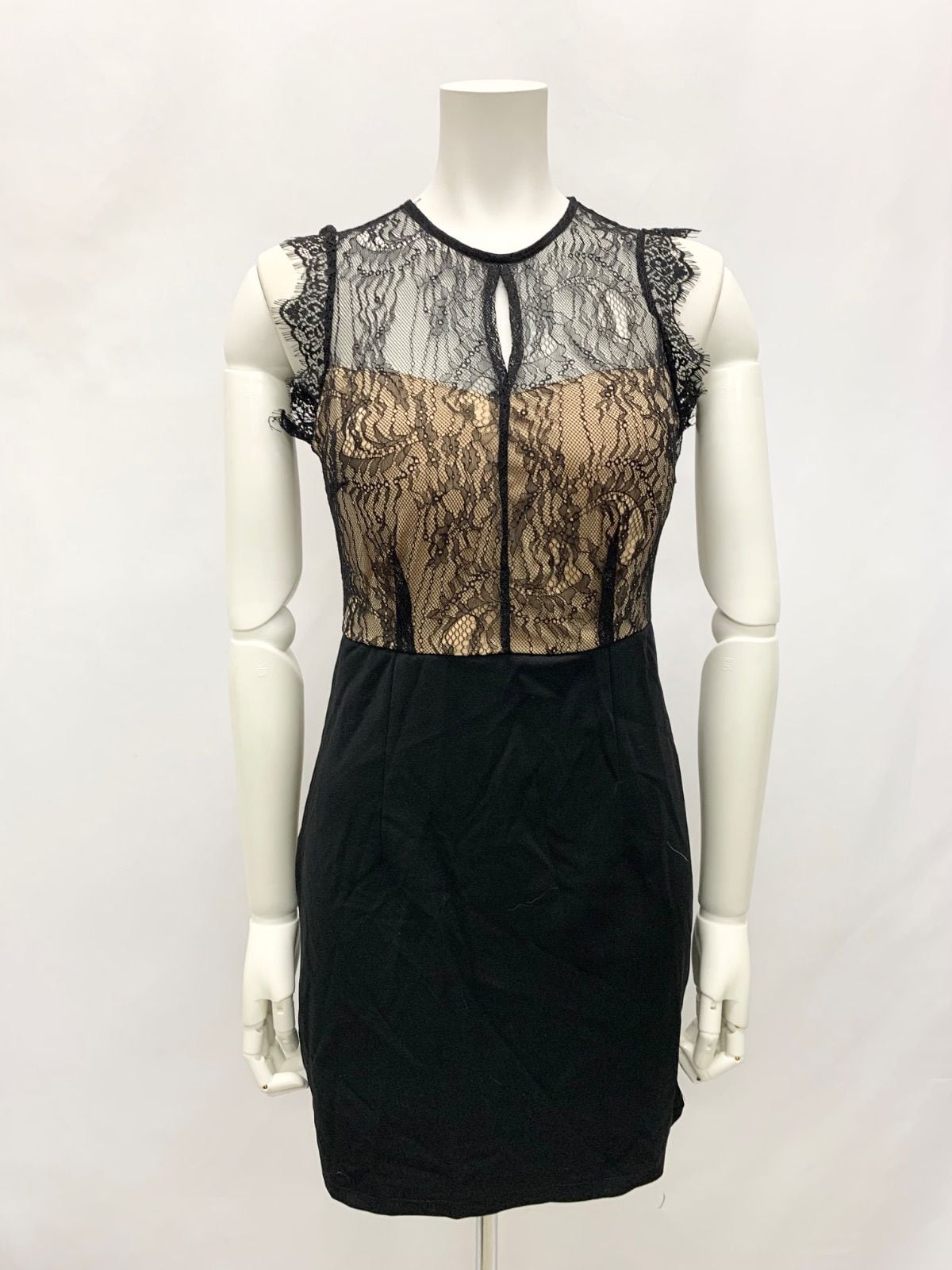 1556 キャバクラ ドレス レース タイト ミニ ノースリーブ シンプル キャバドレス M