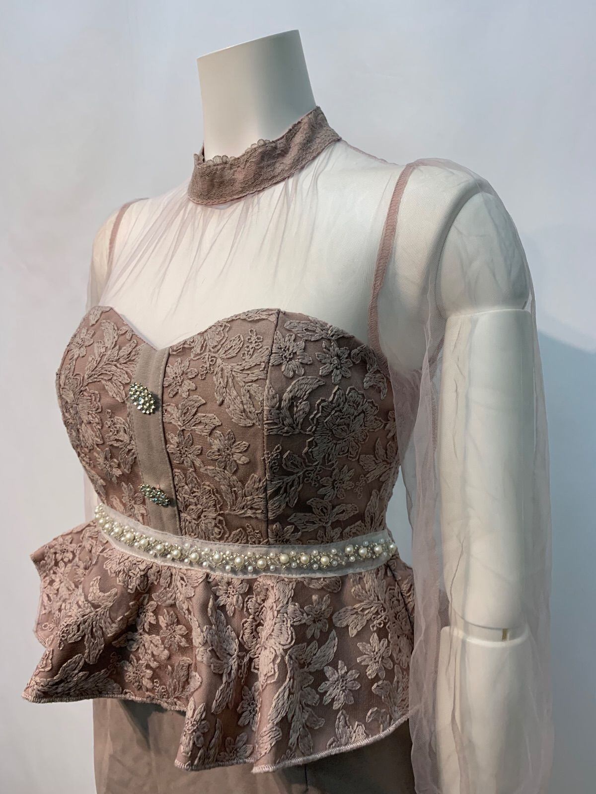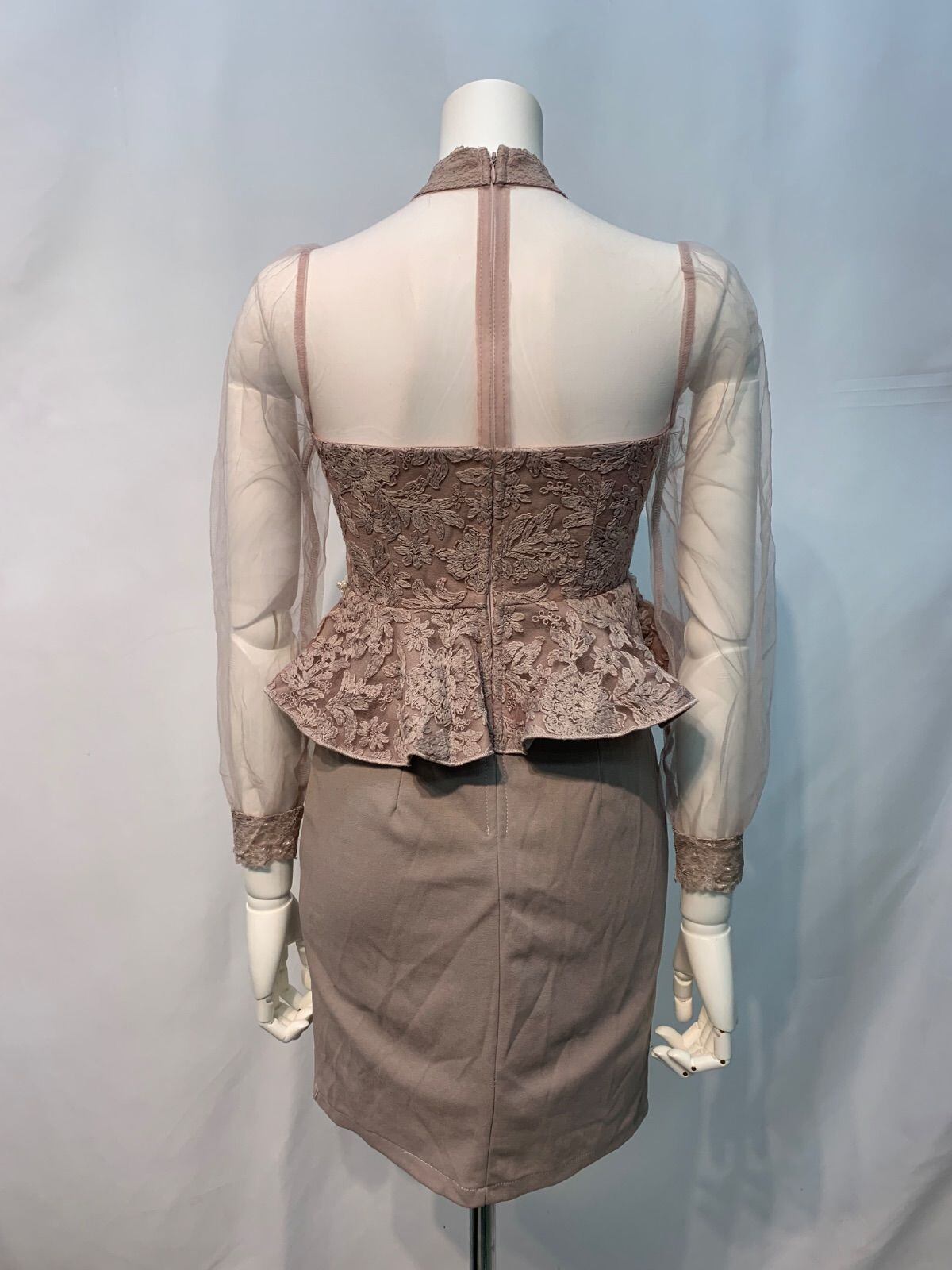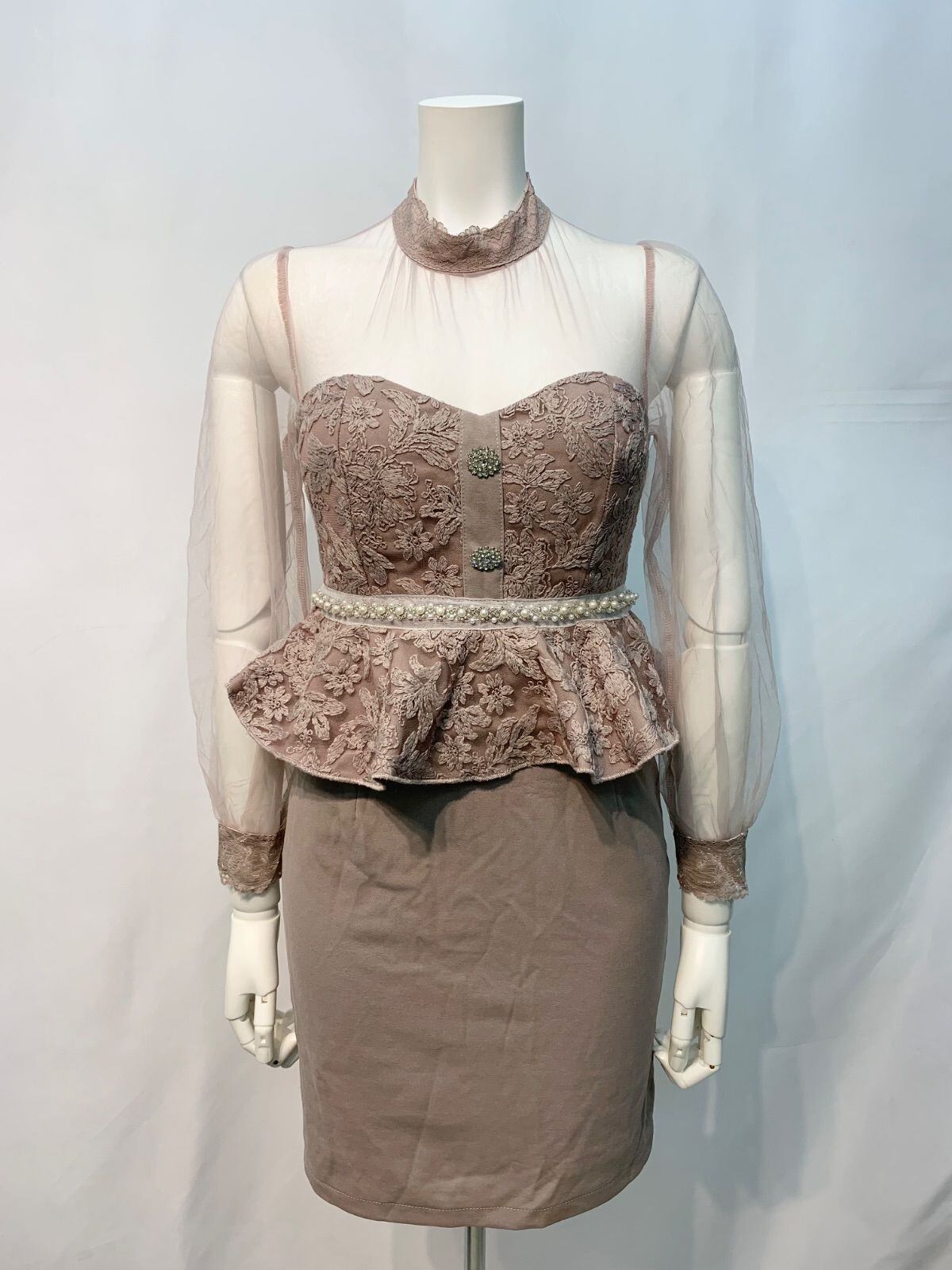 1562 DAZZY デイジー キャバクラ ドレス フラワー刺繍 パール ビーズ レース シースルー ペプラム タイト ミニ キャバドレス M