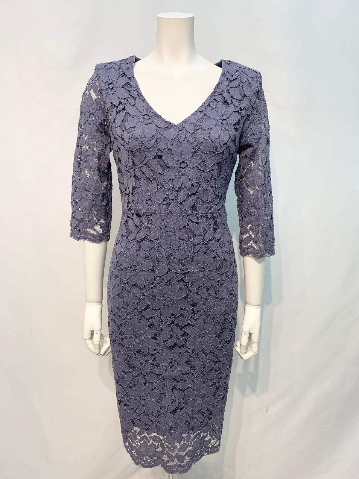 1569 キャバクラ ドレス 総レース ミディ タイト 肩パッド 二次会 キャバドレス M