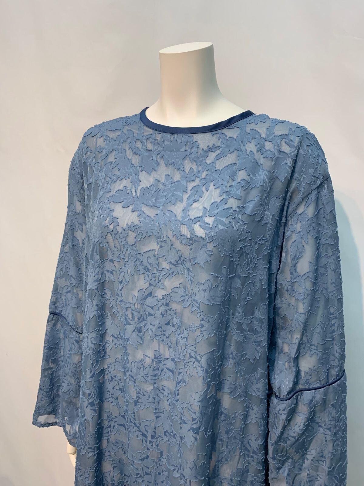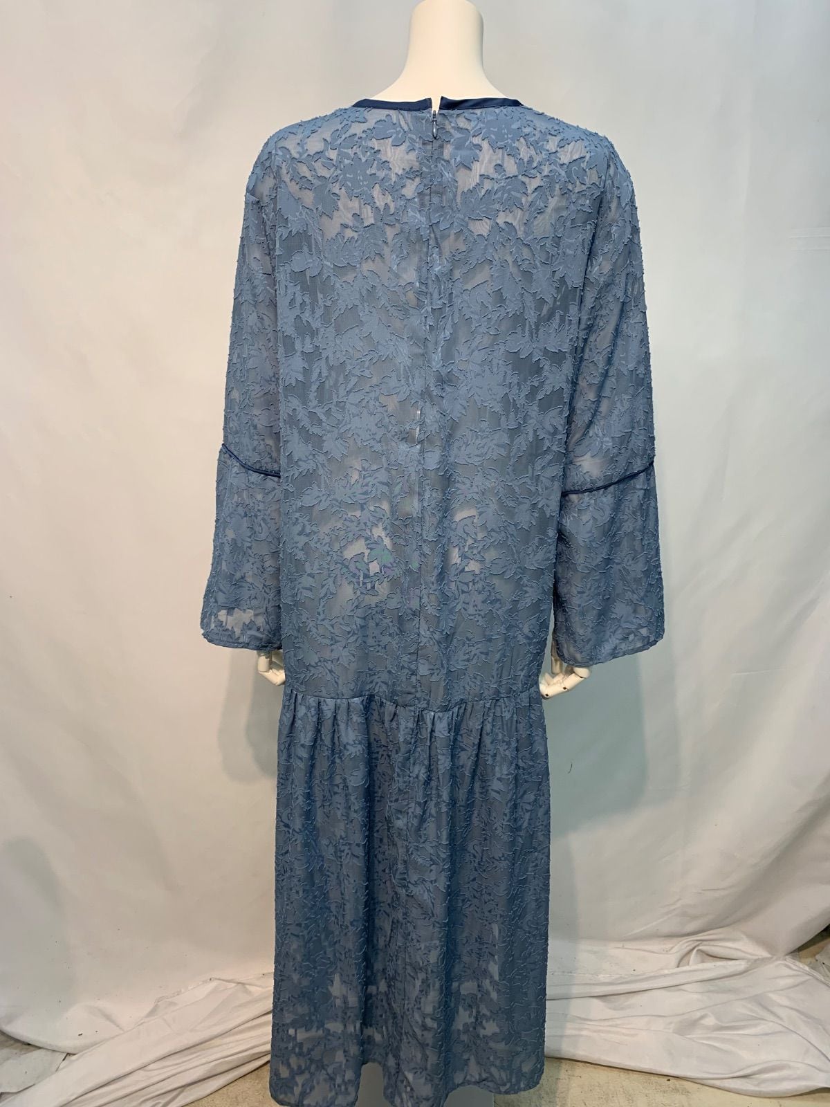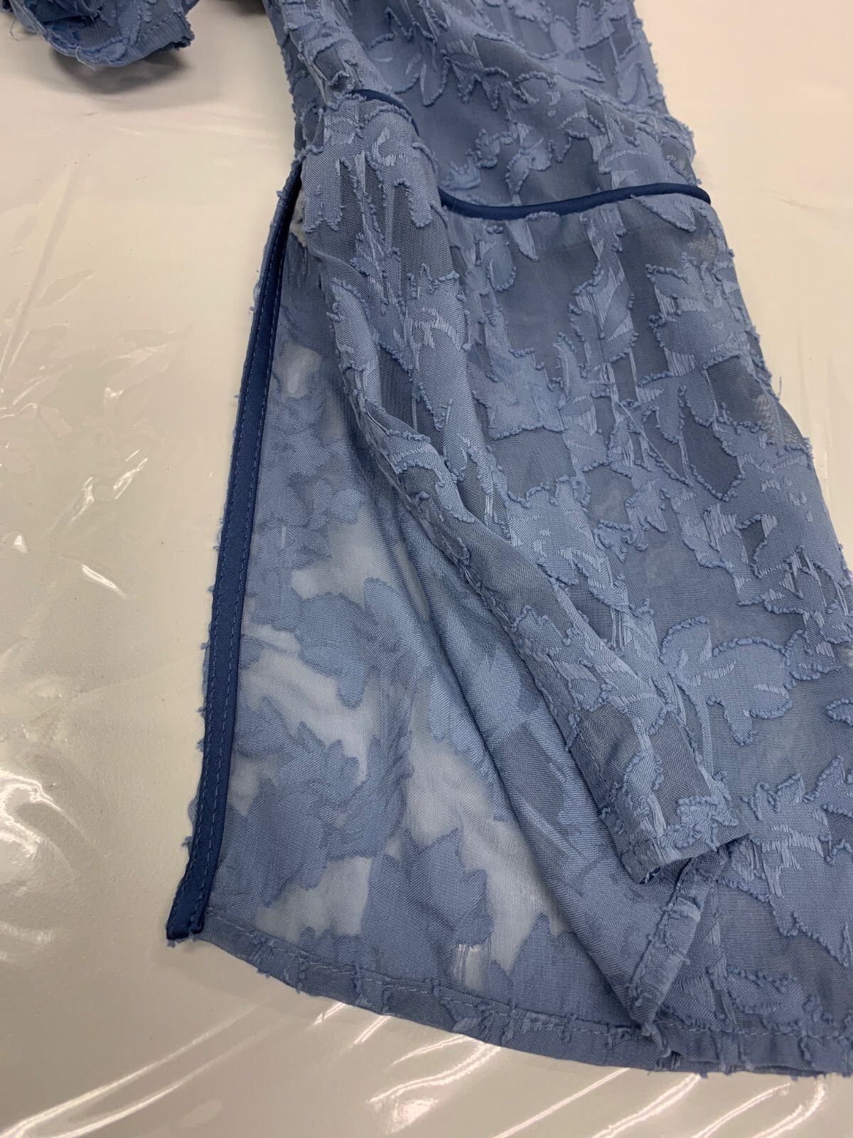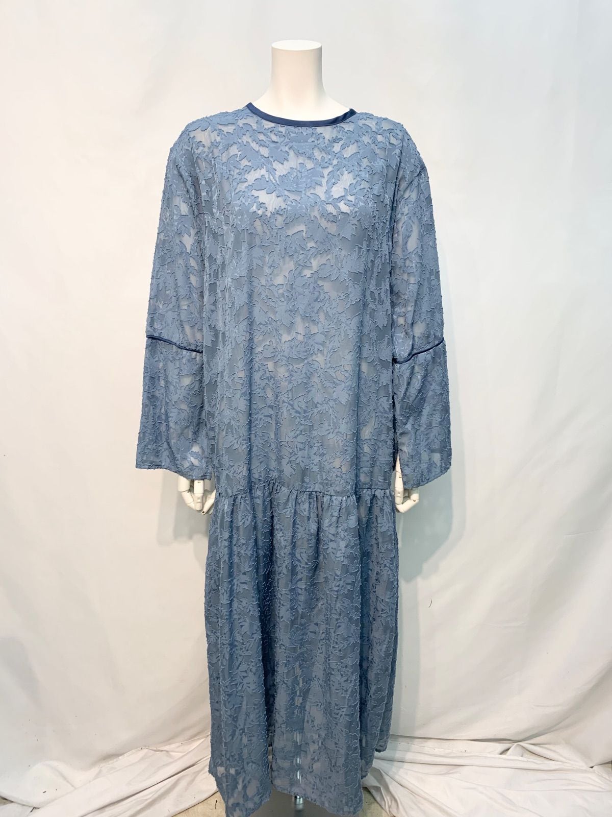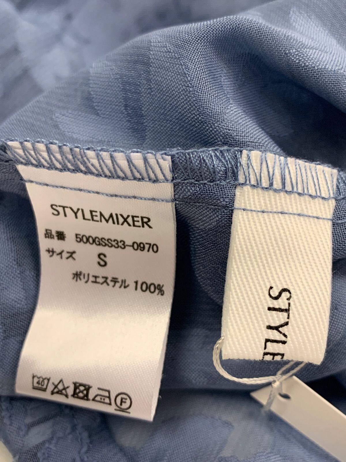 1570 STYLEMIXER スタイルミキサー ジャガード パイピング ワンピース ブルー S シースルー ロング丈 結婚式 二次会 華やか パーティー