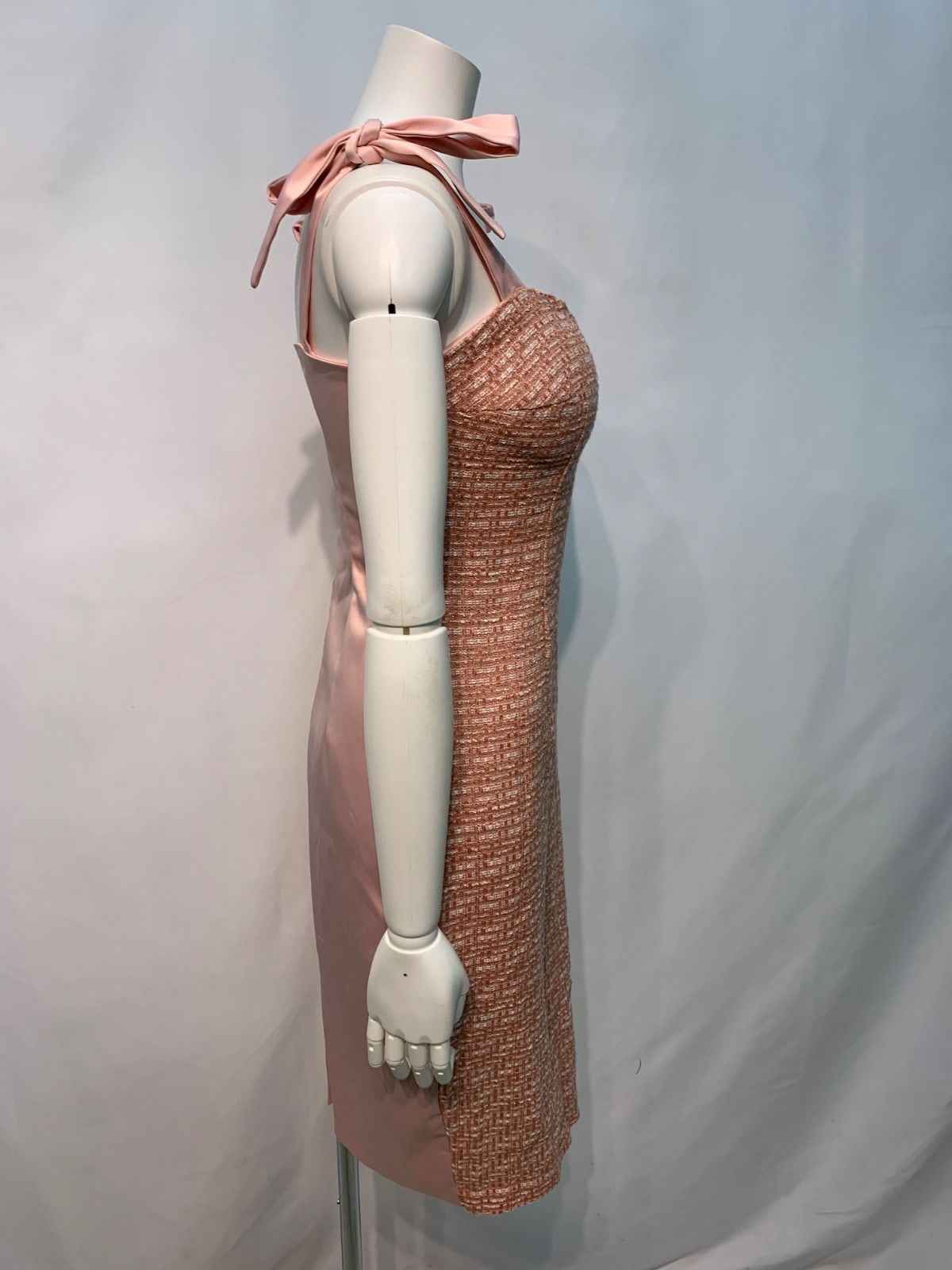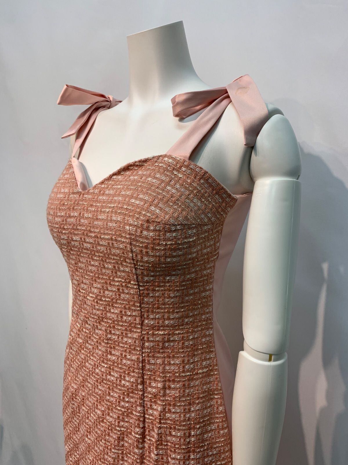 1589 Red blue レッドブルー キャバクラ ドレス ツイード キラキラ ストラップリボン ミディ タイト サテン キャバドレス M