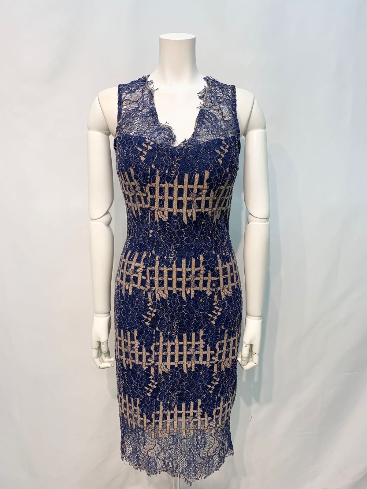 1594 GRACE グレイス キャバクラ ドレス 総レース ミディ タイト ノースリーブ フラワー刺繍 キャバドレス M