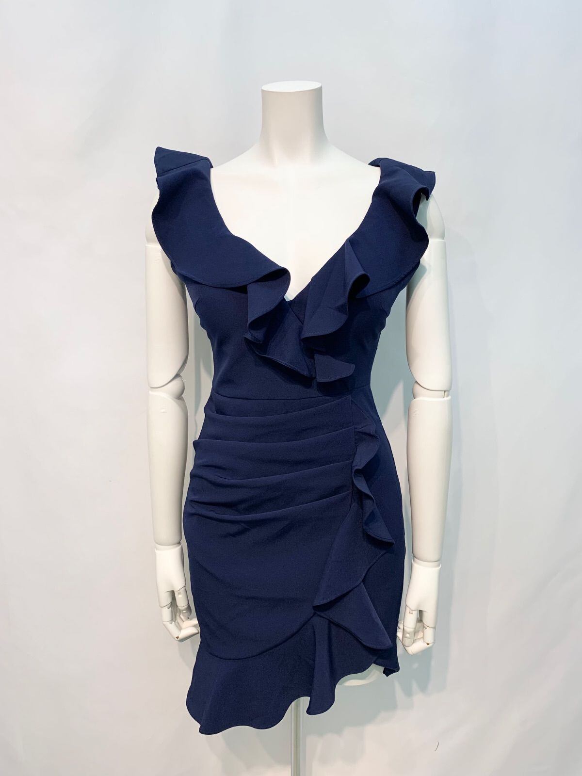 1595 GLAMOROUS by Andy グラマラスバイアンディ キャバクラ ドレス フリル タイト ミニ 無地 シンプル ネイビー キャバドレス M