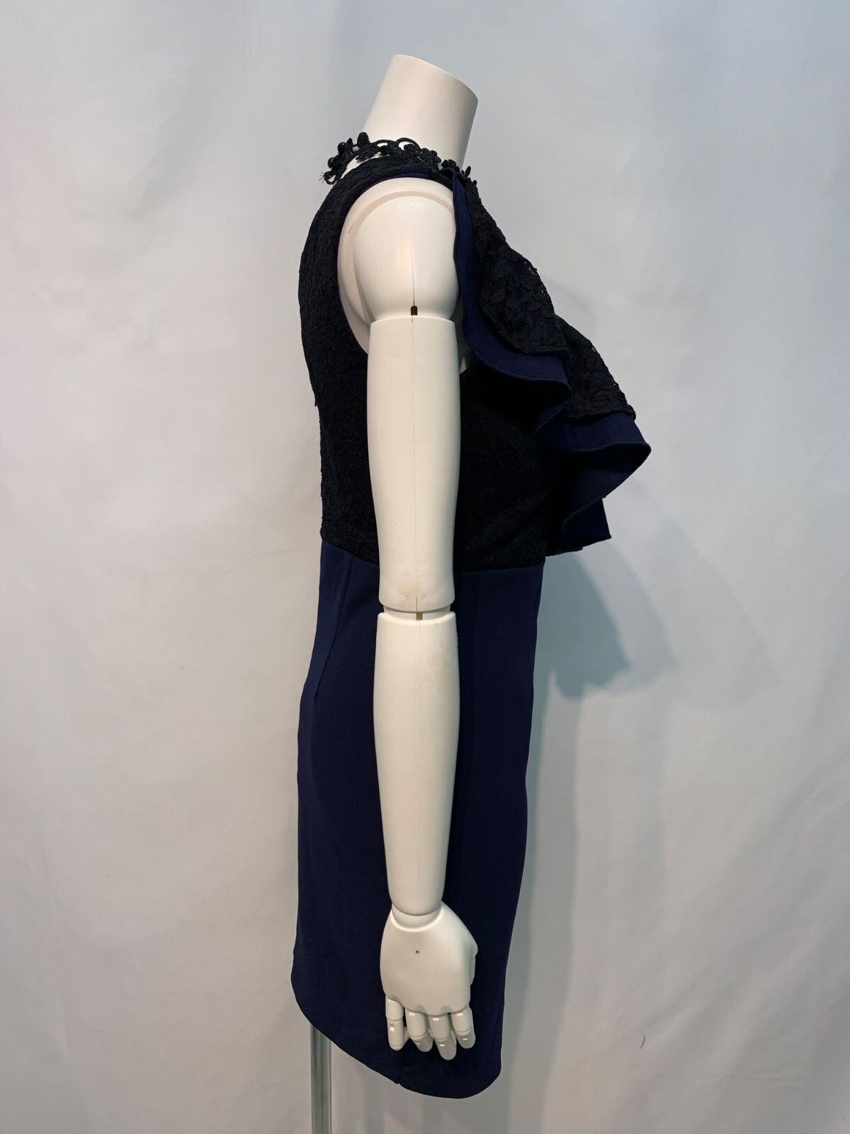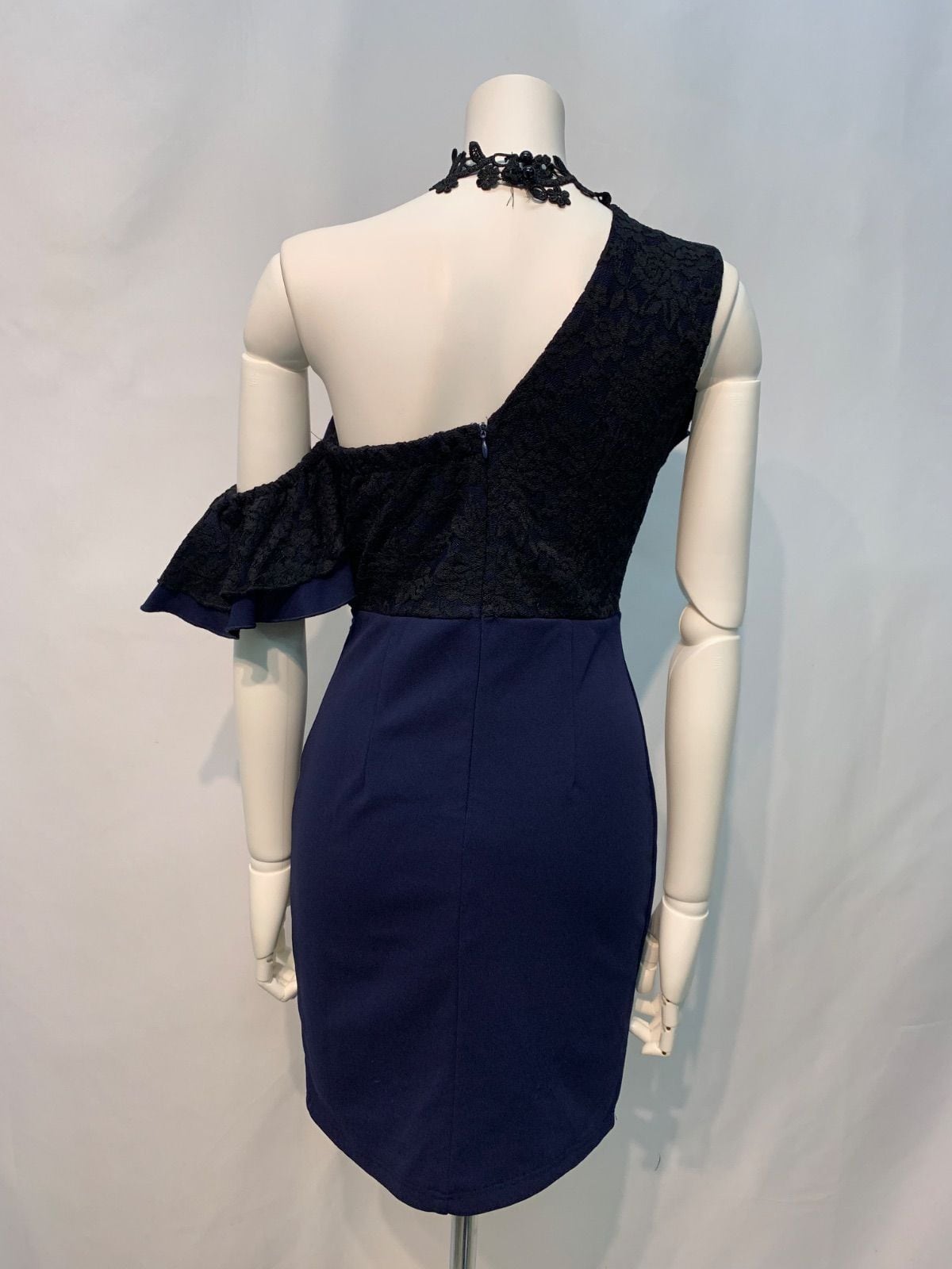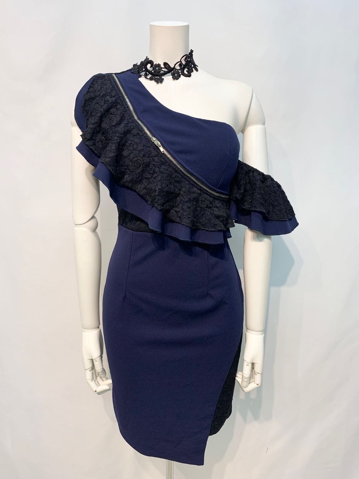 1598 Tika ティカ キャバクラ ドレス ワンショルダー フリル フロントジップ タイト ミニ 伸縮性 レース キャバドレス M
