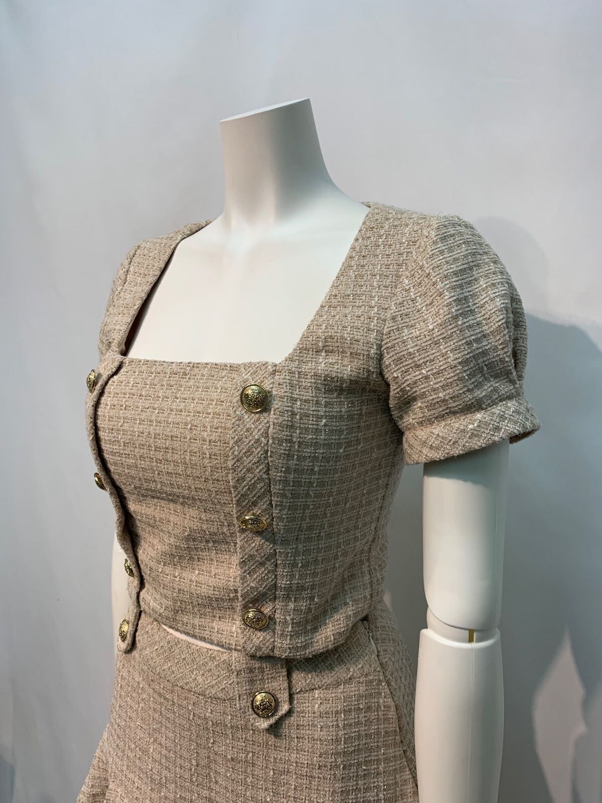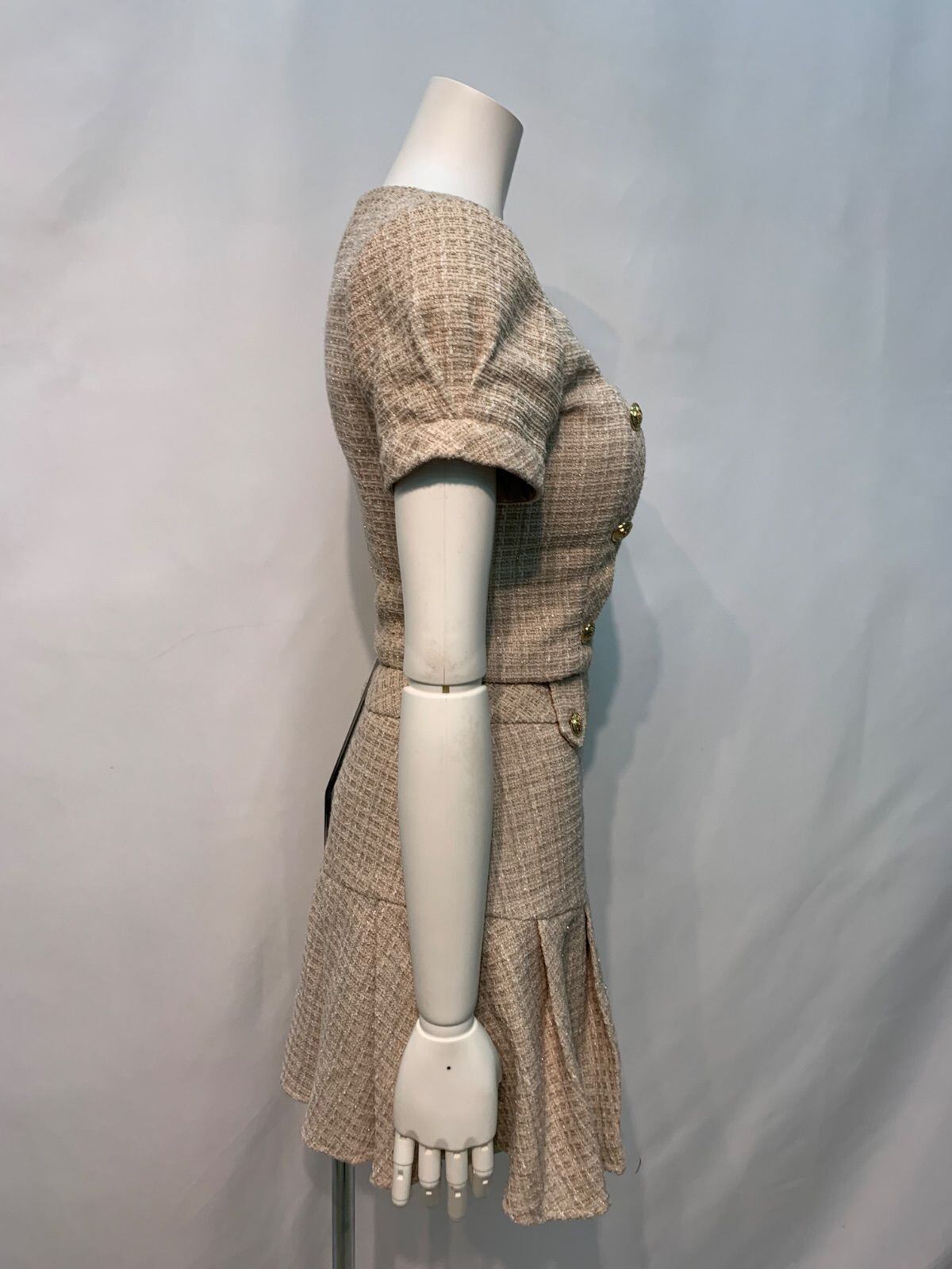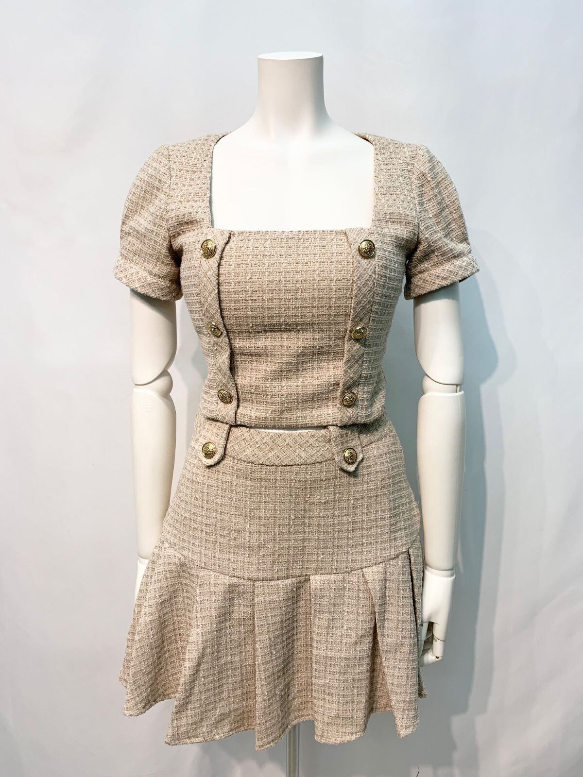1609 an アン Andy アンディ キャバクラ ドレス ツイード セットアップ プリーツ ラメ ゴールドボタン ミニ タイト キャバドレス S