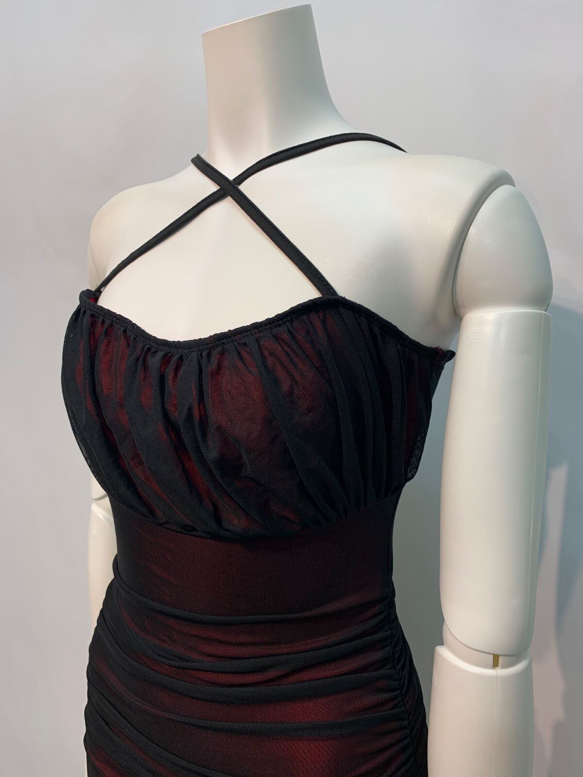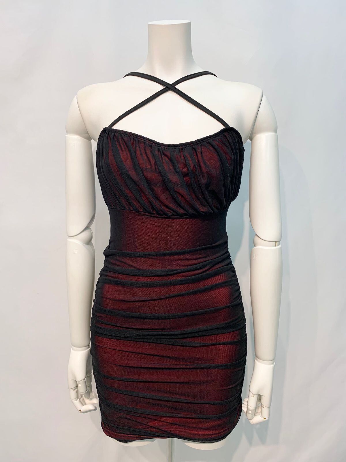 1618 キャバクラ ドレス 2wayストラップ 伸縮性 シアードレス タイト ギャザー キャバドレス M