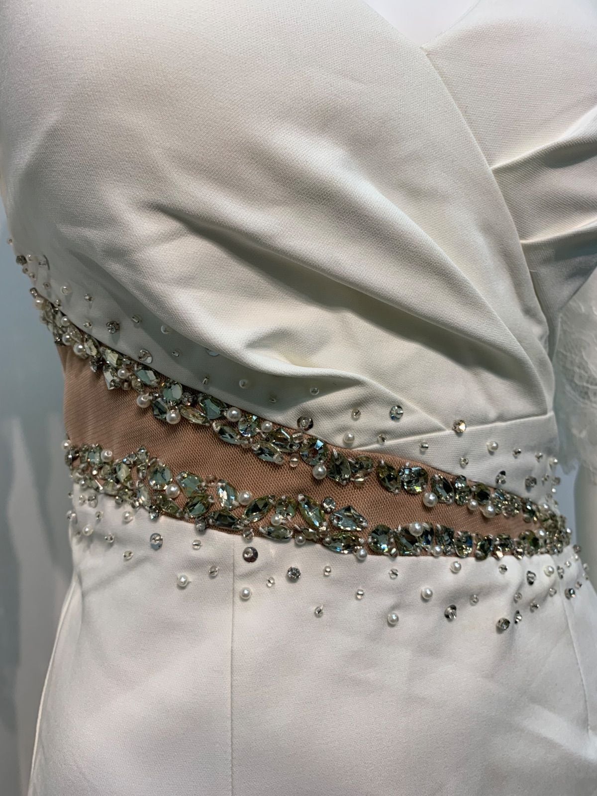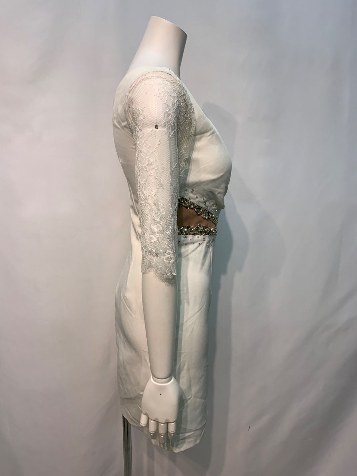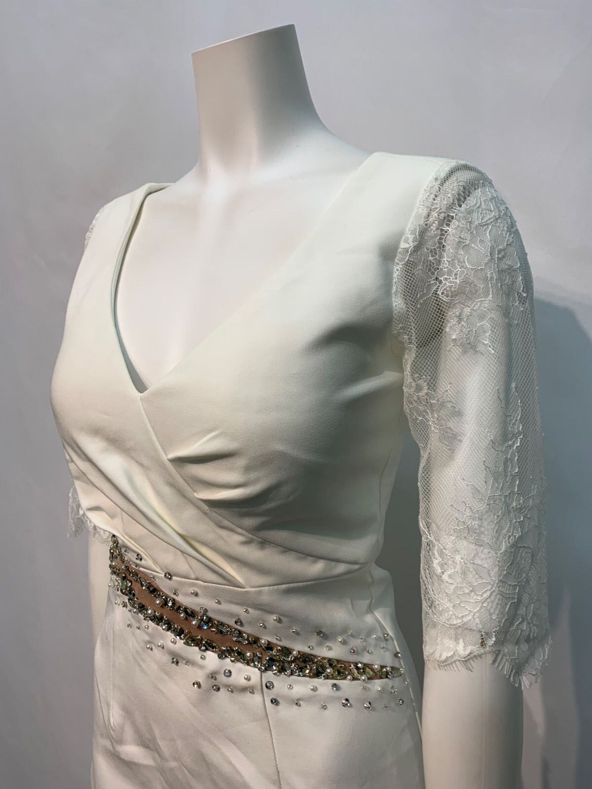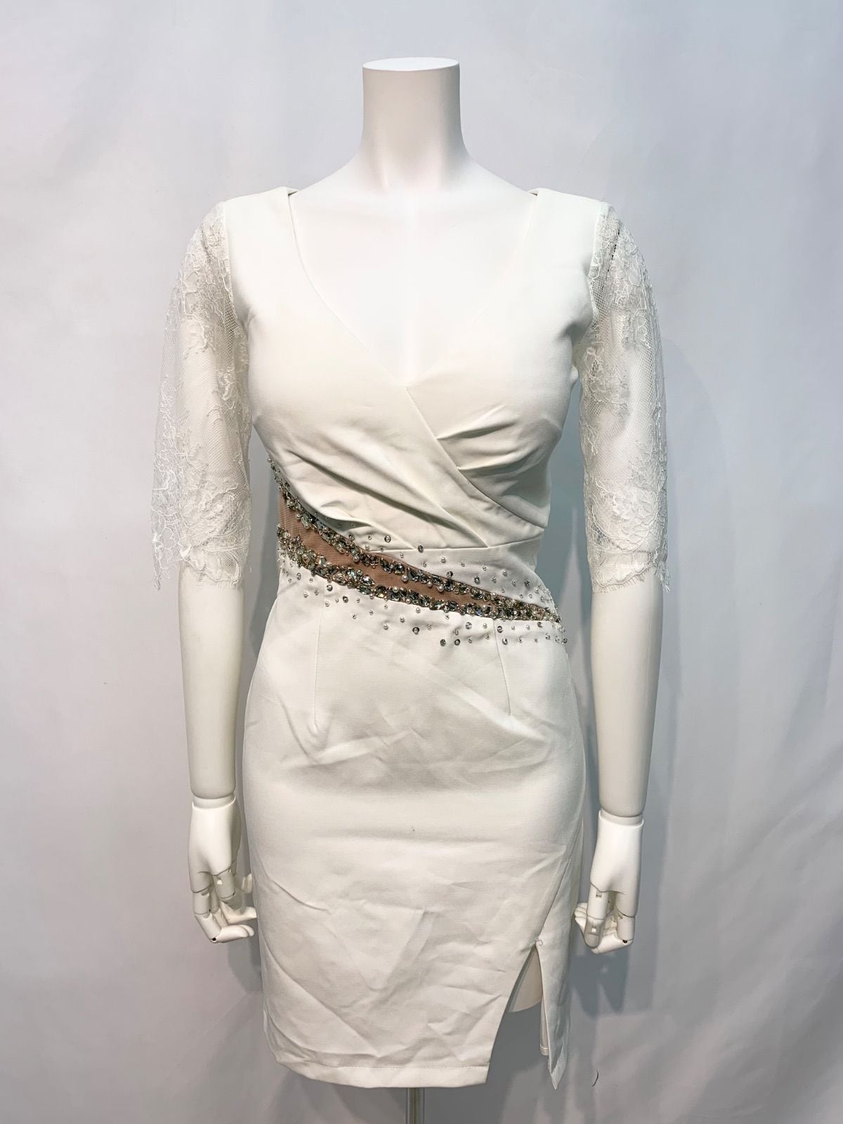 1627 JEWELS ジュエルズ キャバクラ ドレス レース 伸縮性 ストーン パール スリット キャバドレス S