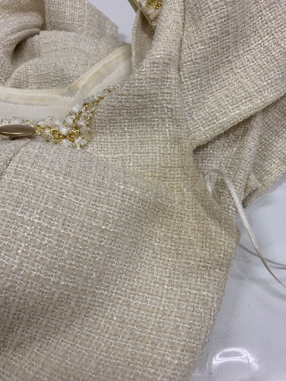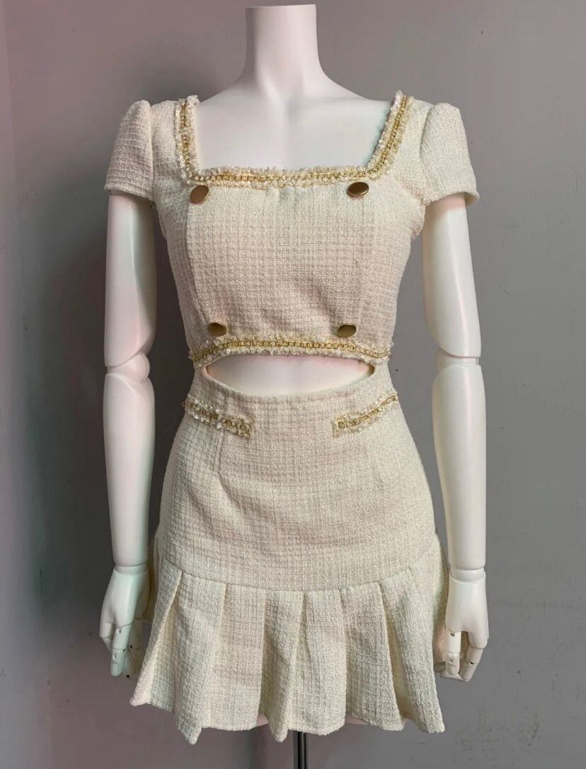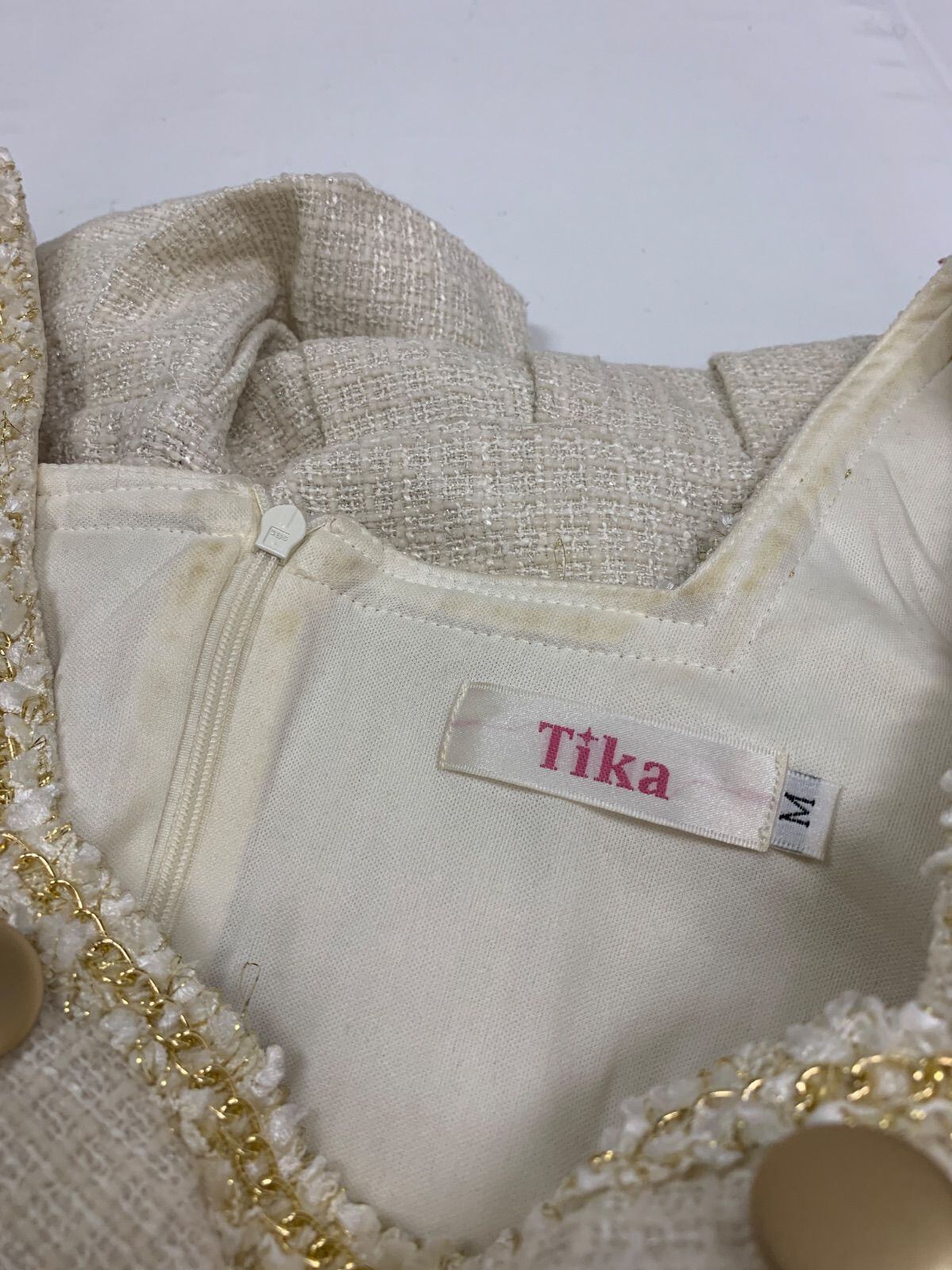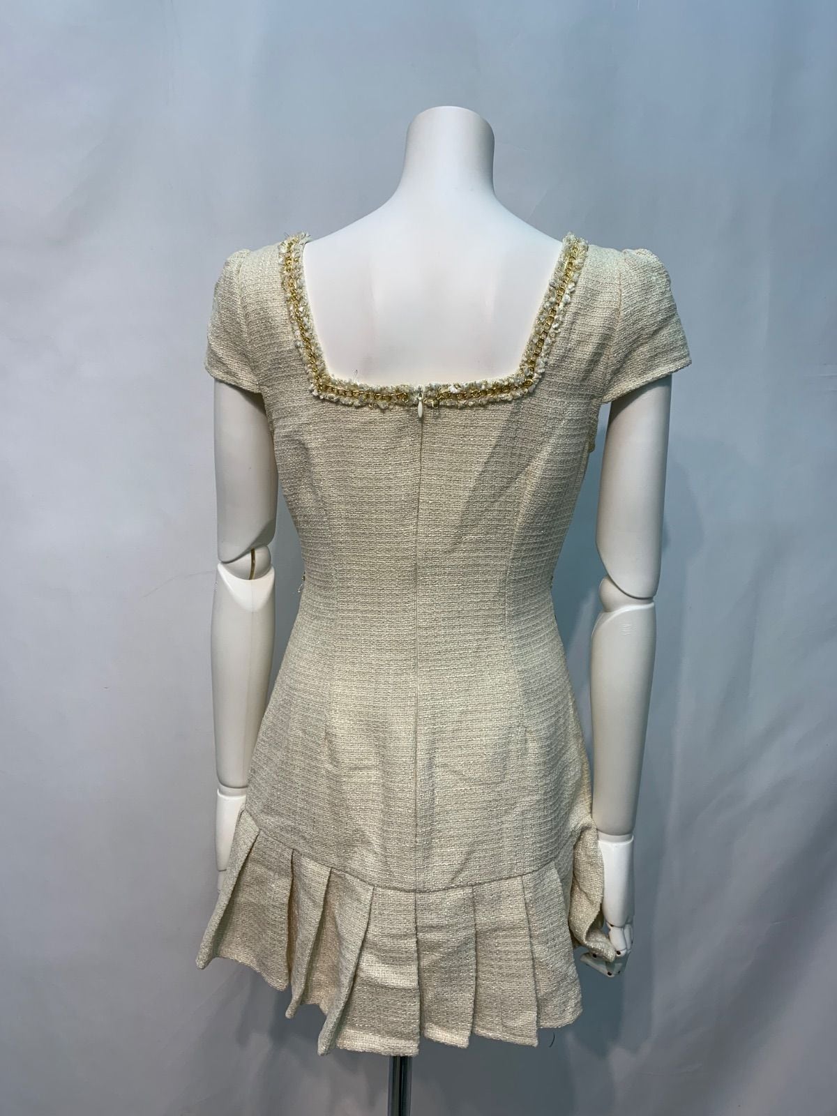 1629 Tika ティカ キャバクラ ドレス ツイード ラメ ウエストカット スクエアネック プリーツ タイト ミニ キャバドレス M
