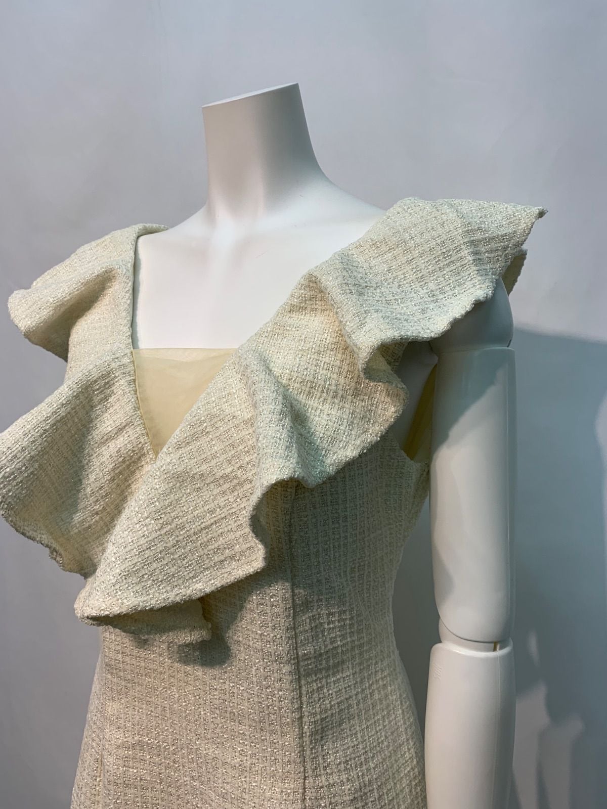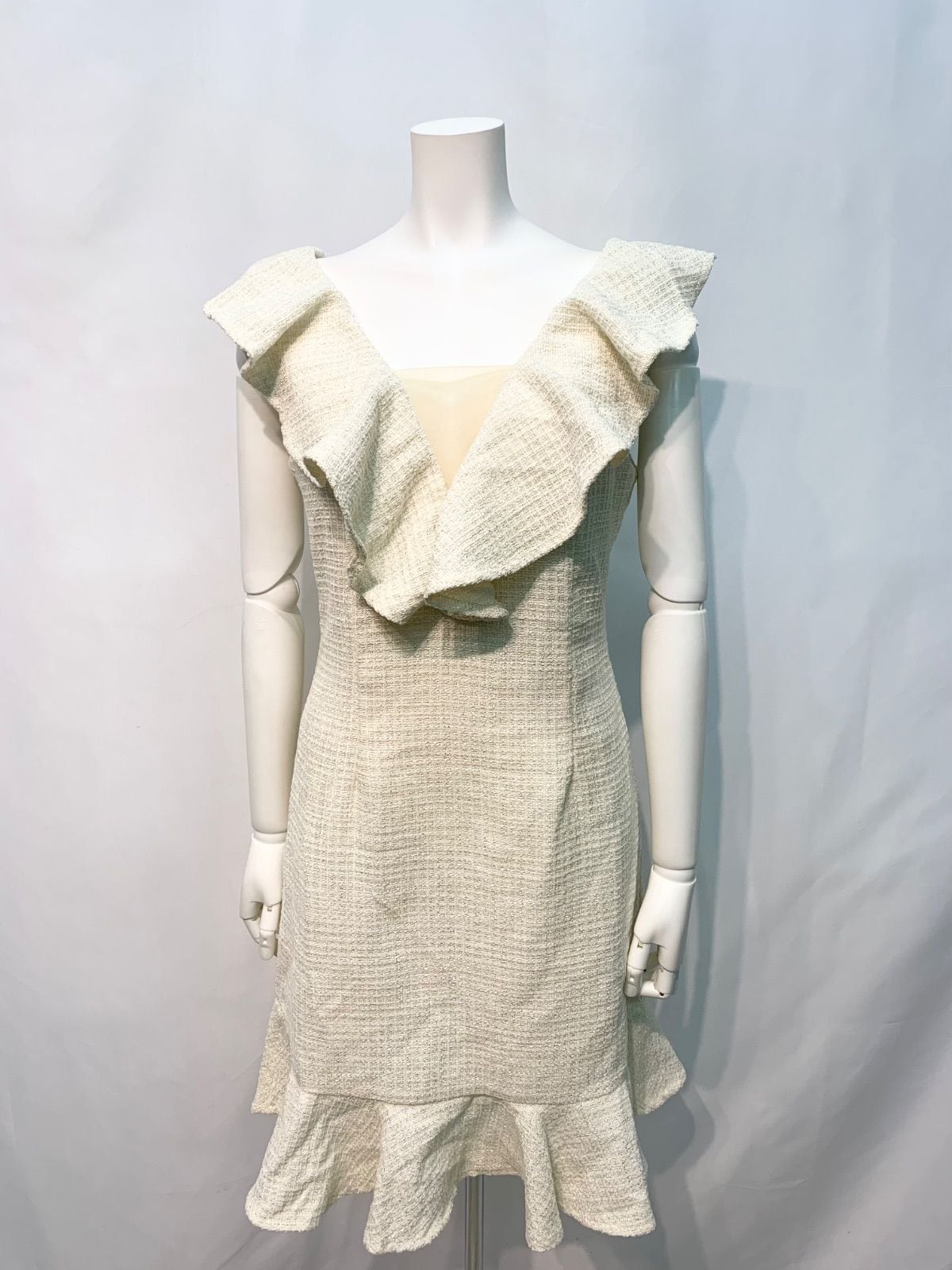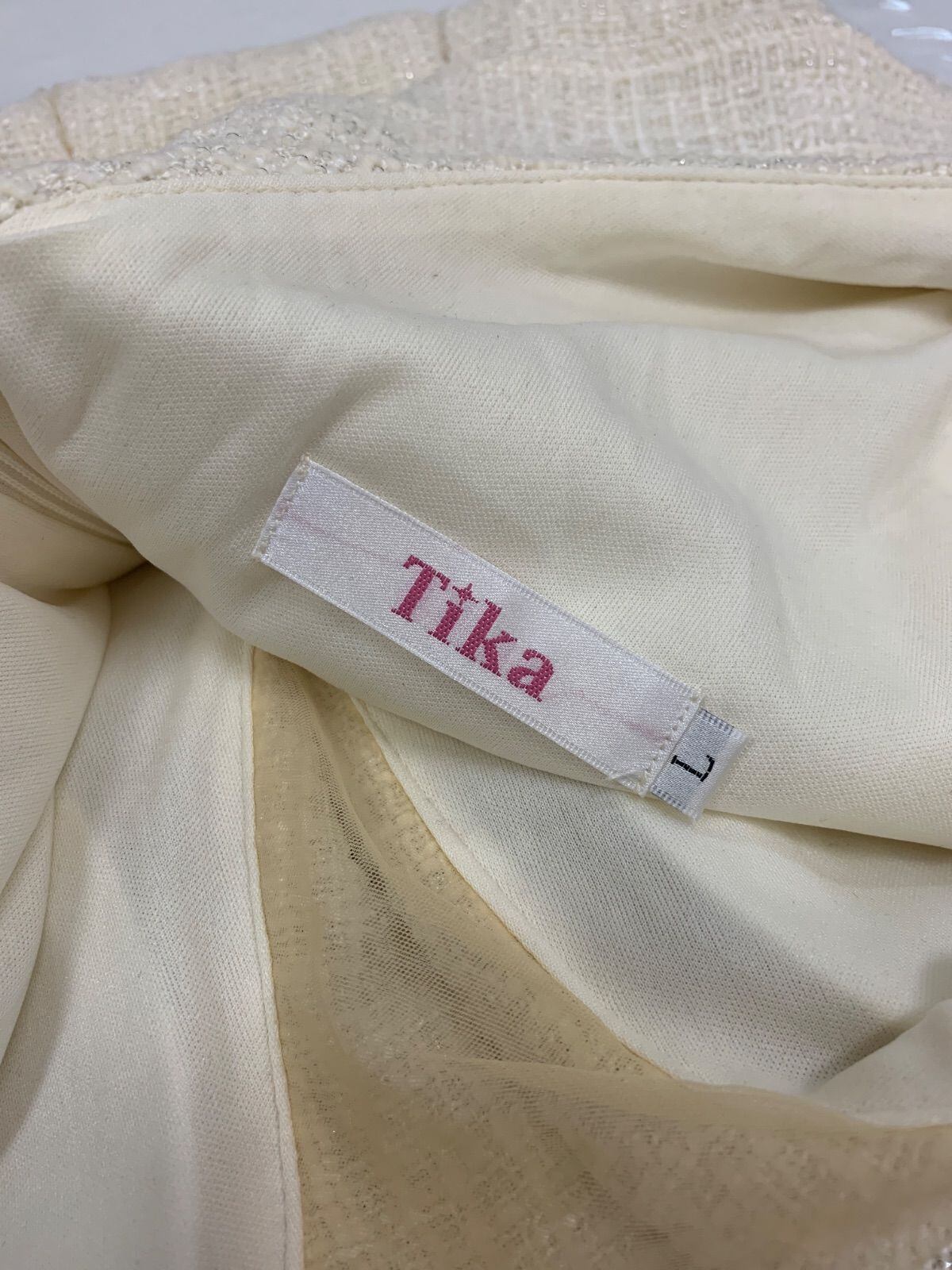 1639 Tika ティカ キャバクラ ドレス ツイード ラメ キラキラ フリル ミディ キャバドレス L