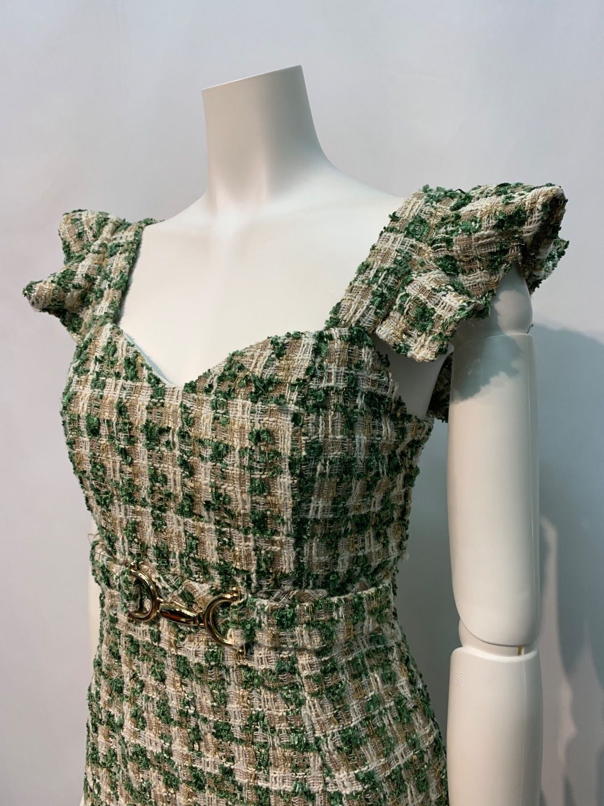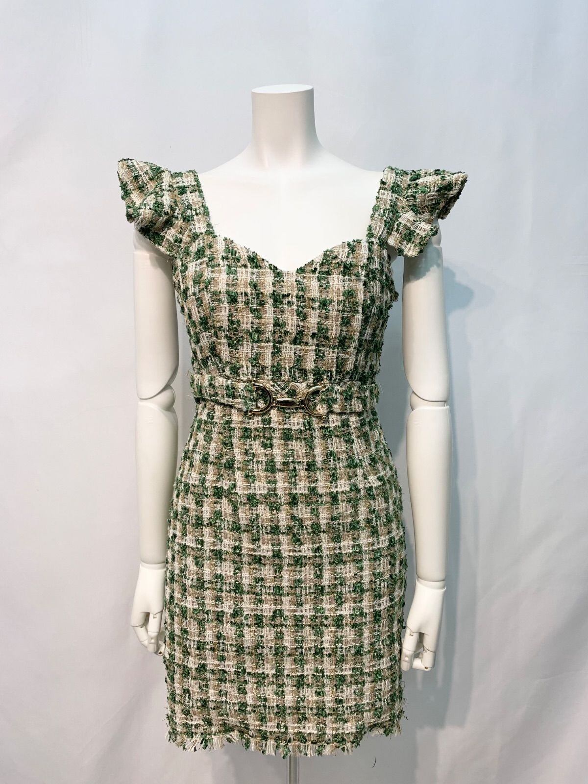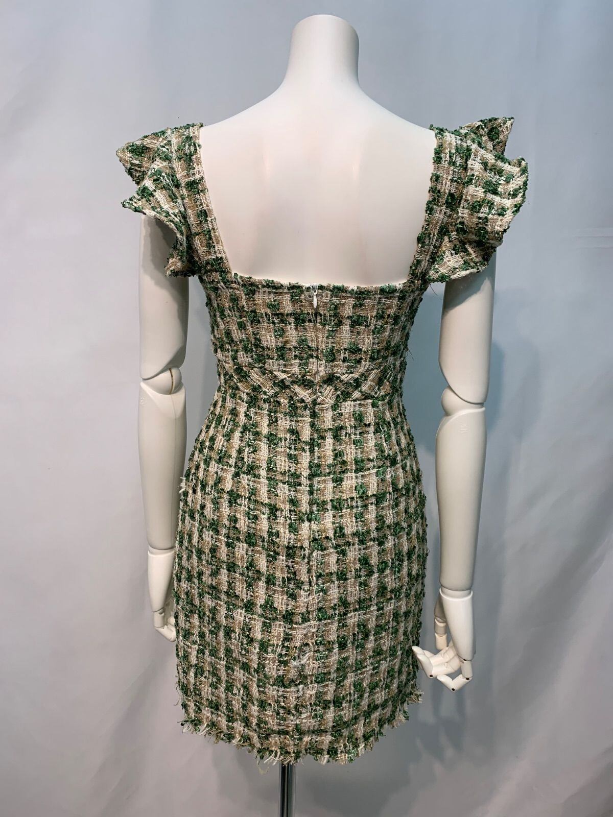 1642 DAZZY デイジー キャバクラ ドレス ツイード ラメ フリル タイト ゴールド金具 タイト ミニ キャバドレス S