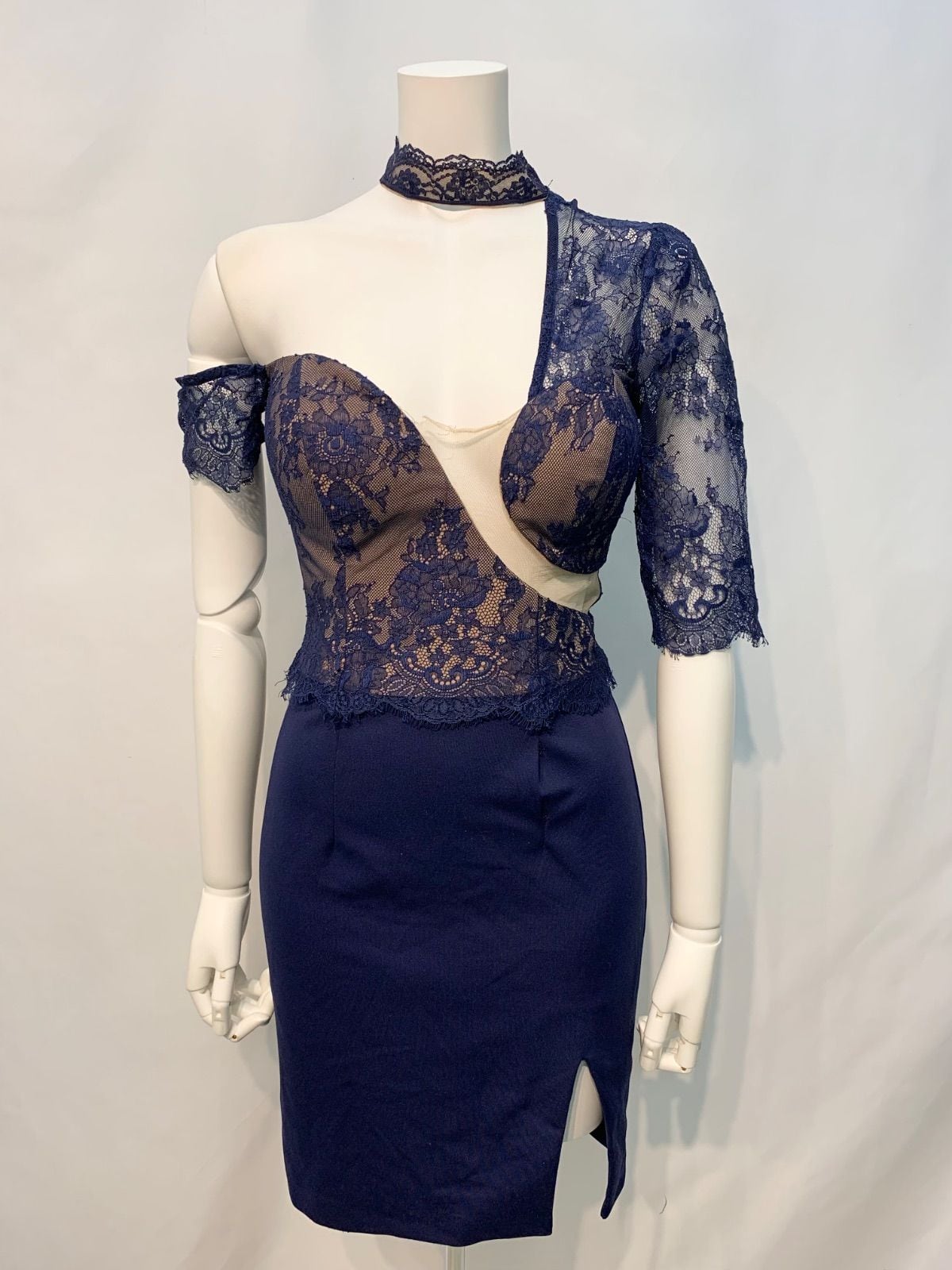 1644 an アン Andy アンディ キャバクラ ドレス レース ワンショルダー タイト ミニ スリット キャバドレス S