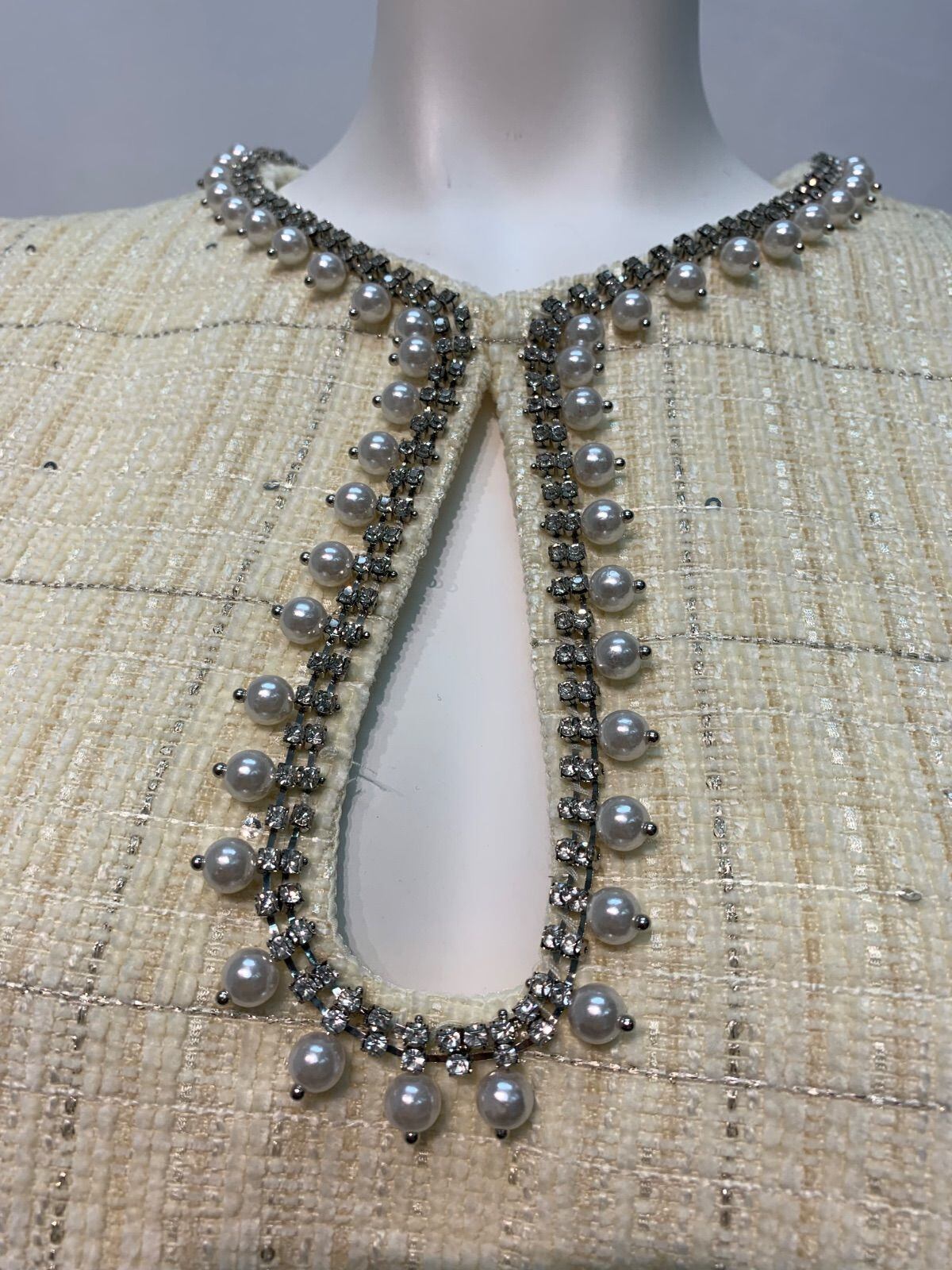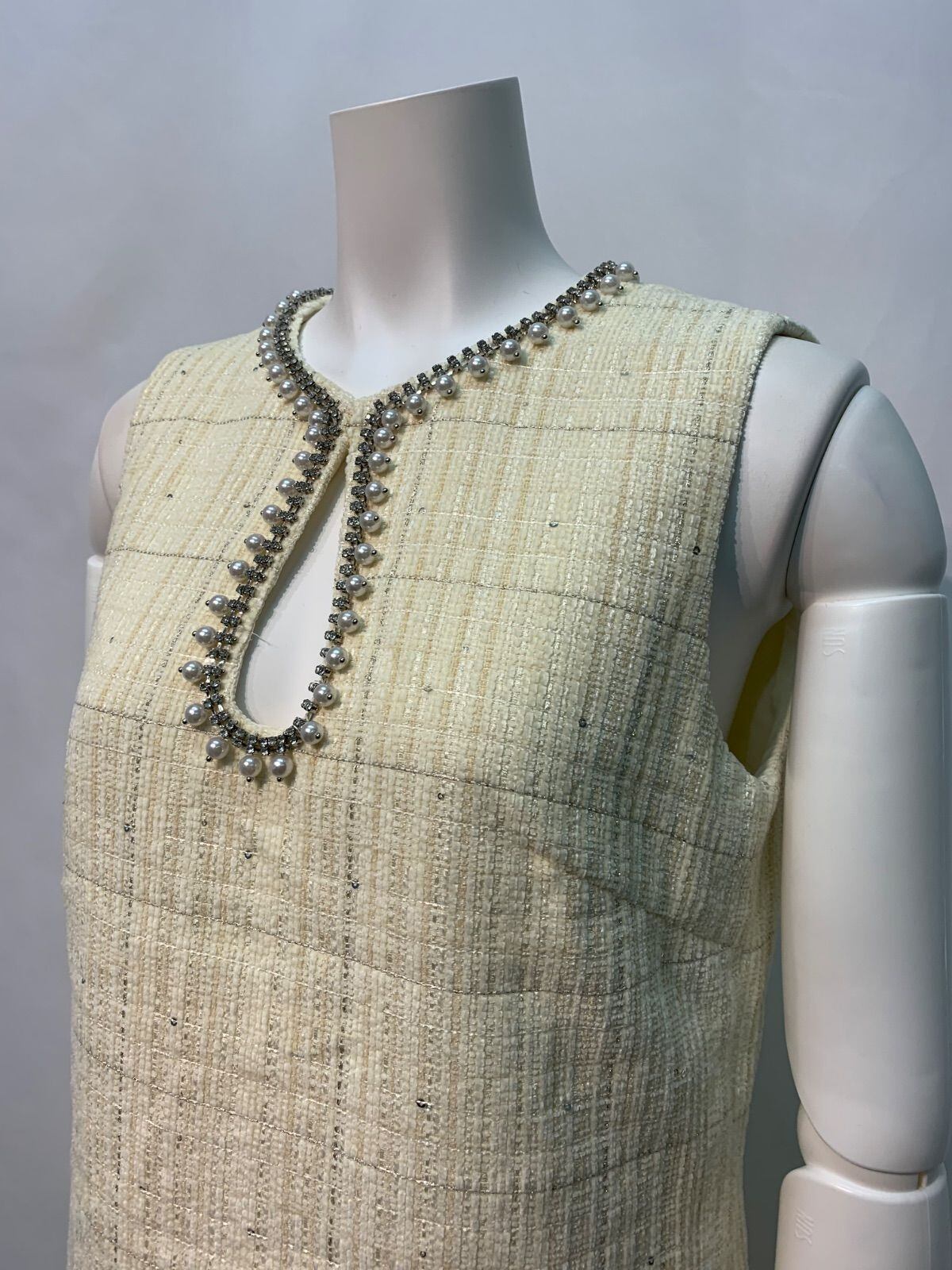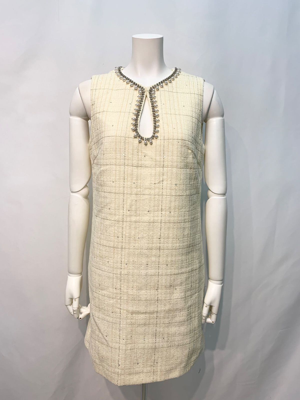 1649 MOTF キャバクラ ドレス ツイード ラメ ノースリーブ パール ストーン ビジュー 二次会 お呼ばれ キャバドレス S