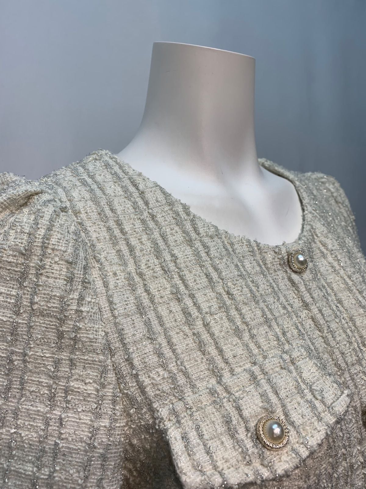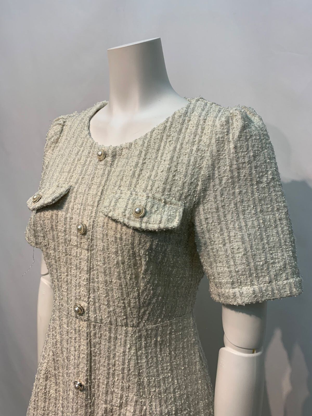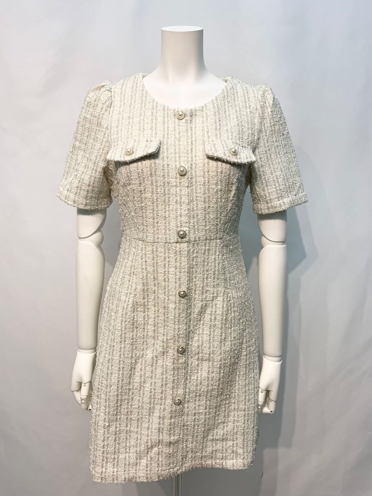 1657 キャバクラ ドレス ツイード ラメ キラキラ パールボタン ミニ 伸縮性 キャバドレス M
