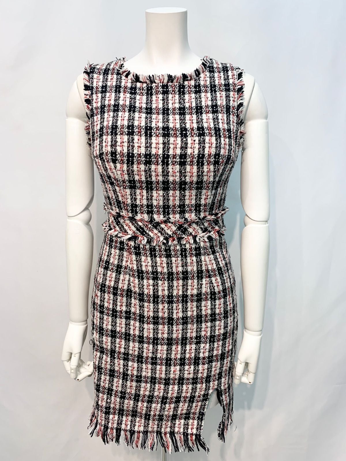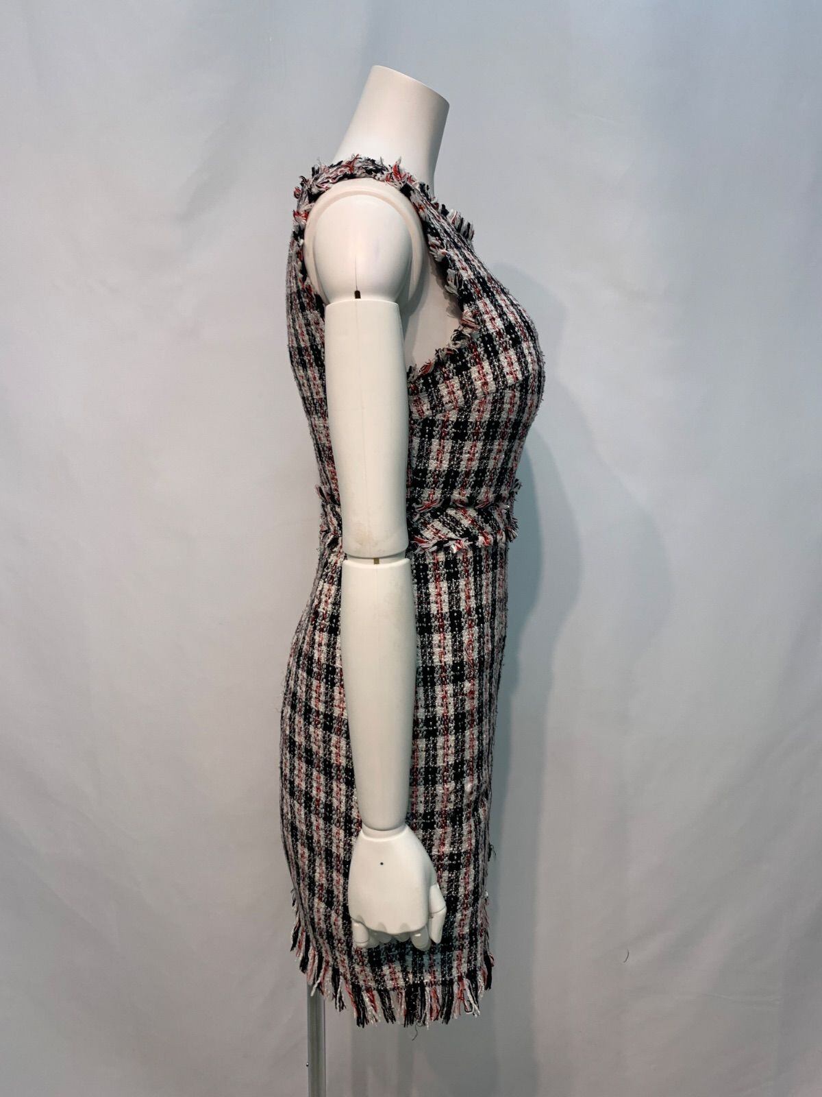 1665 JEWELS ジュエルズ キャバクラ ドレス ツイード ラメ キラキラ ミディ スリット ノースリーブ フリンジ タイト キャバドレス M