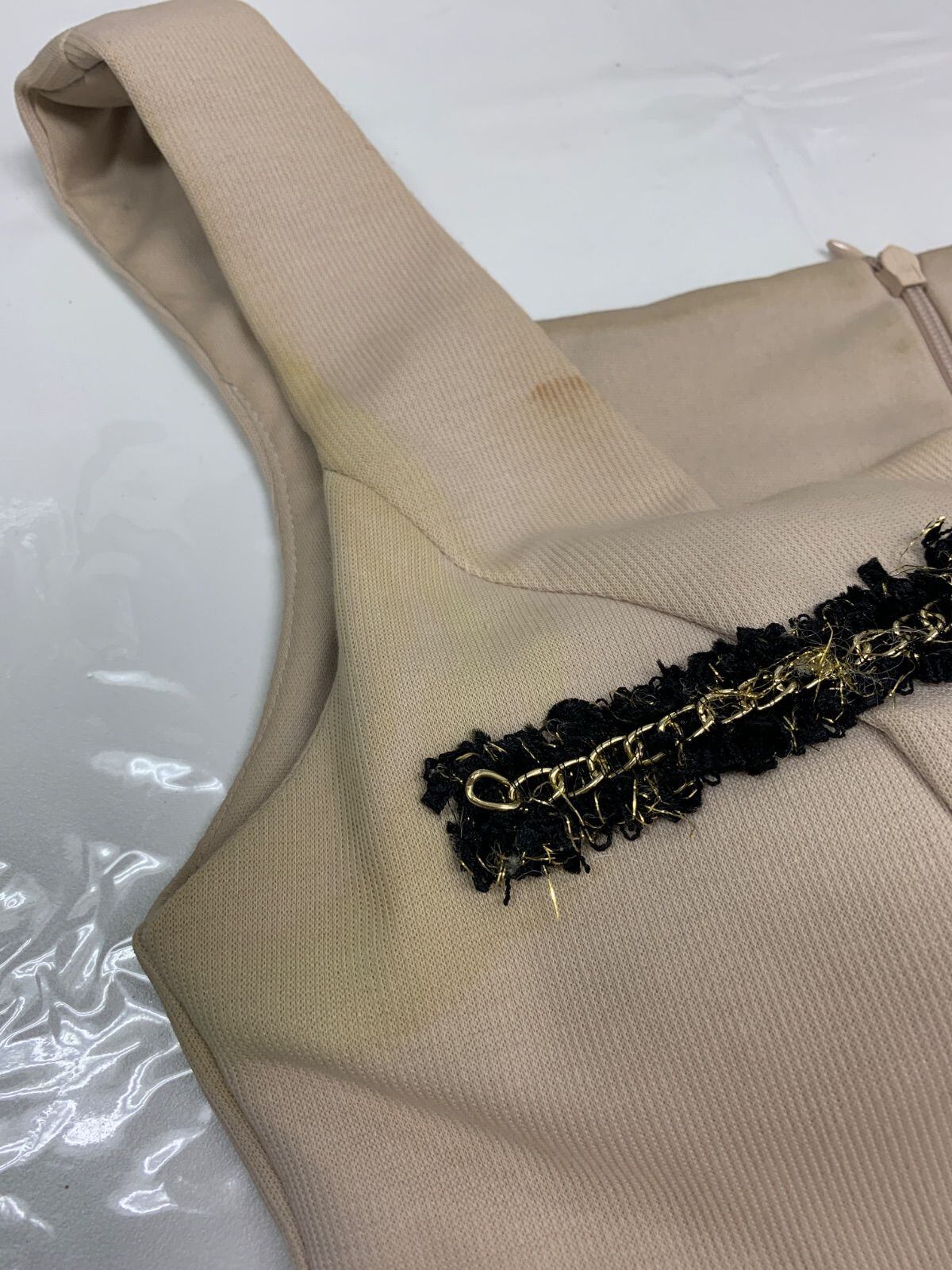 数カ所汚れ、脇下シミ、後ろ毛玉