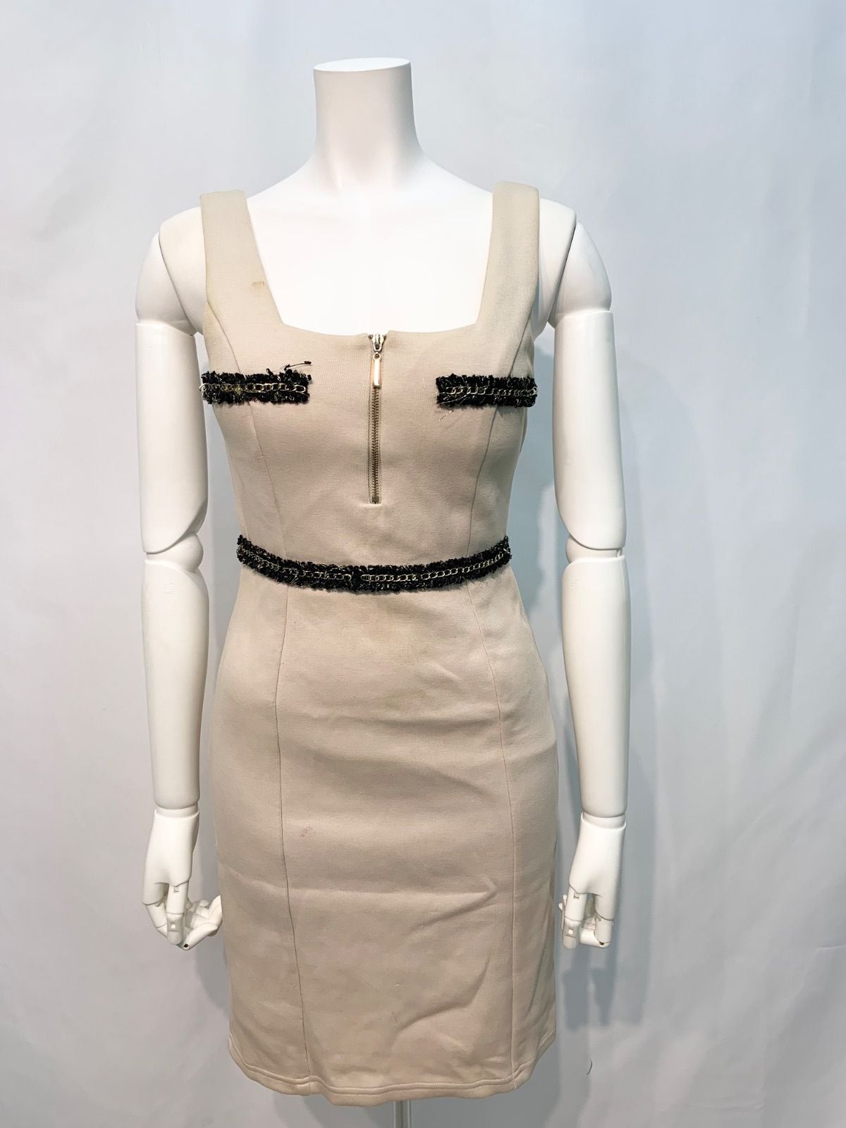 1668 Tika ティカ キャバクラ ドレス リブニット 伸縮性 タイト ゴールドチェーン フロントジップ ミニ キャバドレス S