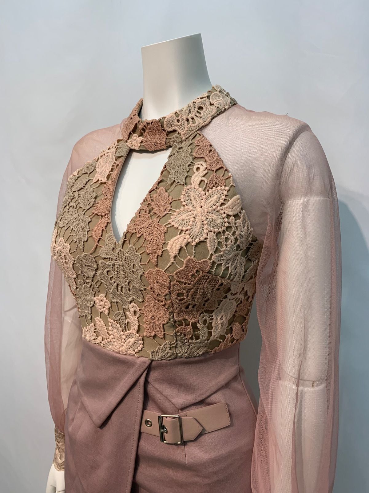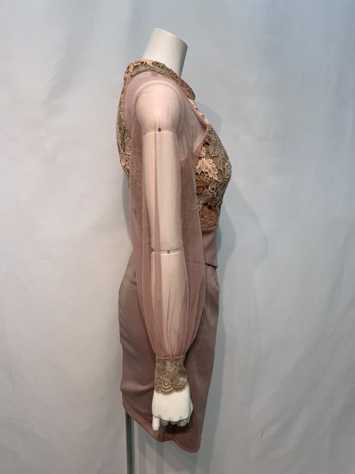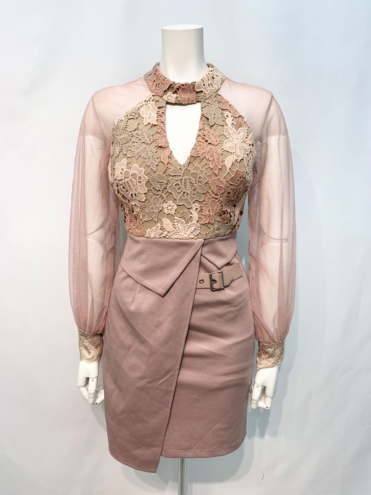 1670 JEWELS ジュエルズ キャバクラ ドレス フラワー刺繍 レース シアー タイト ミニ キャバドレス S