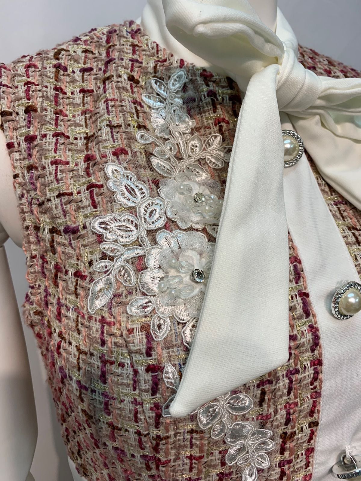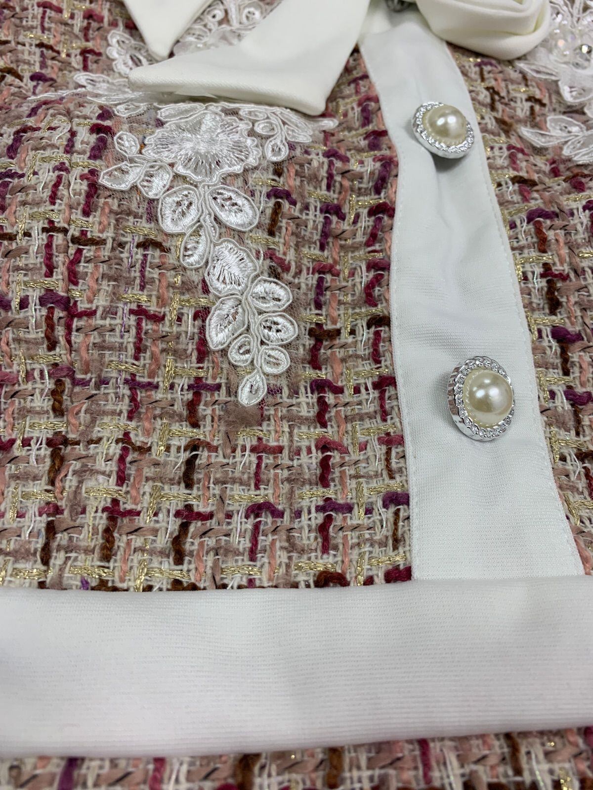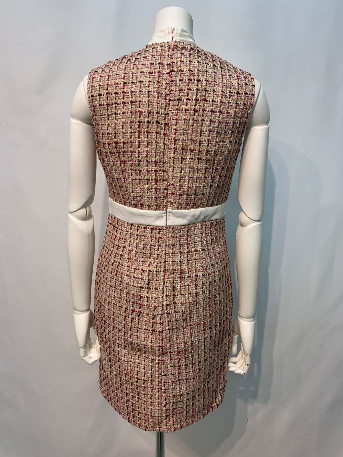 1671 Tika ティカ キャバクラ ドレス ツイード ラメ リボン ノースリーブ フラワー刺繍 ビジュー タイト ミディ キャバドレス M