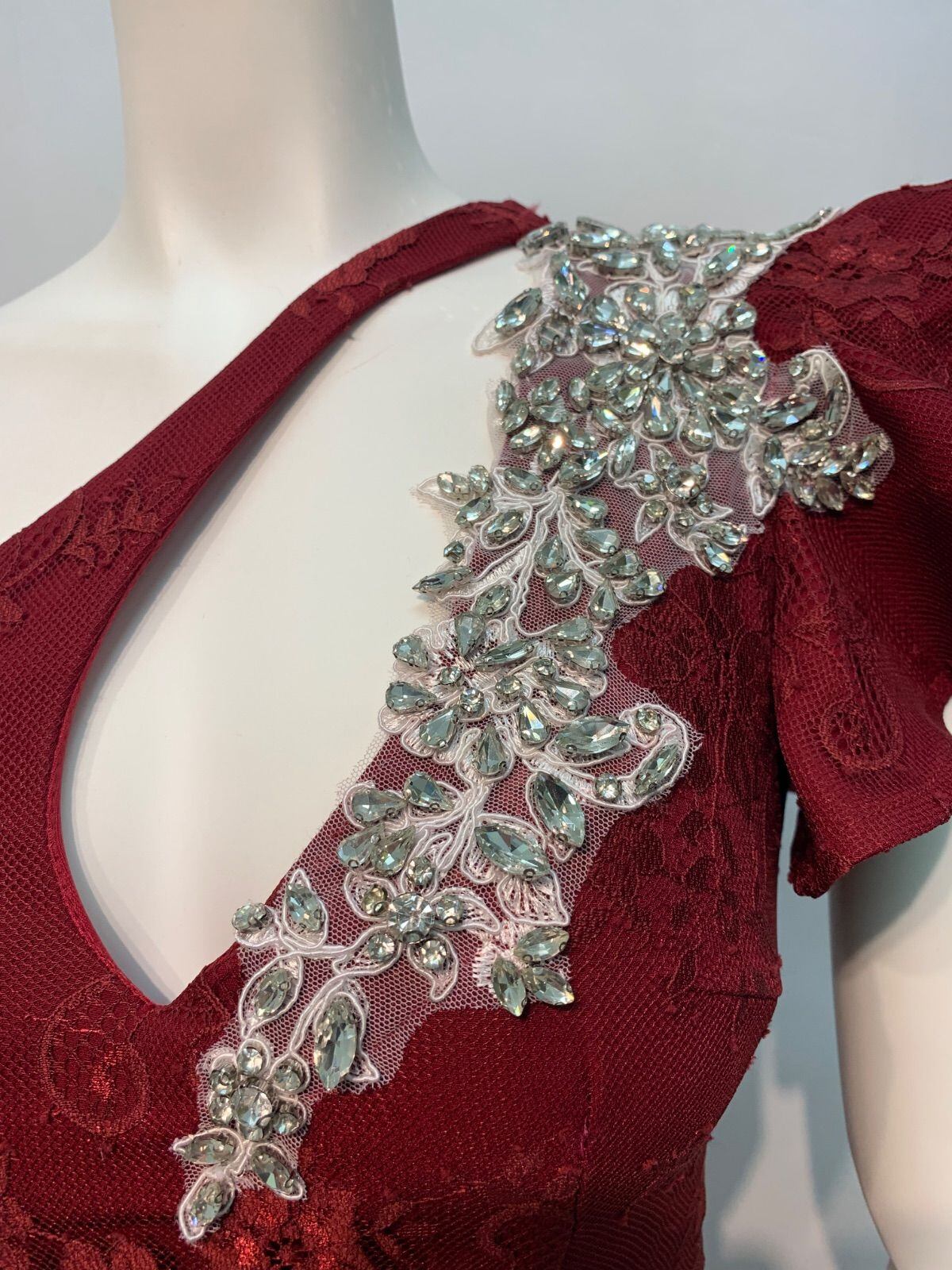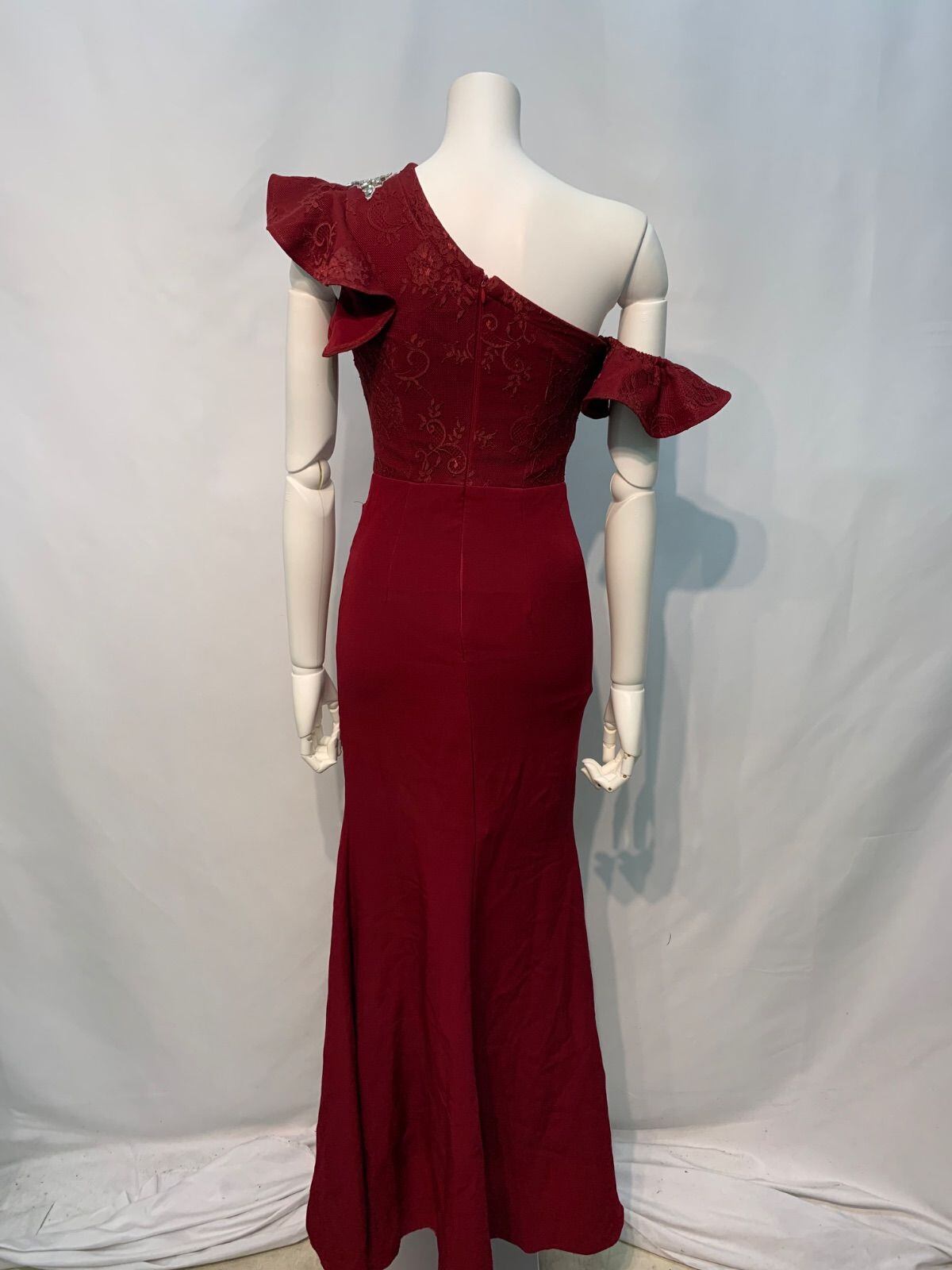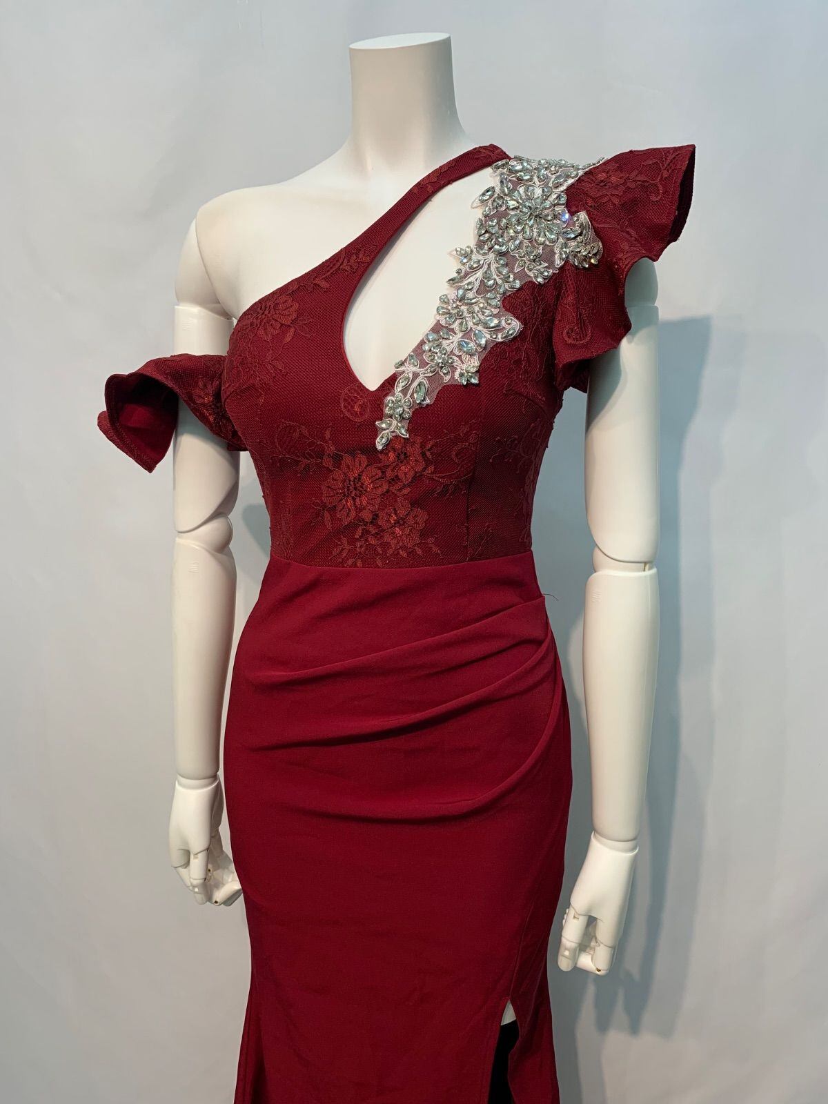 1675 JEWELS ジュエルズ キャバクラ ロングドレス スリット ワンショルダー レース ストーン フリル イベント ギャザー タイト 華やか キャバドレス S