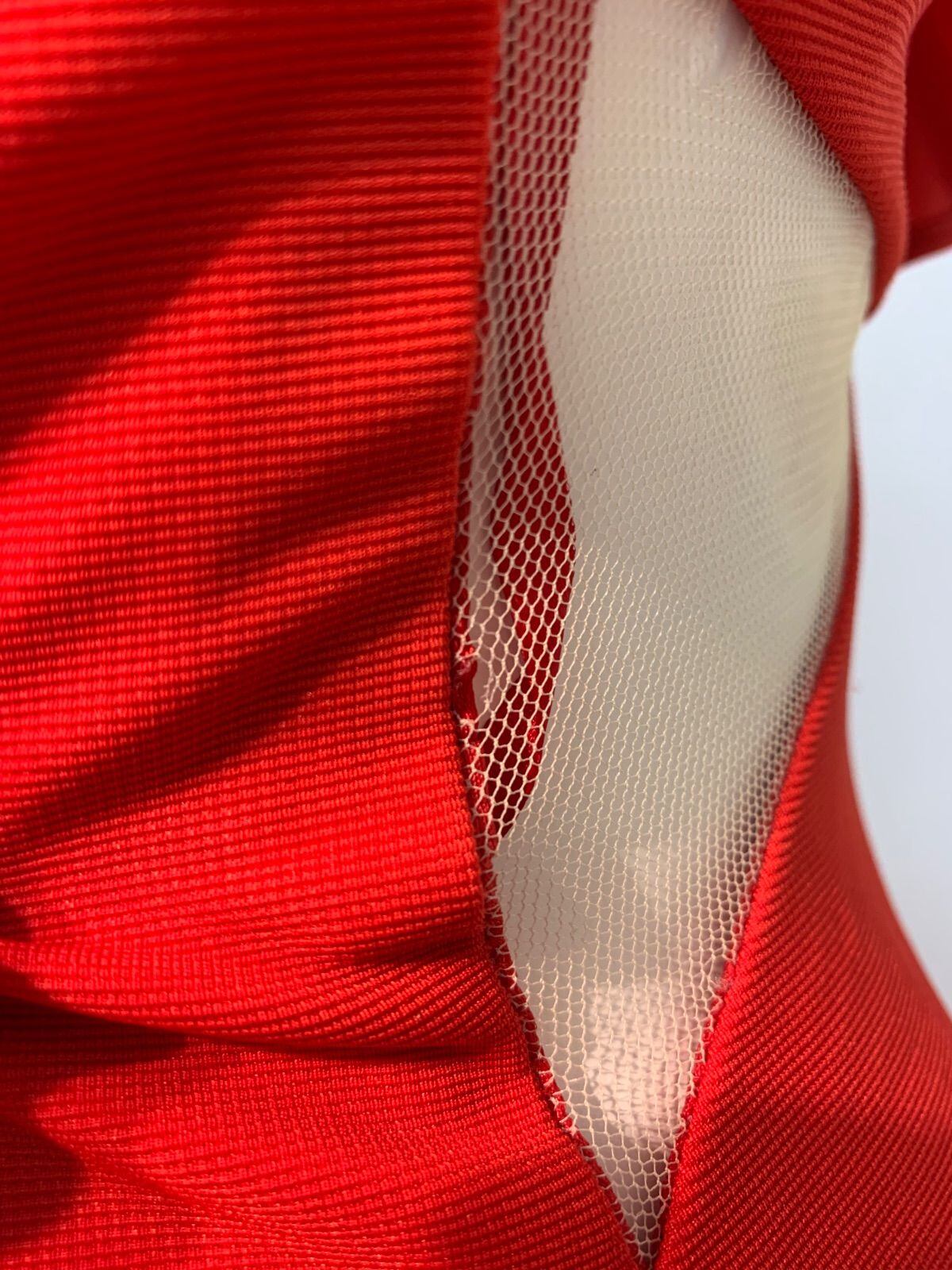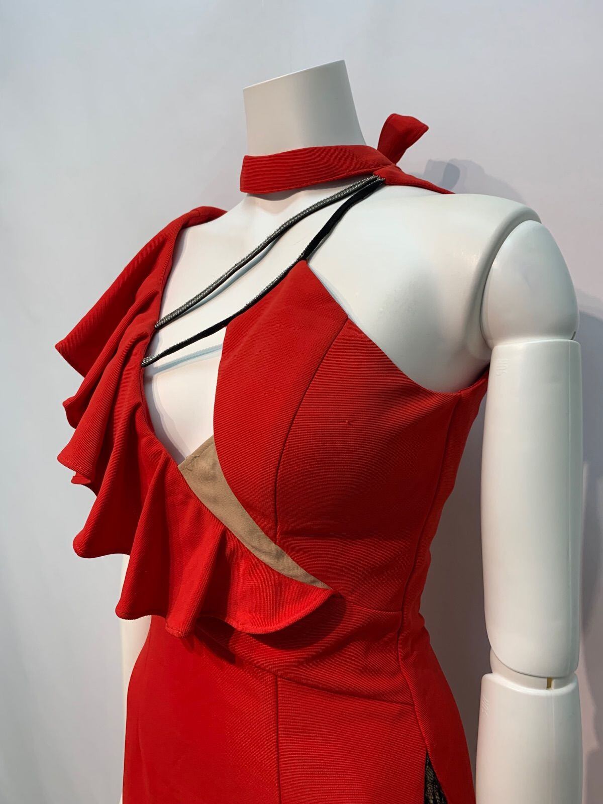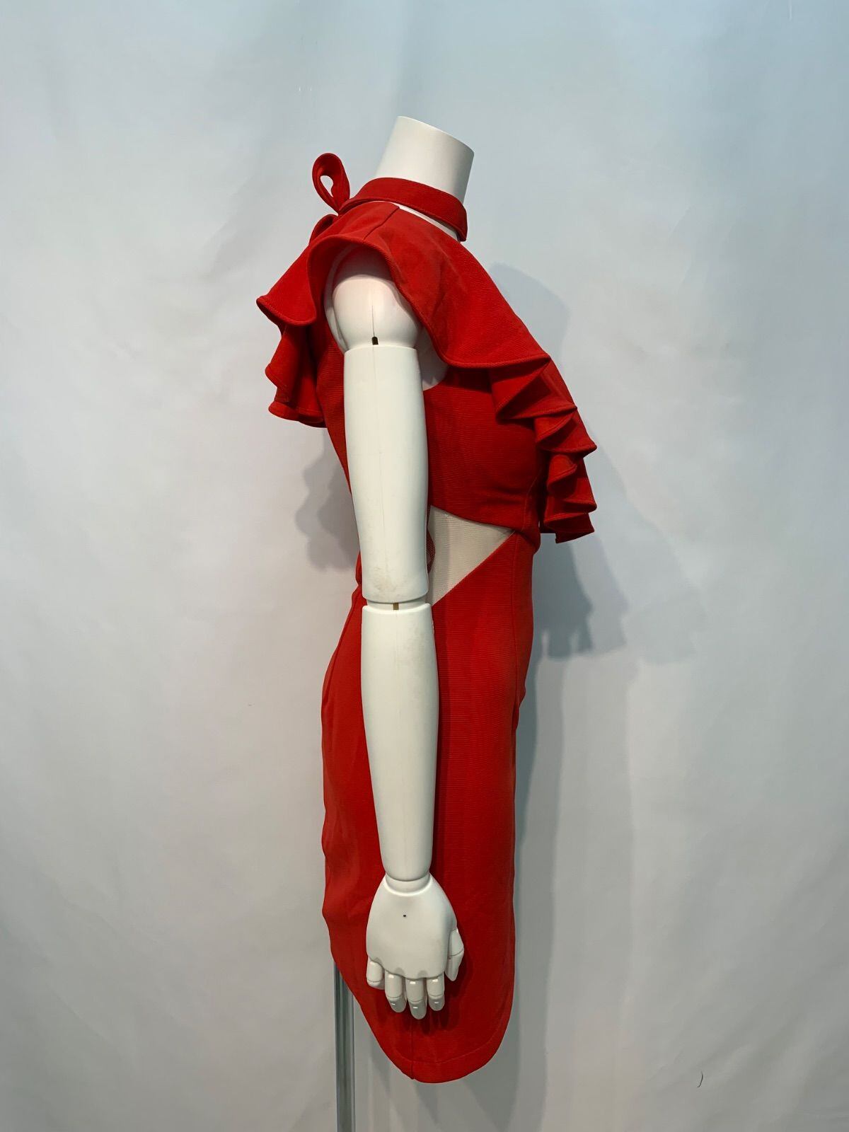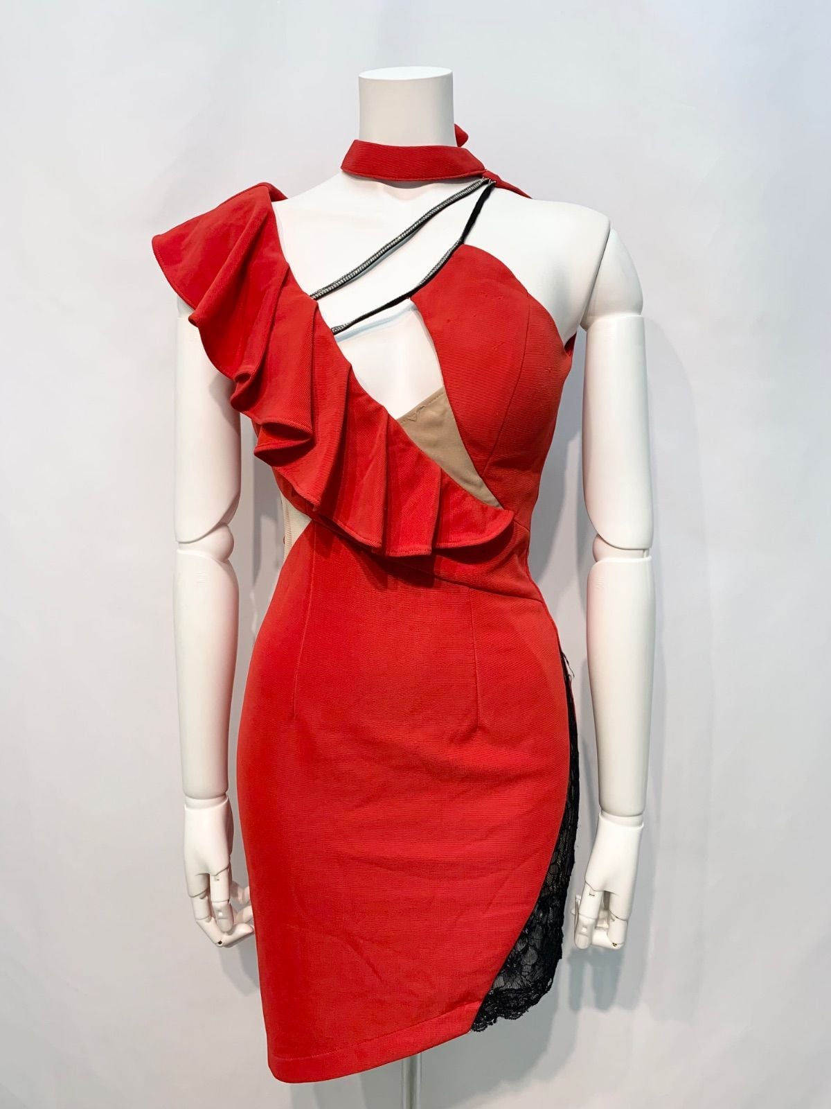 1680 ROBE de FLEURS Glossy ローブドフルールグロッシー キャバクラ ドレス フリル ストーン タイト サイドシースルー リボンホルターネック キャバドレス S