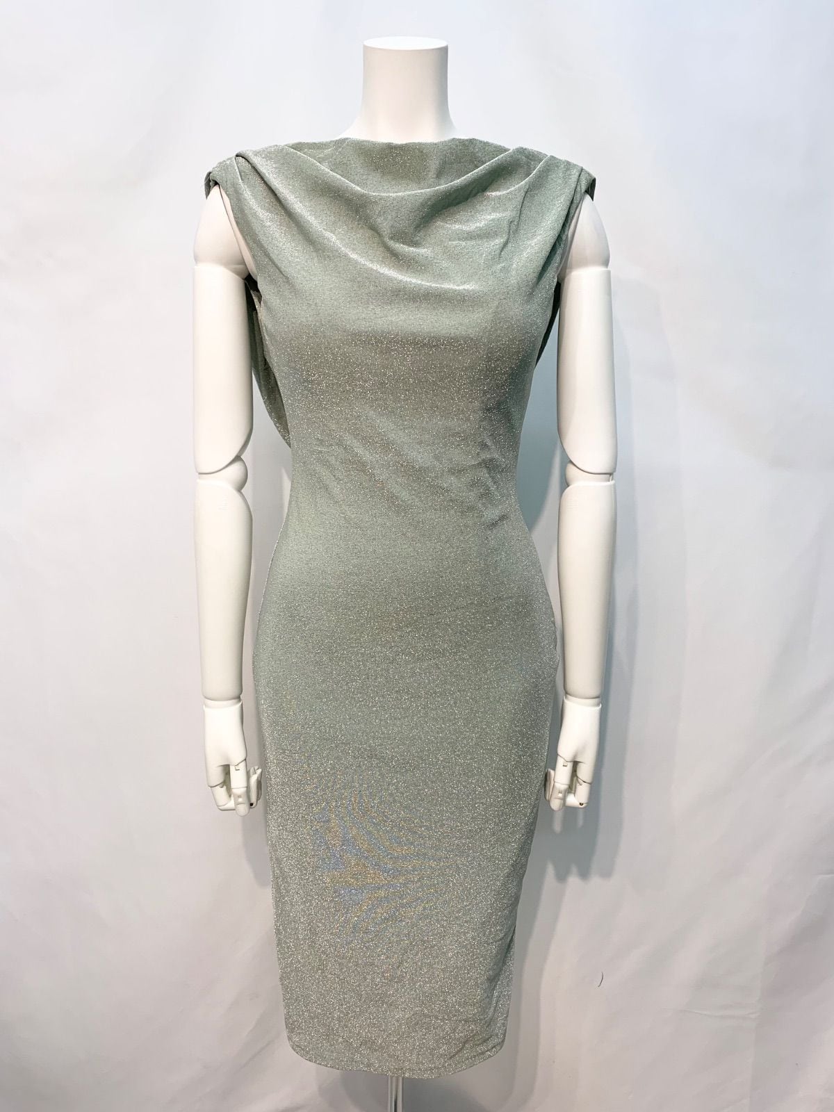 1684 Veautt ヴュート キャバクラ ドレス 伸縮性 ラメ キラキラ ドレープ ビジュー スリット キャバドレス XS