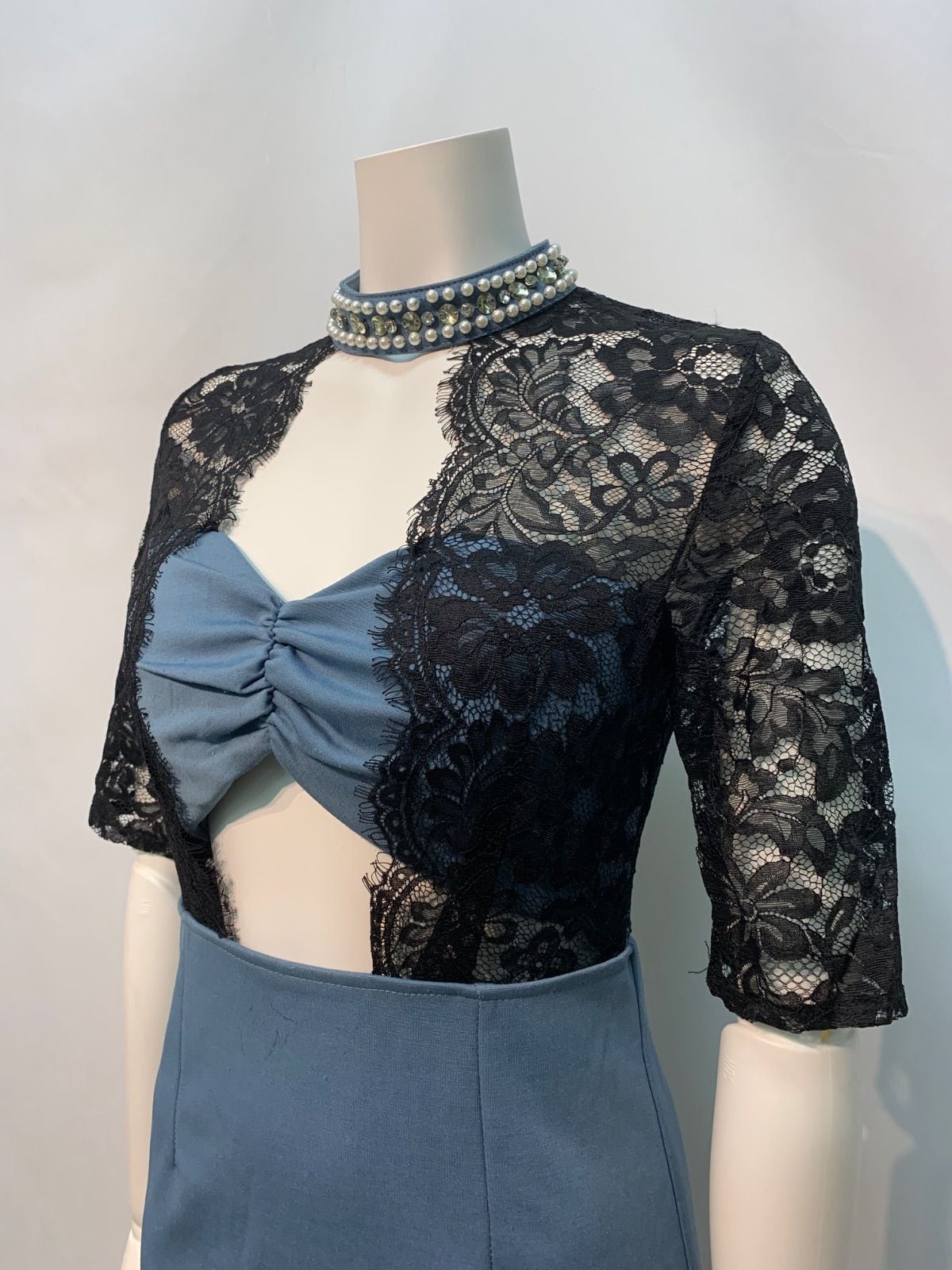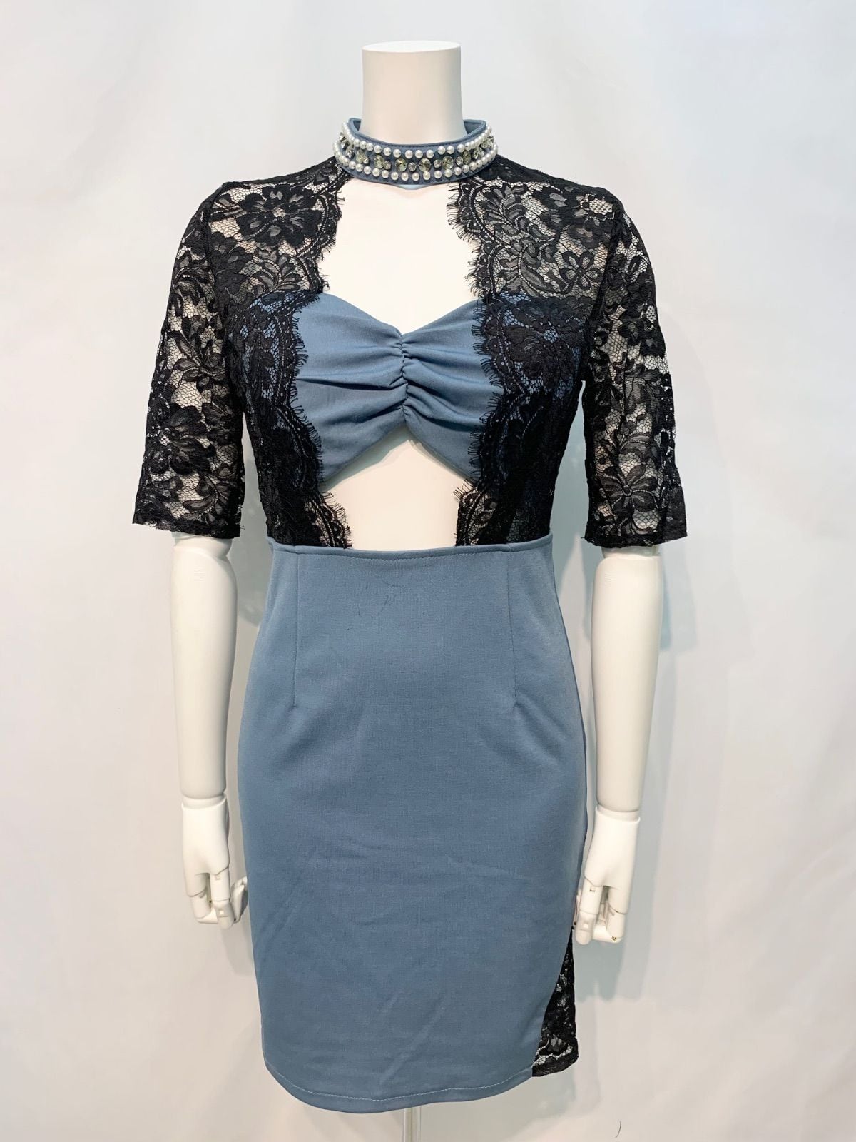 1692 DAZZY デイジー キャバクラ ドレス レース ストーン パール タイト ウエストカット キャバドレス M