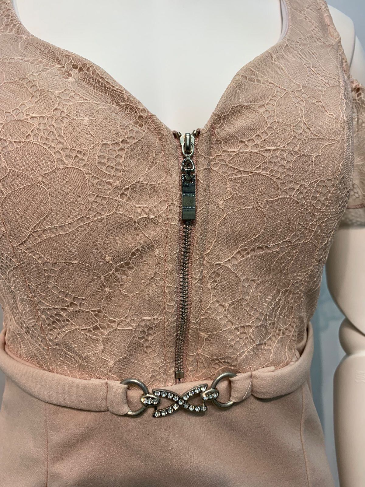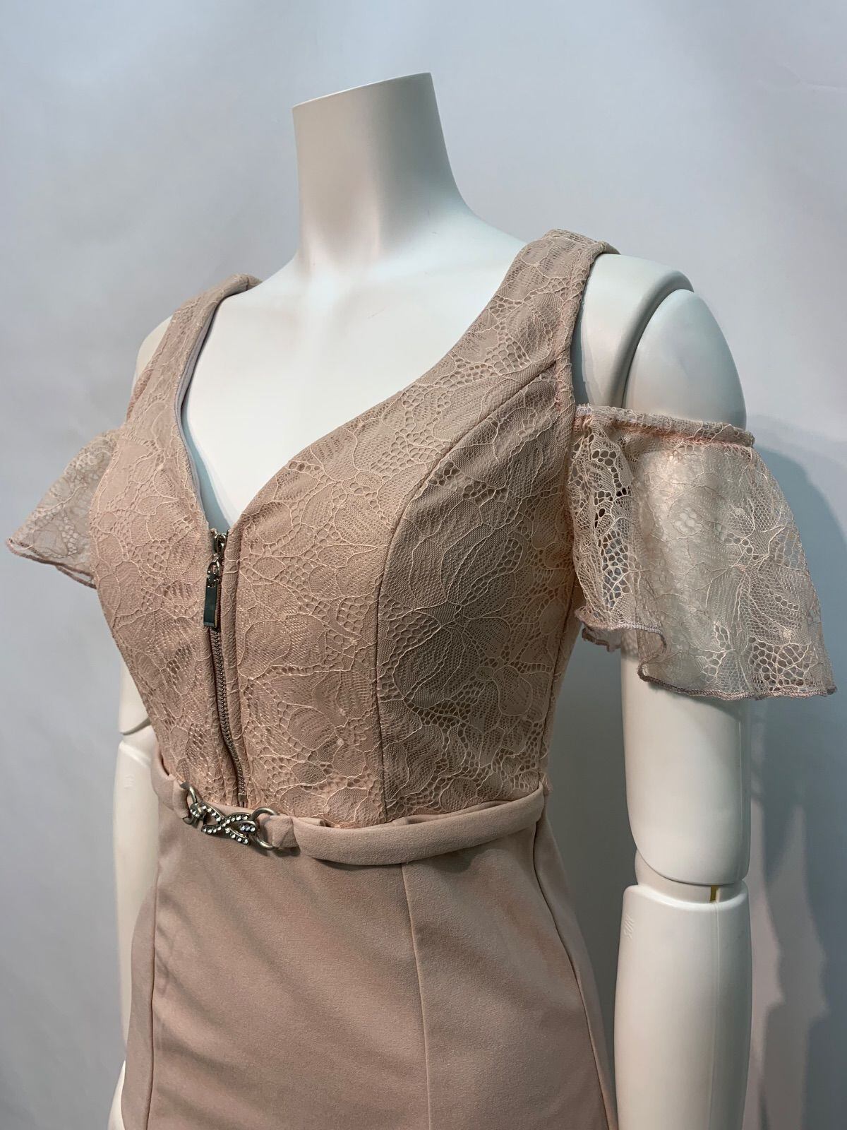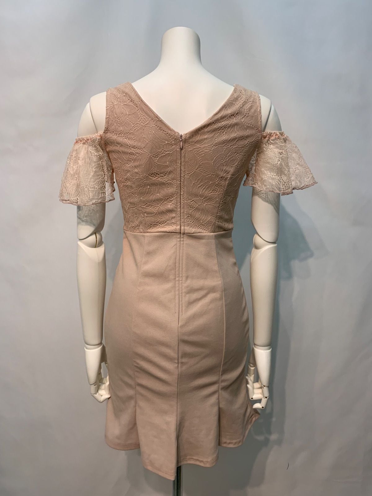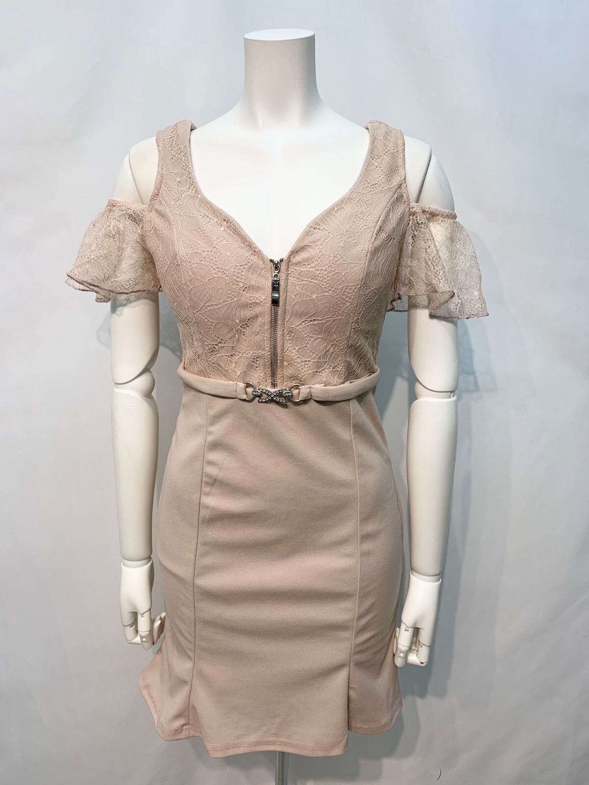 1693 DAZZY デイジー キャバクラ ドレス レース フリル タイト フロントジップ シルバー金具 ミニ キャバドレス S