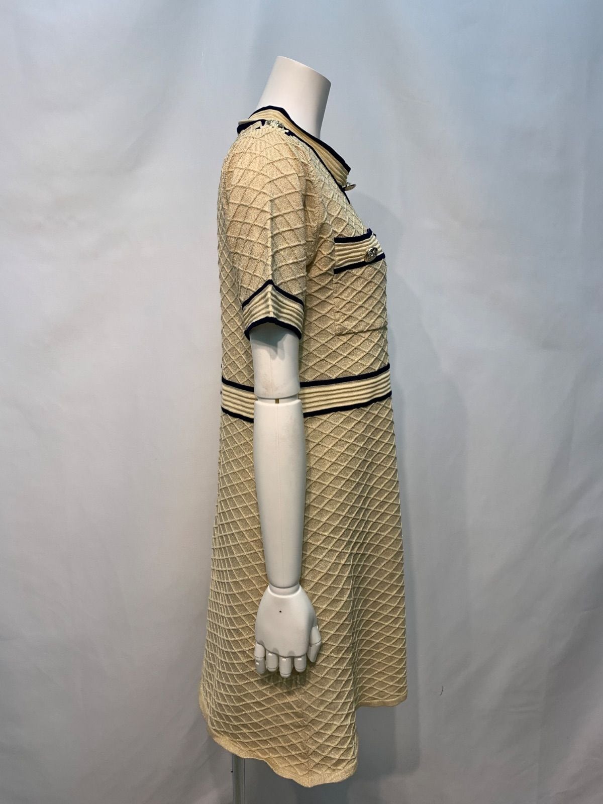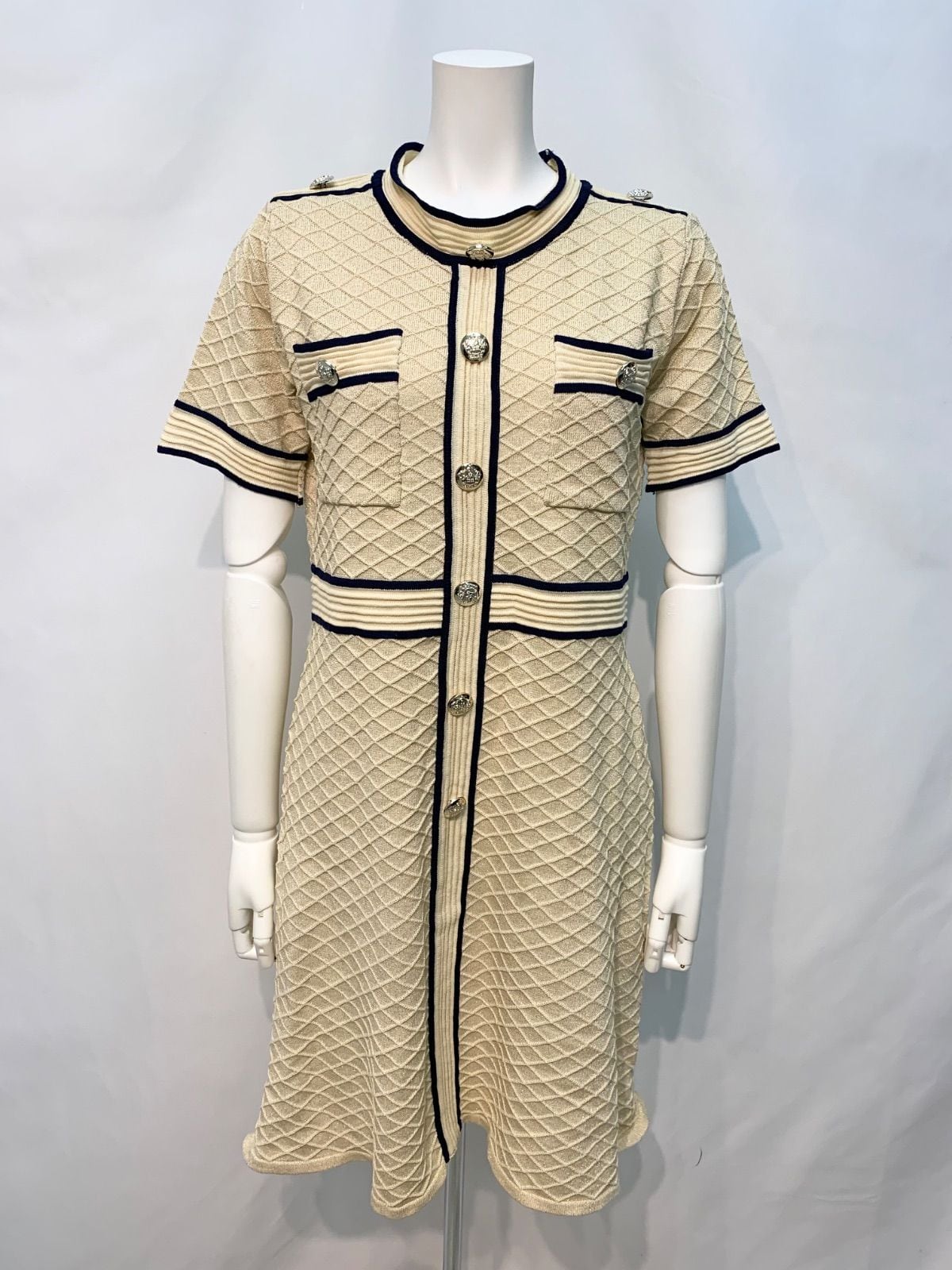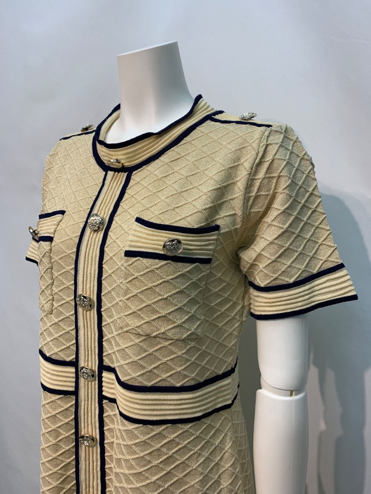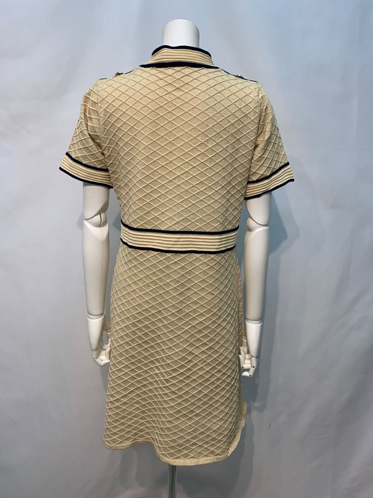 1696 BARNAHAN キャバクラ ドレス キラキラ ラメ ジャガードニット ワンピース パイピング ゴールドボタン 伸縮性 キャバドレス