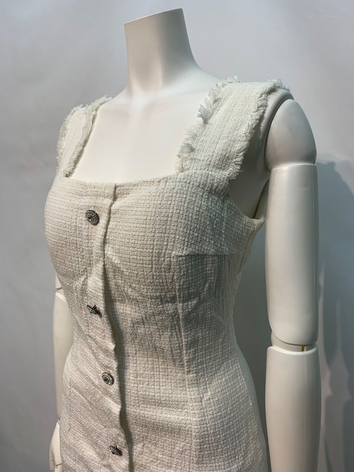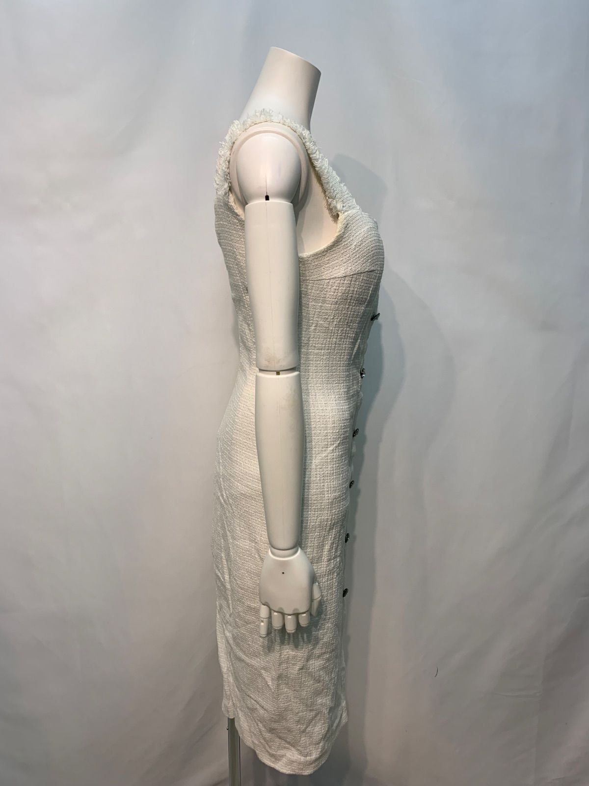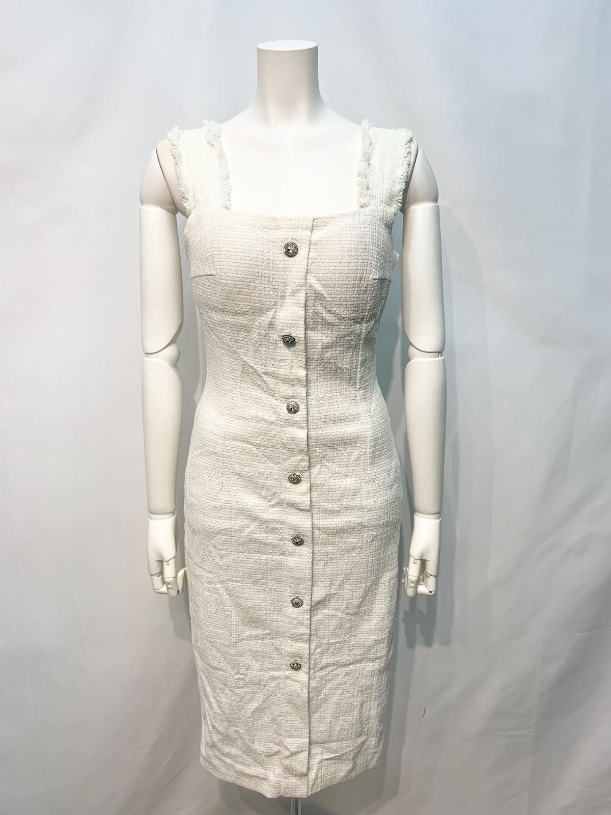 1701 キャバクラ ドレス ツイード ミディ タイト ビジューボタン キャバドレス M