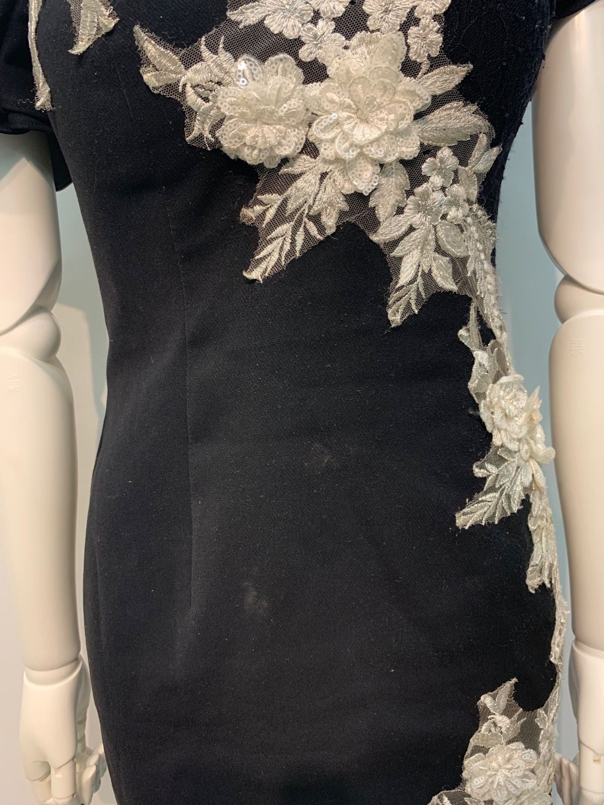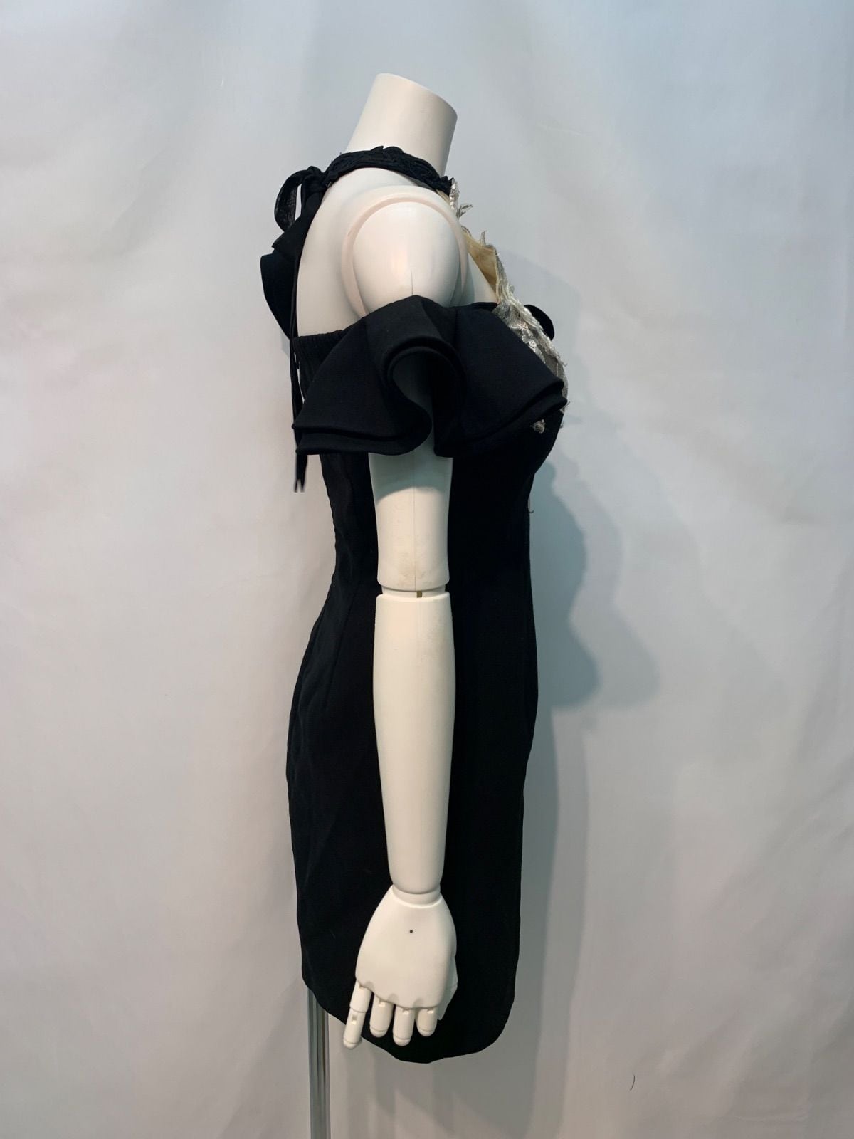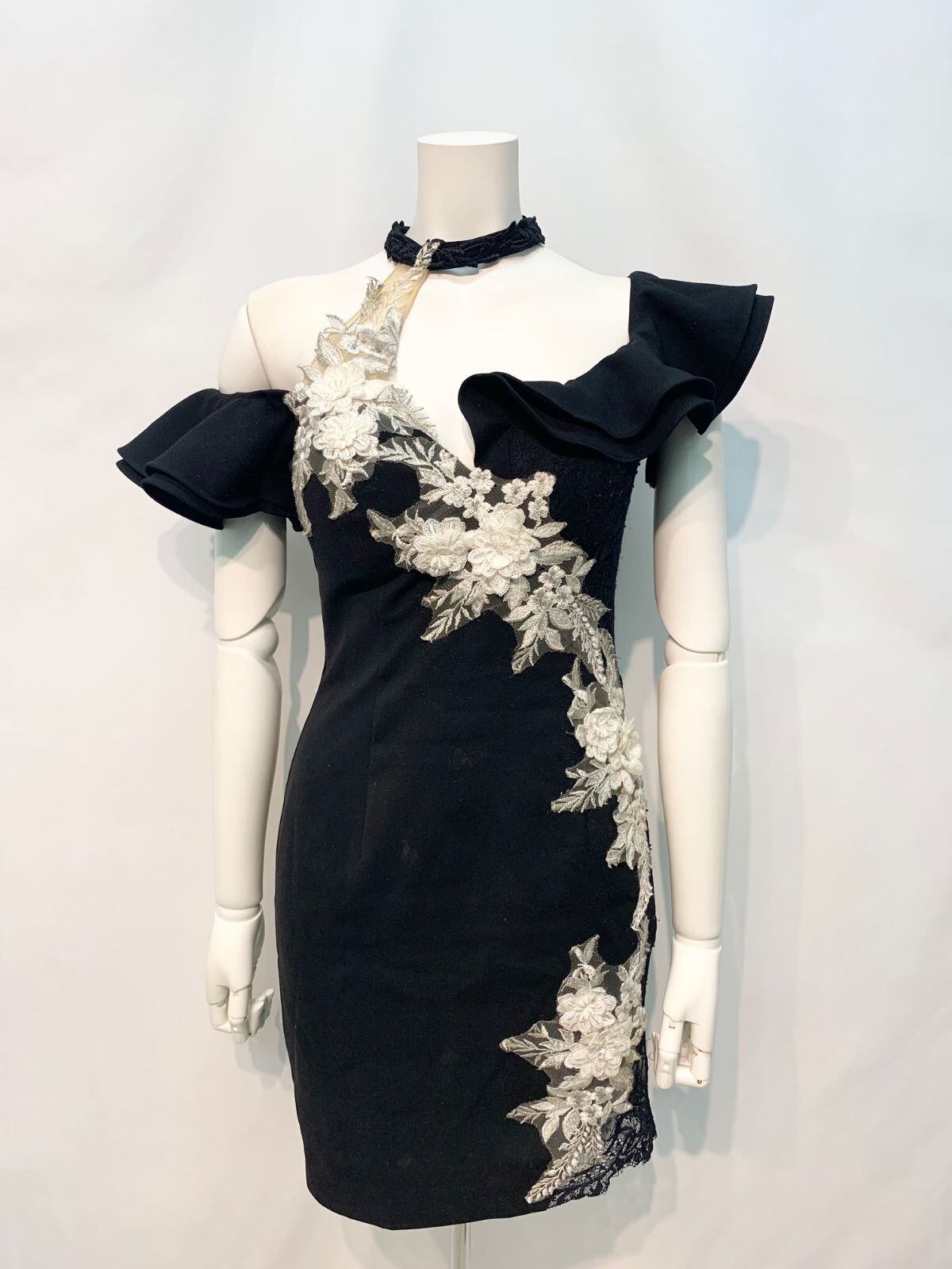 1702 ROBE de FLEURS Glossy ローブドフルールグロッシー キャバクラ ドレス オフショル フリル フラワー刺繍 タイト ミニ 伸縮性 キャバドレス M