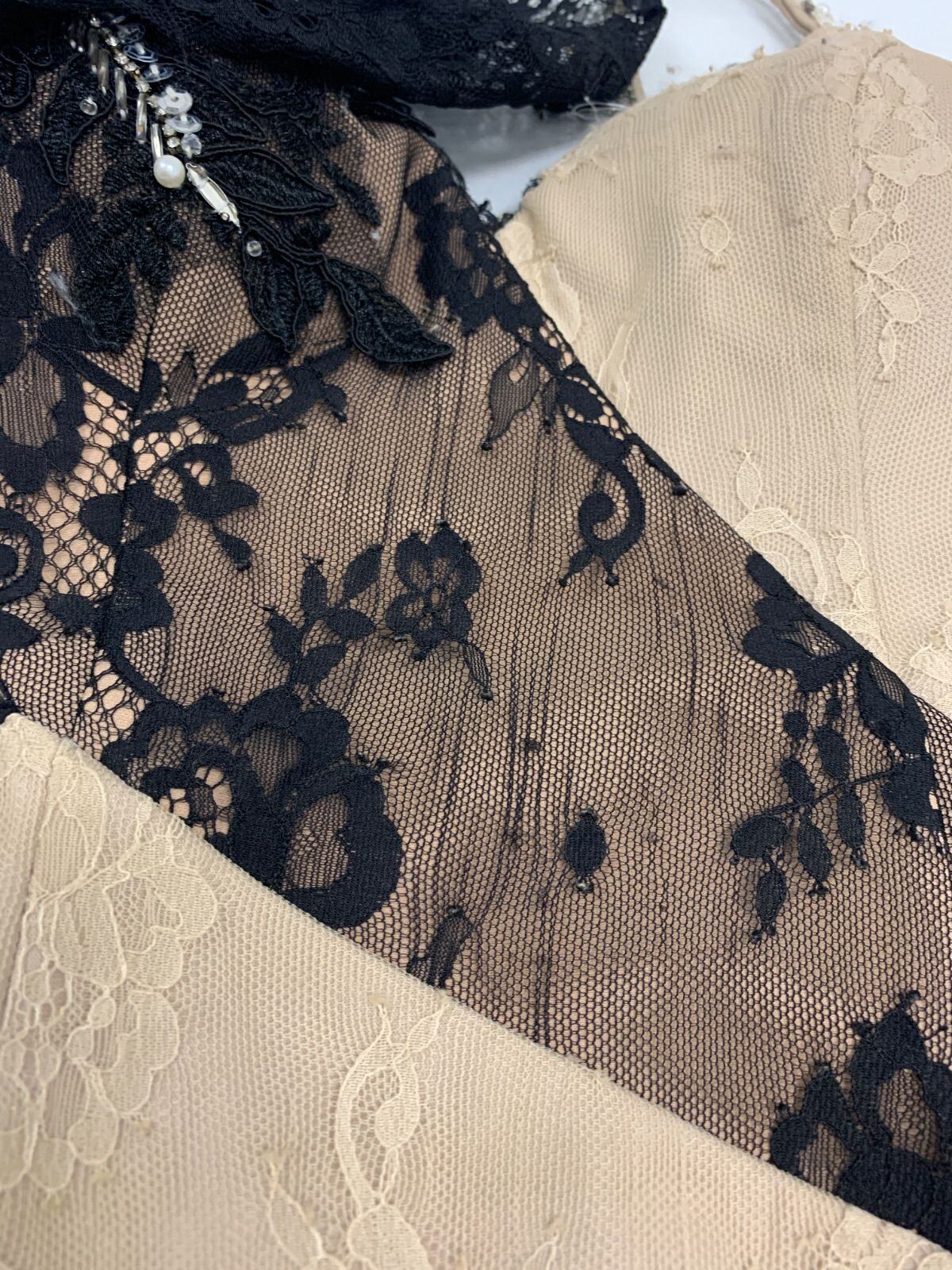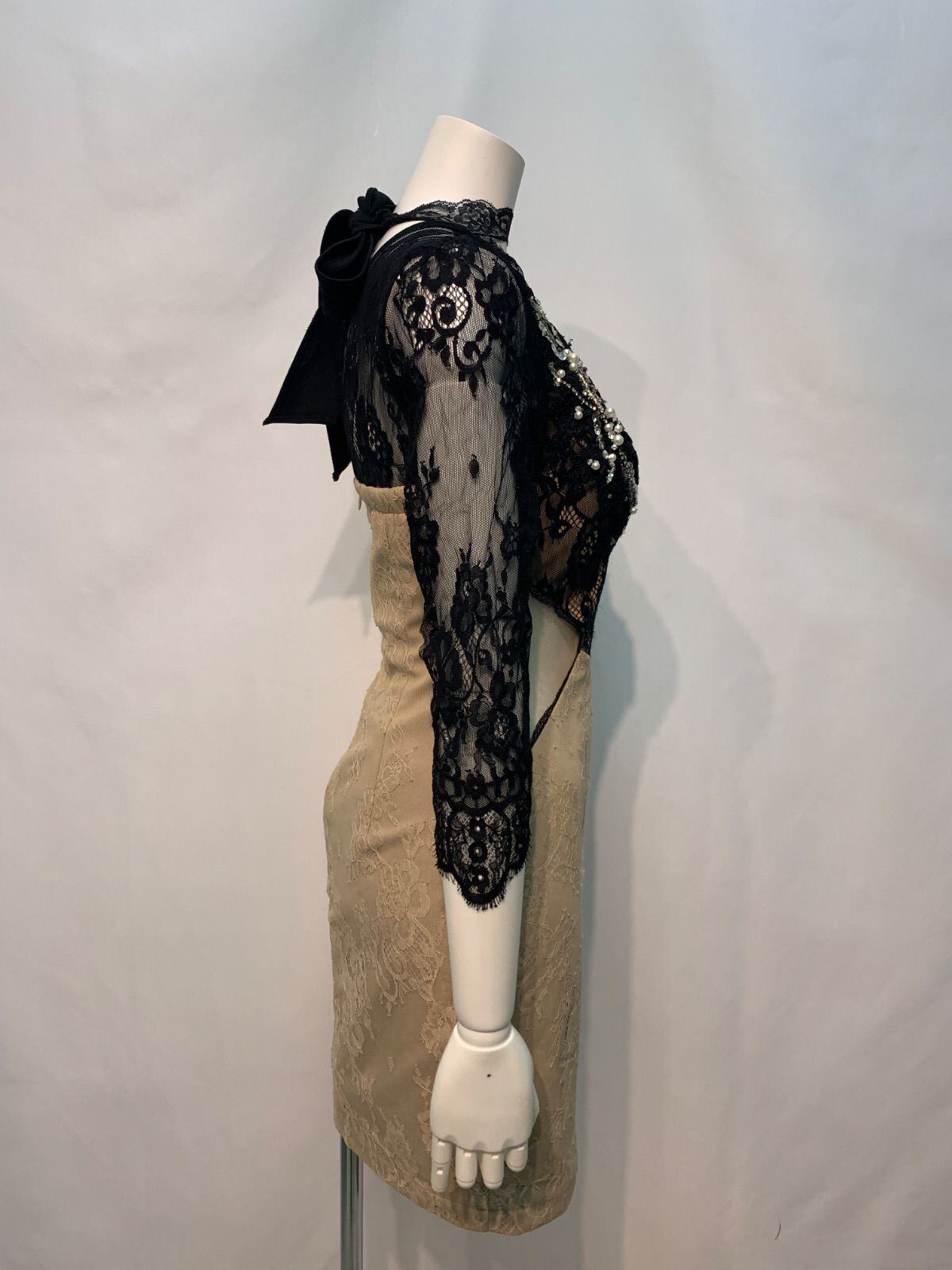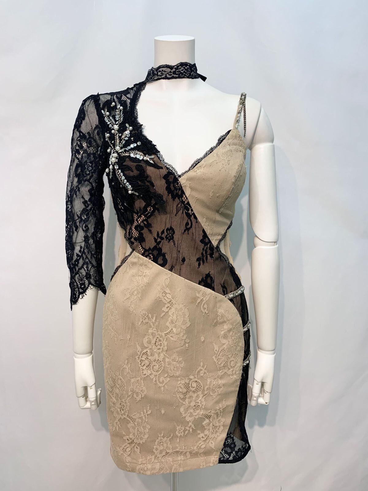 1706 ROBE de FLEURS Glossy ローブドフルールグロッシー キャバクラ ドレス 総レース ビジュー タイト ミニ シースルー キャバドレス M