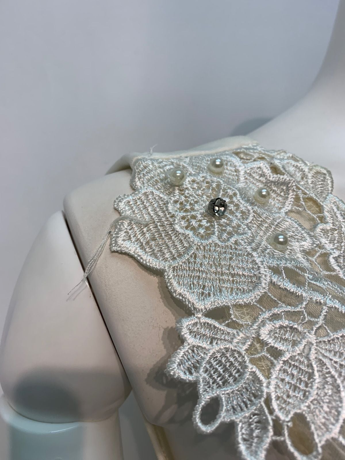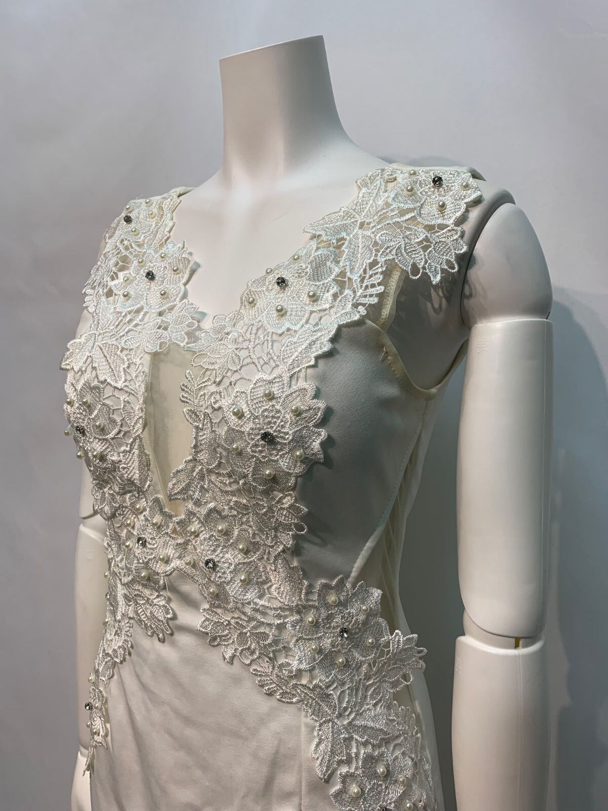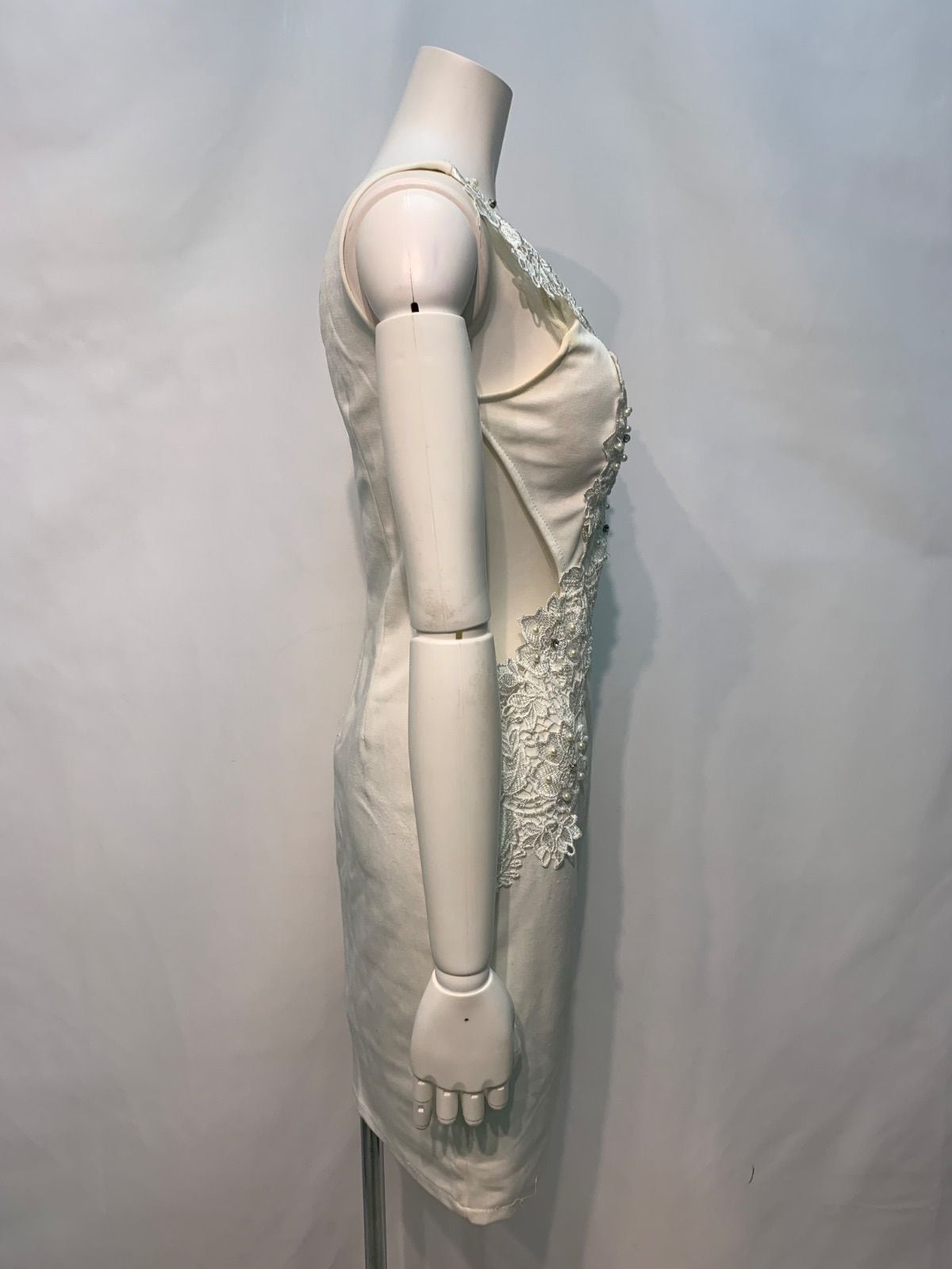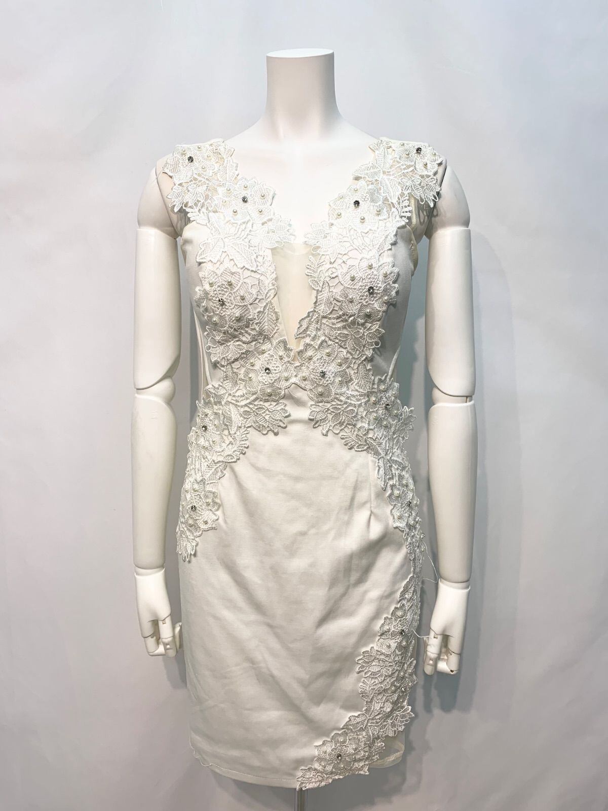 1707 Tika ティカ キャバクラ ドレス レース シースルー 刺繍 ビジュー パール ストーン タイト 伸縮性 ミニ キャバドレス M