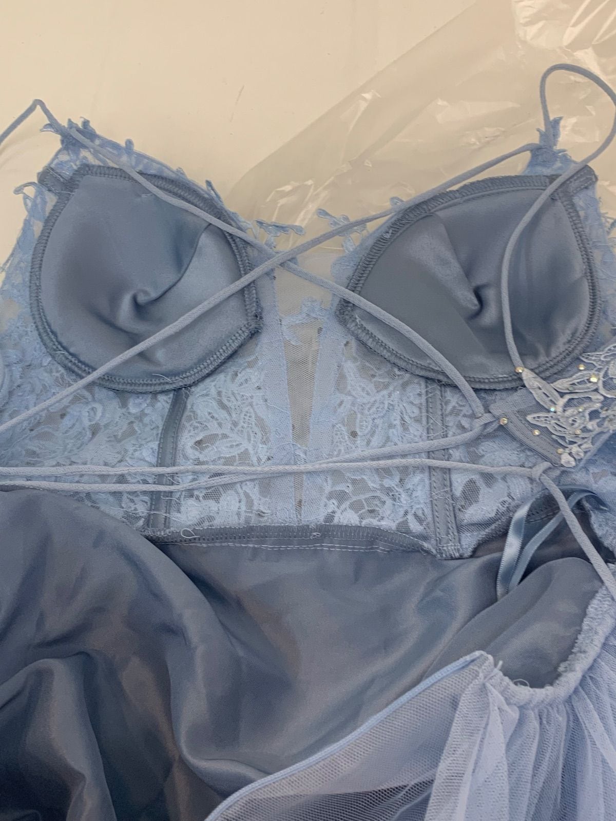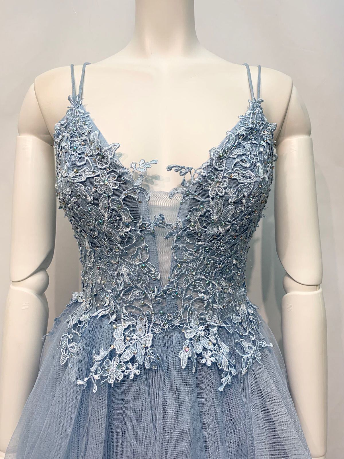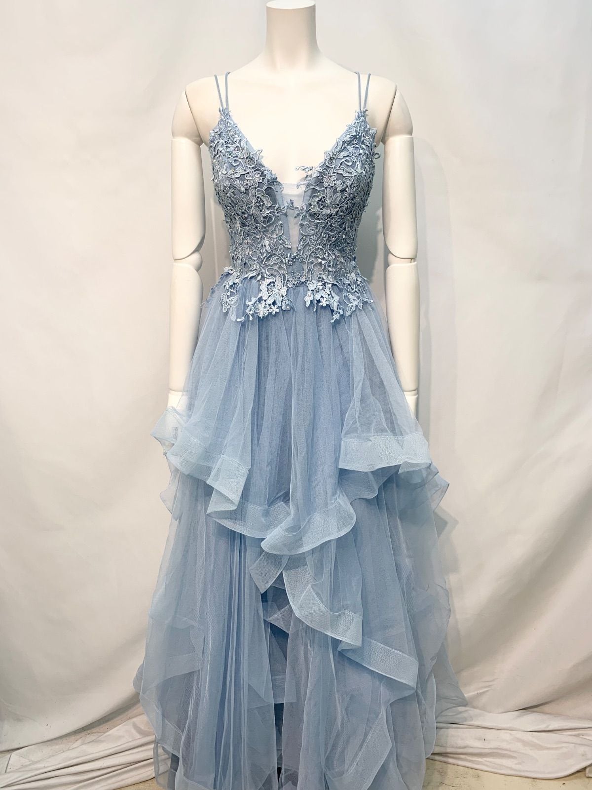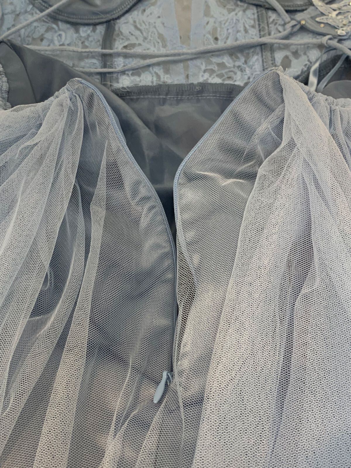1709 ONLY ONE オンリーワン キャバクラ ロングドレス プリンセス チュール フラワー 刺繍 レース バッククロス イベント バースデー 華やか キャバドレス S