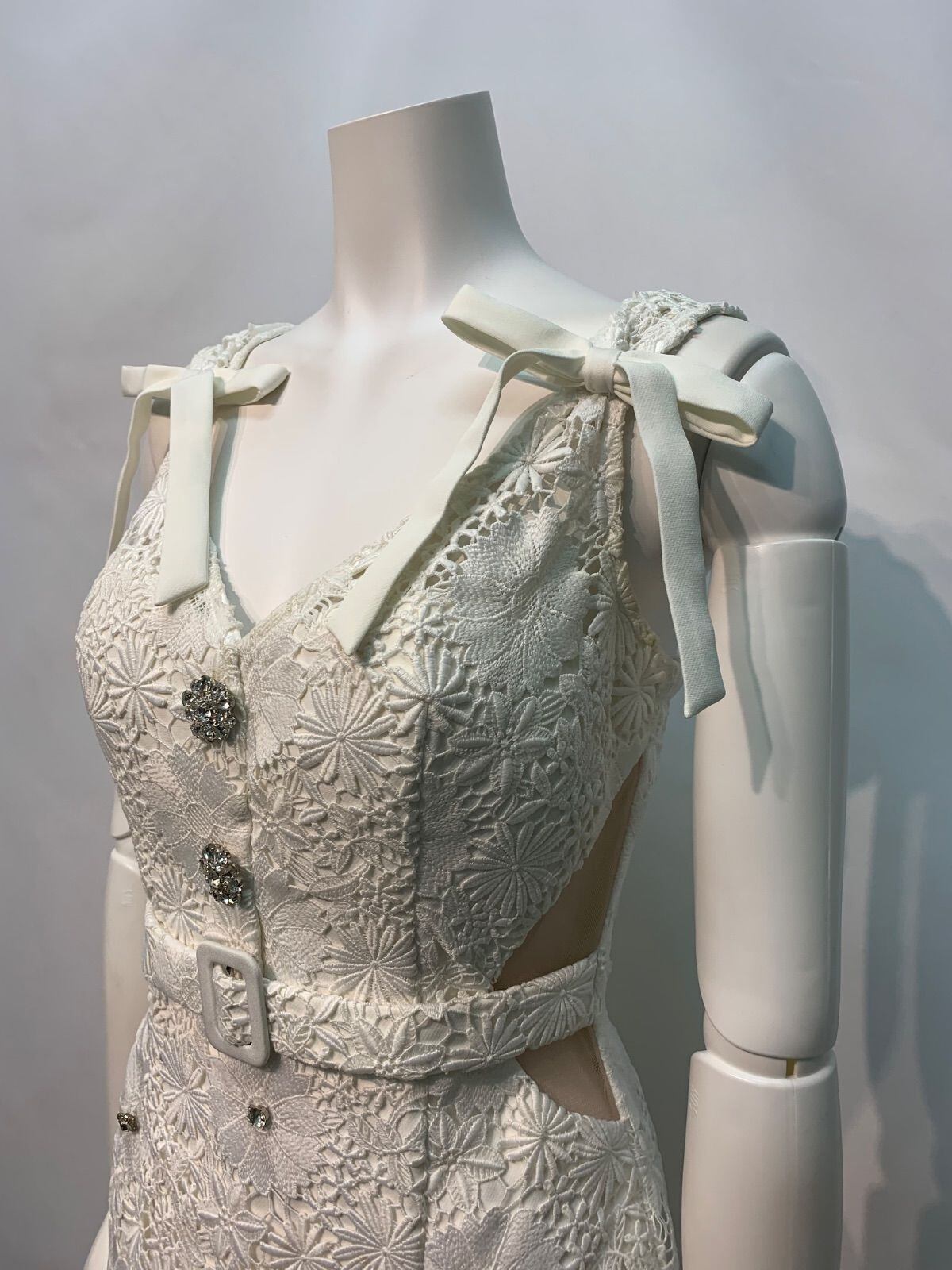 1711 ROBE de FLEURS ローブドフルール キャバクラ ドレス クロシェレース ストラップリボン タイト ミニ ストーン キャバドレス M