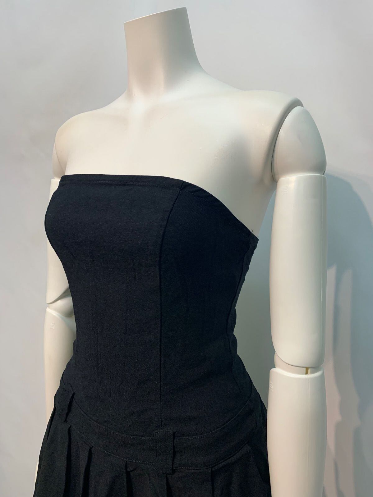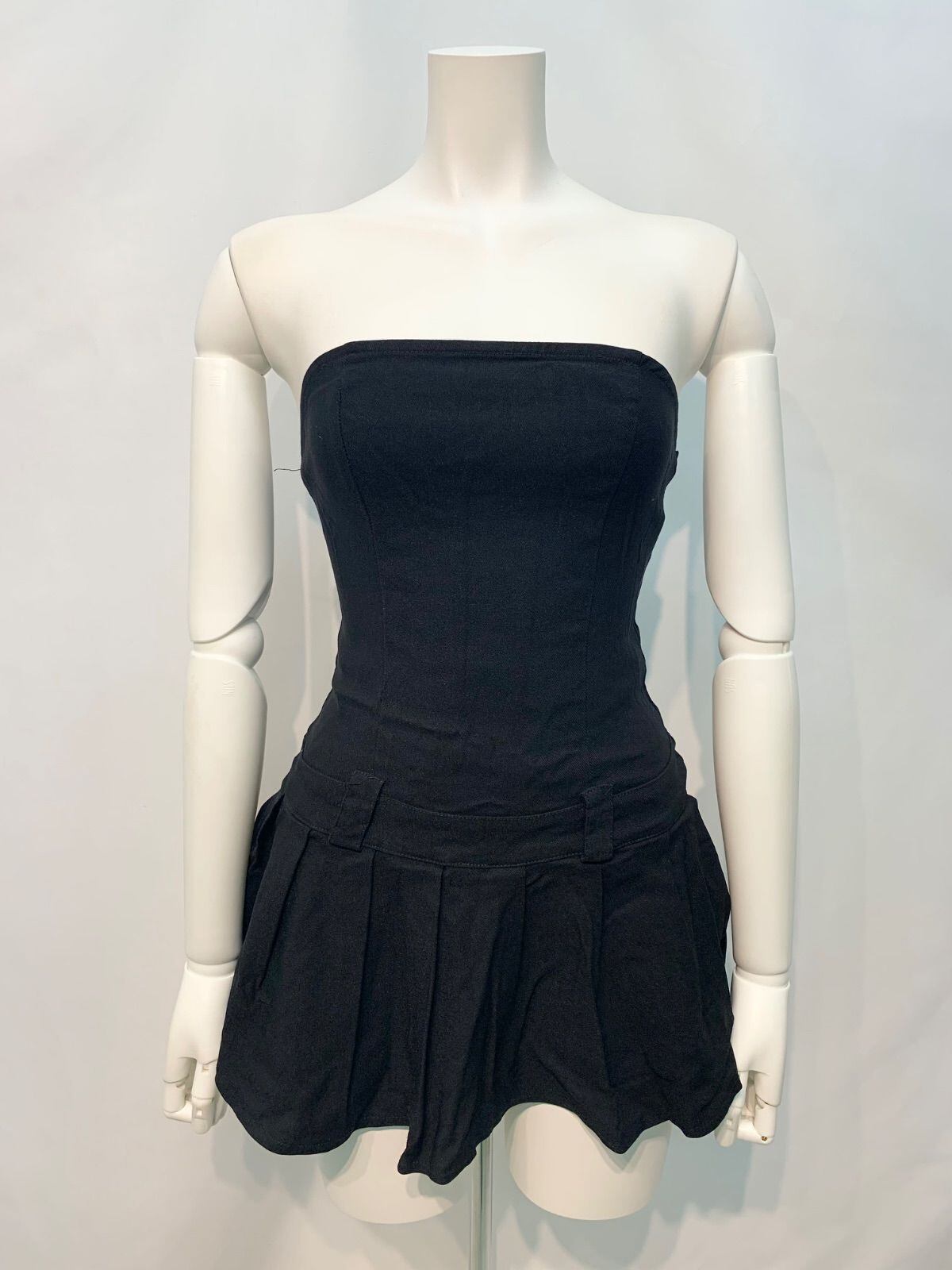 1716 キャバクラ ドレス 伸縮性 チューブトップ ミニ タイト プリーツスカート 無地 シンプル キャバドレス XS