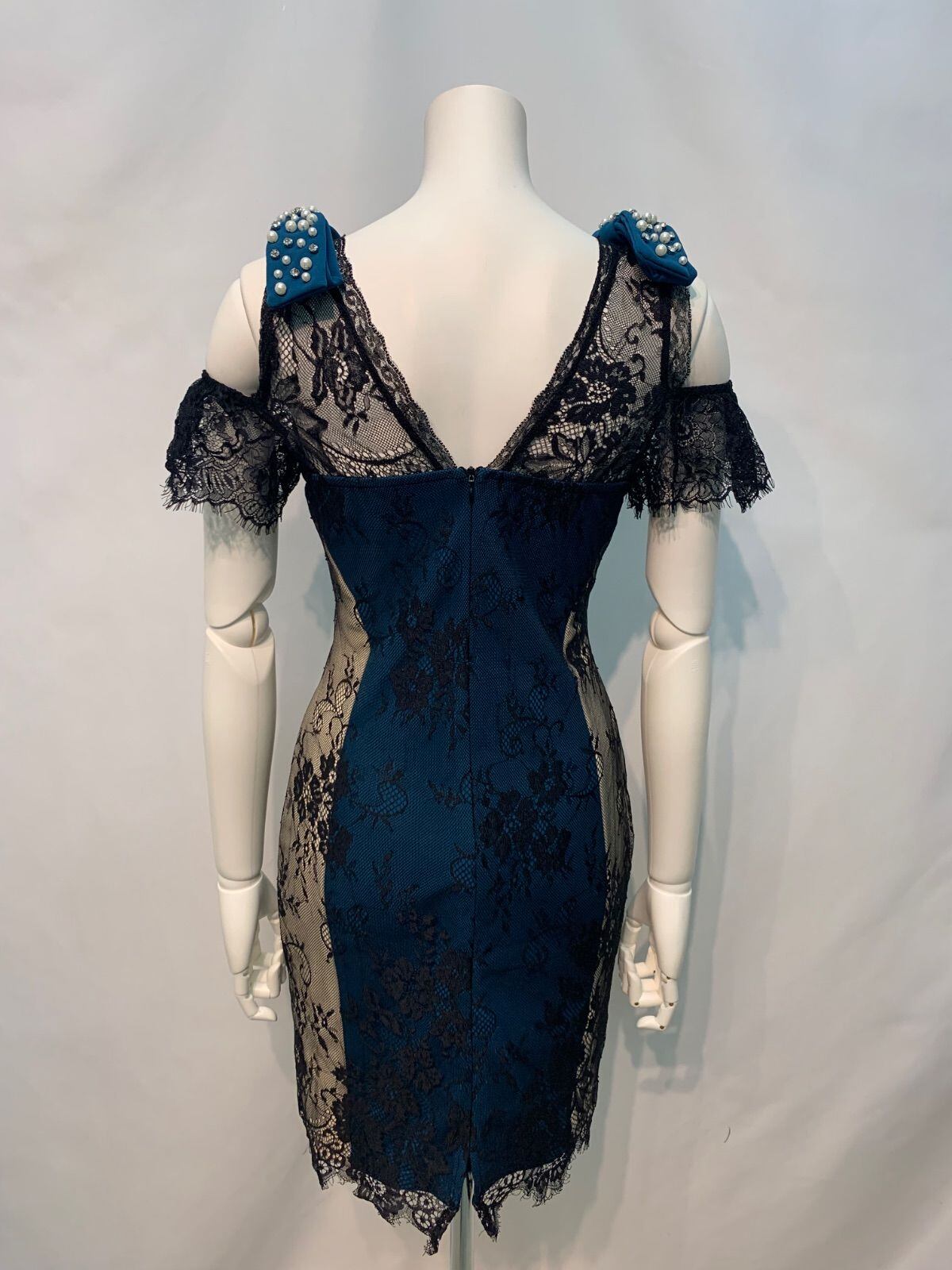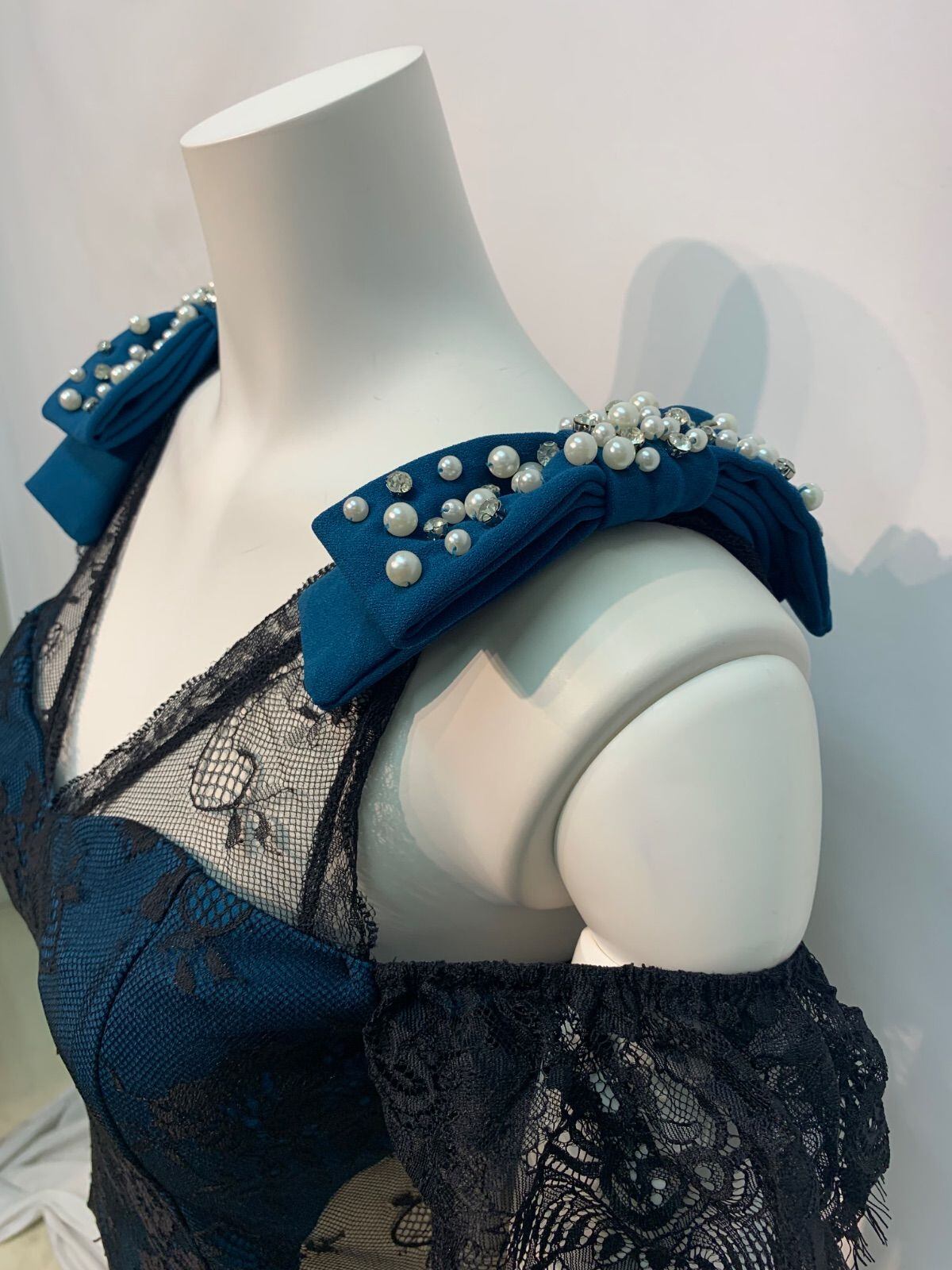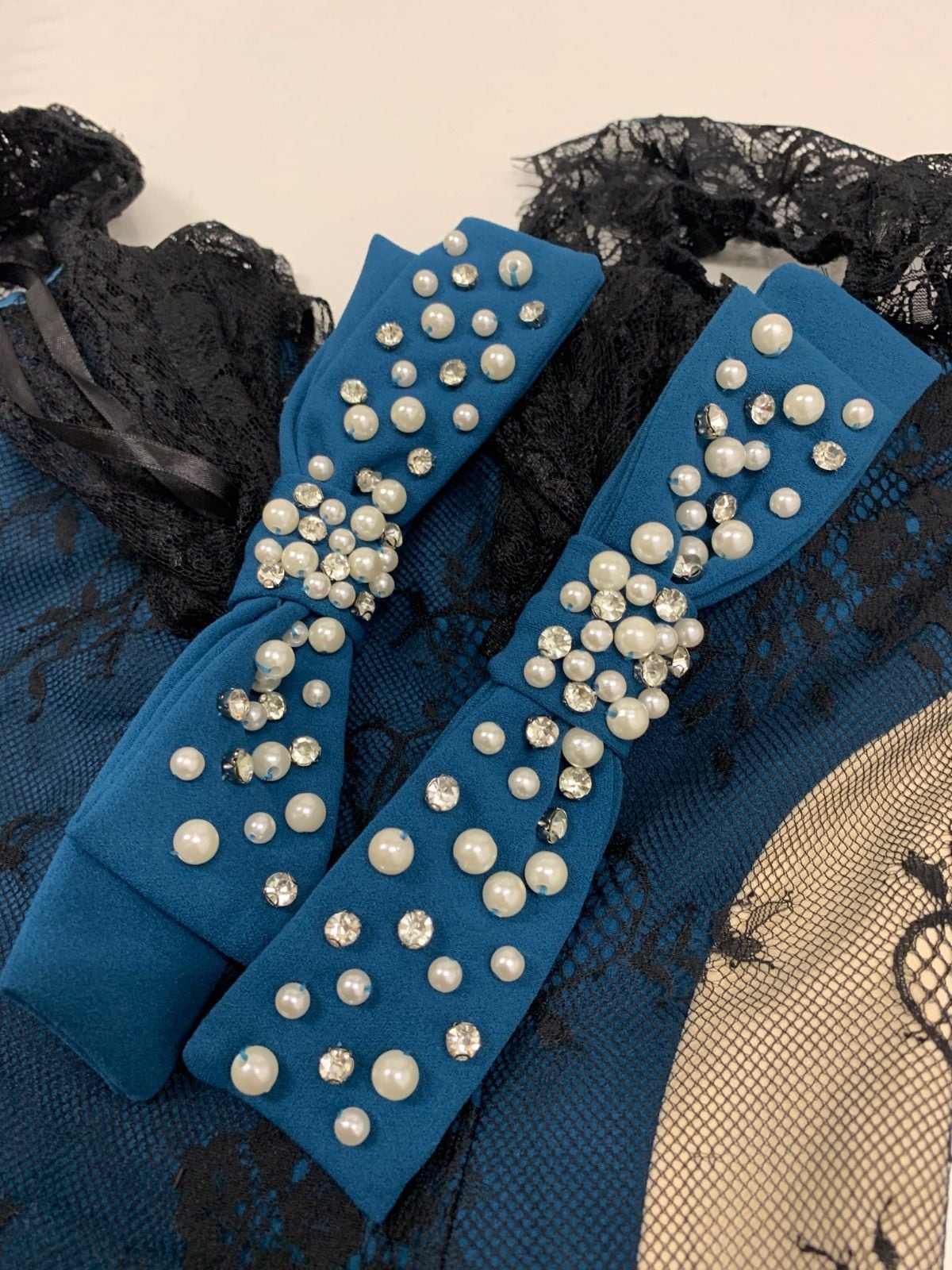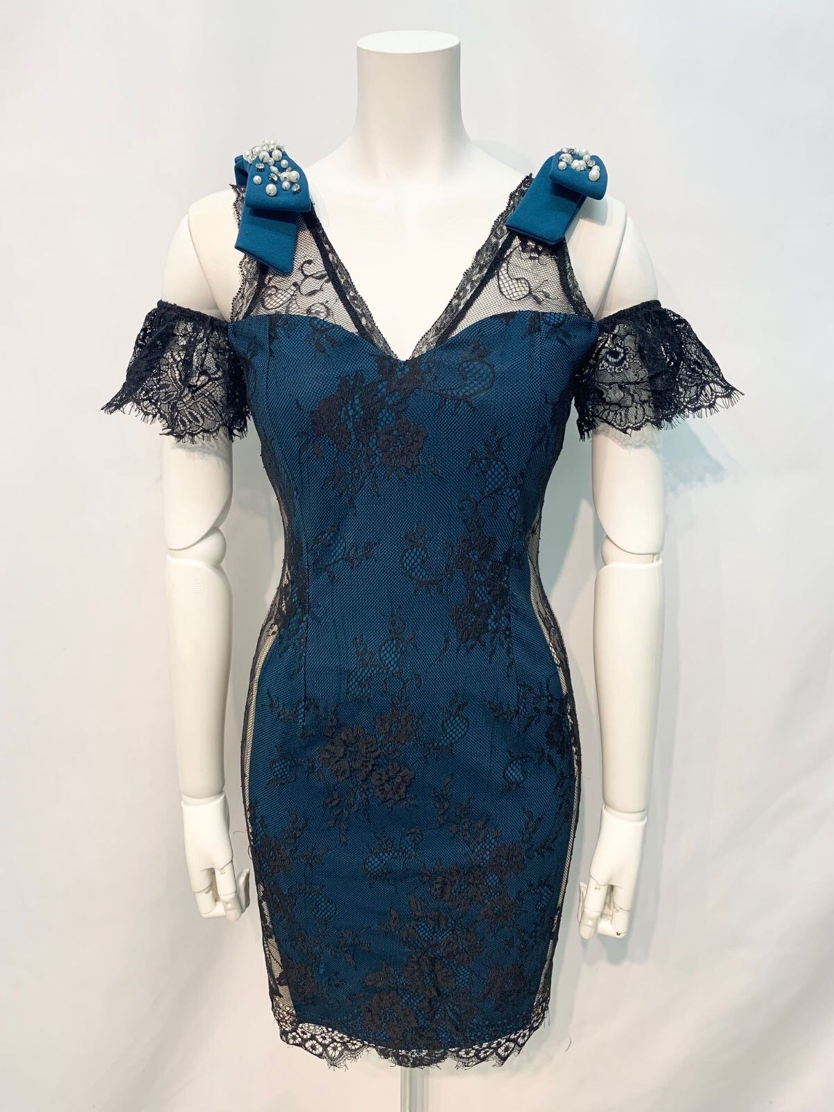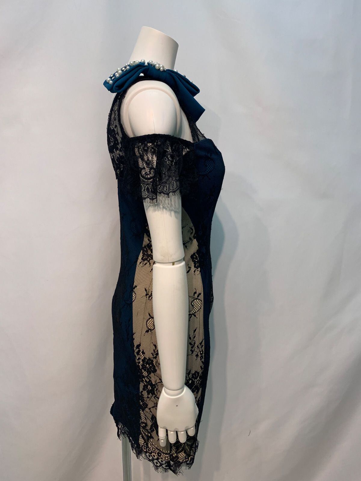 1722 Ryuyu リューユ キャバクラ ドレス ストラップリボン ストーン パール 総レース ミディ キャバドレス L