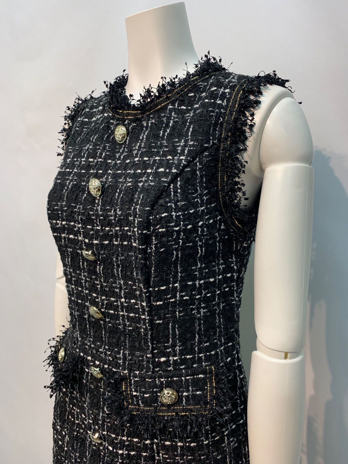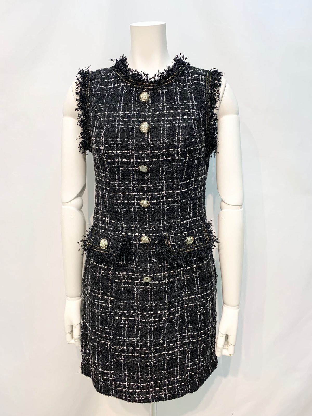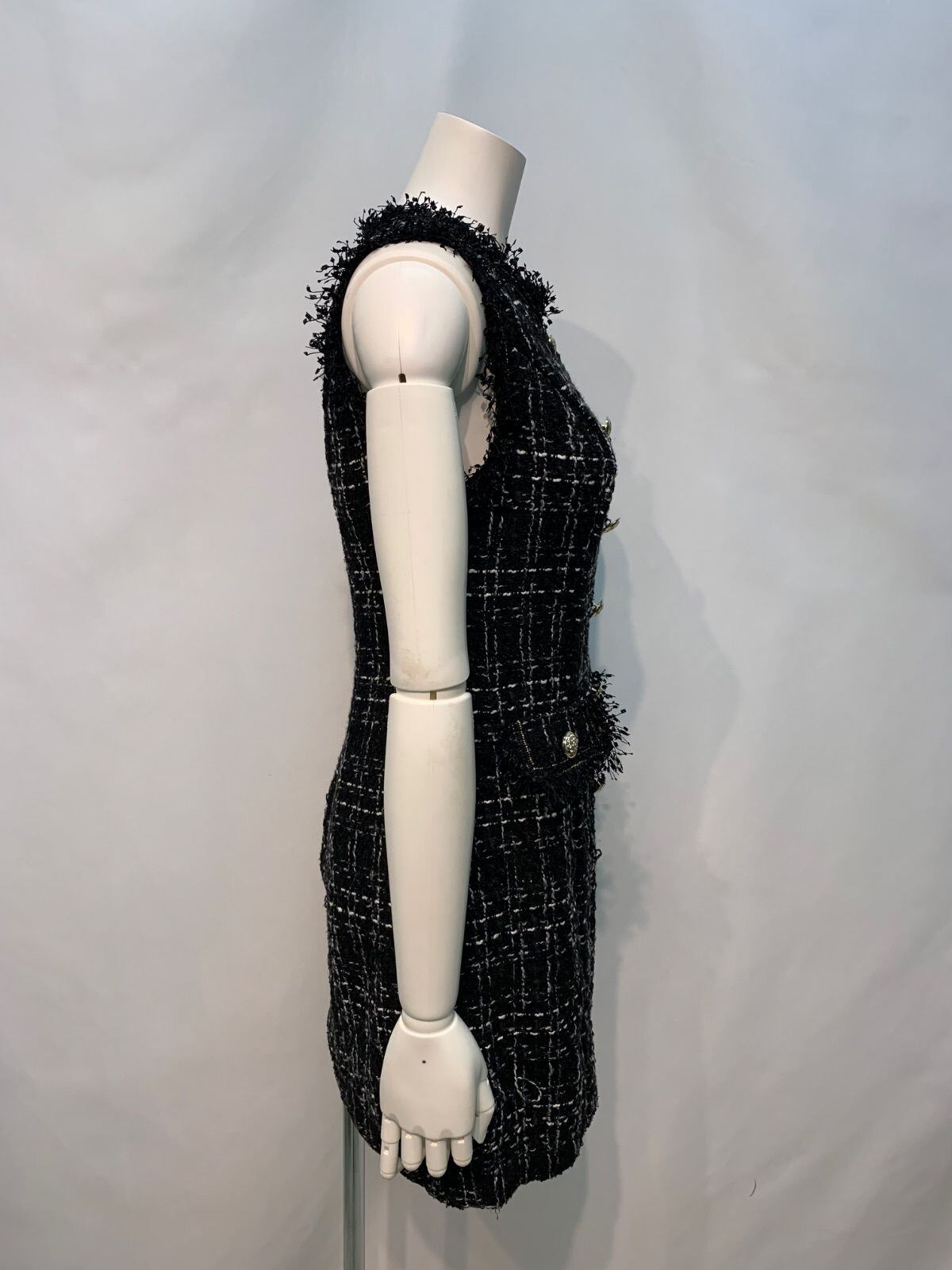 1730 キャバクラ ドレス ツイード ラメ キラキラ ノースリーブ ゴールドボタン タイト キャバドレス XS