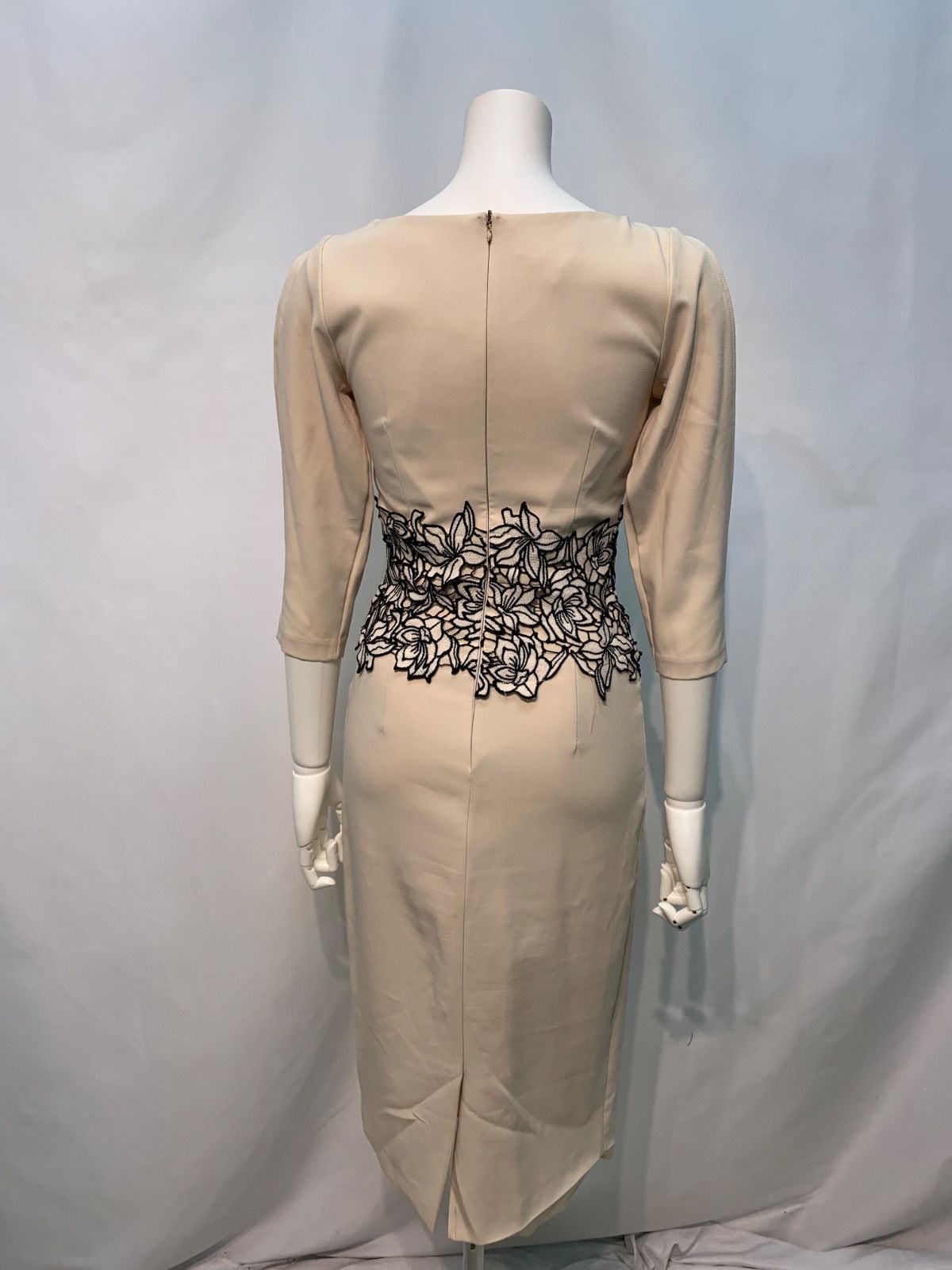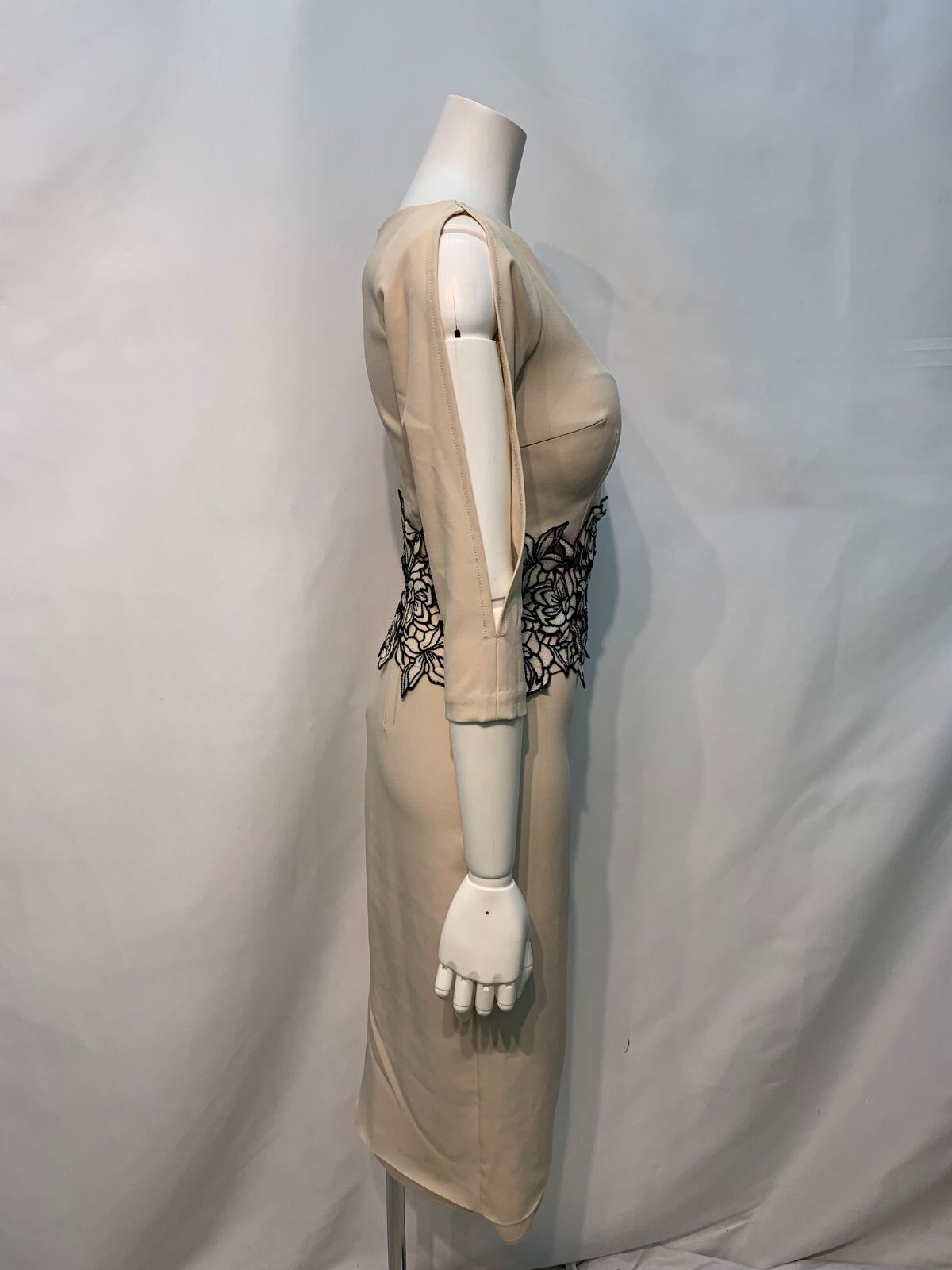 1745 rinfarre リンファーレ キャバクラ ドレス 伸縮性 タイト ミディ スリット フラワー刺繍 袖カット お呼ばれ 二次会 キャバドレス S
