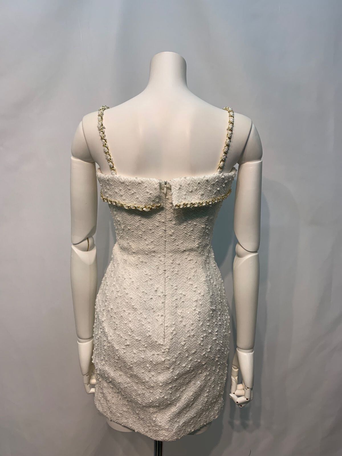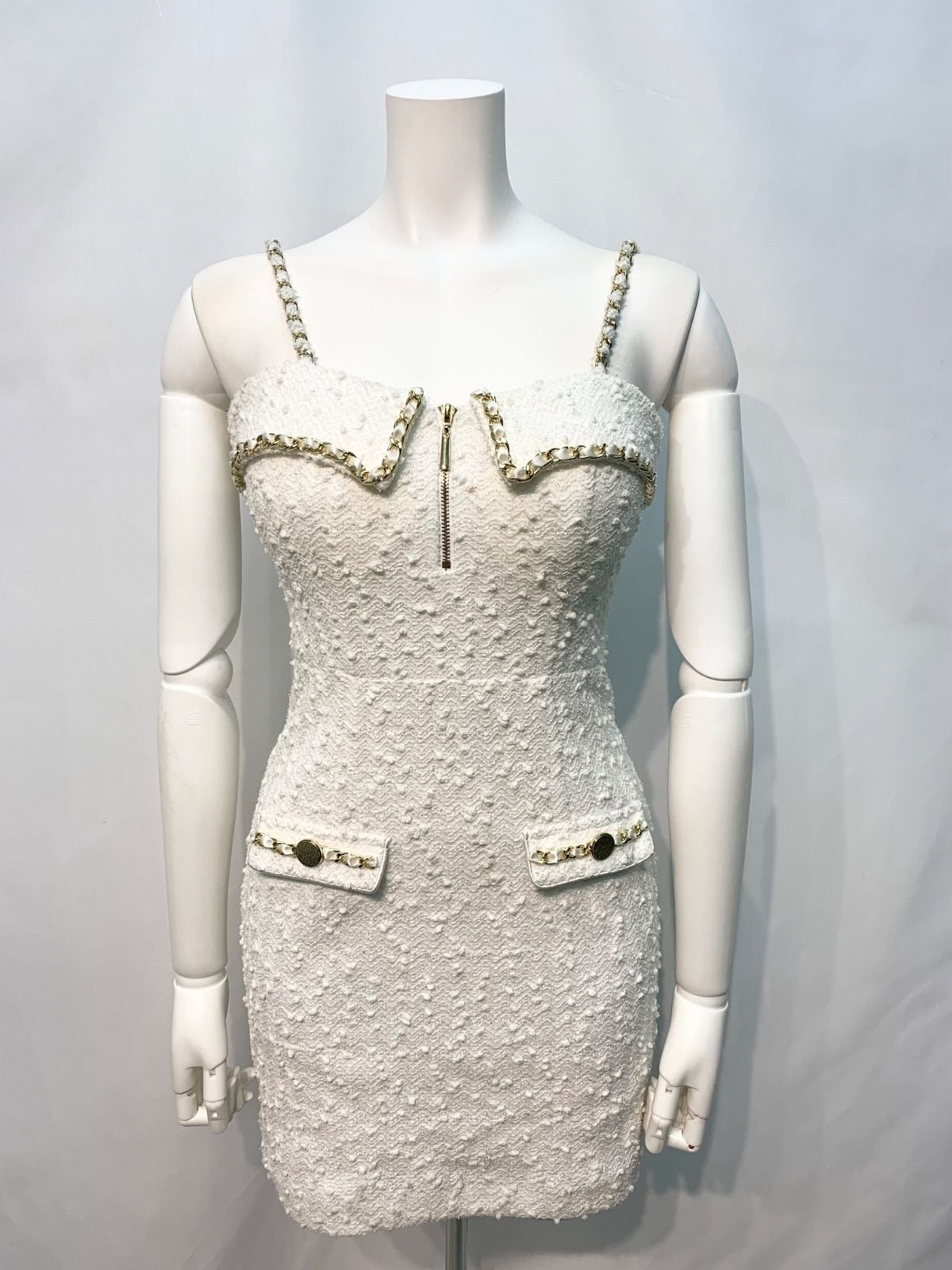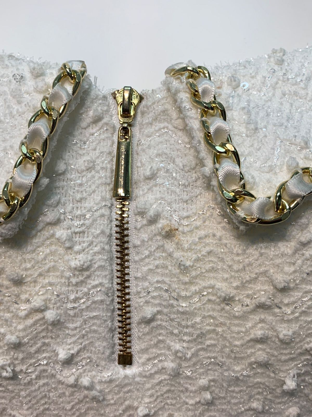 1754 an アン Andy アンディ キャバクラ ドレス ツイード チェーンストラップ ゴールド フロントジップ タイト ミニ キラキラ ラメ キャバドレス S