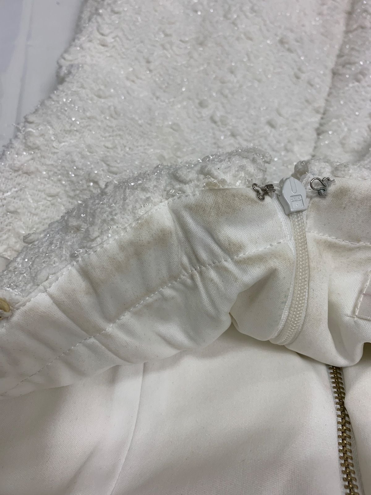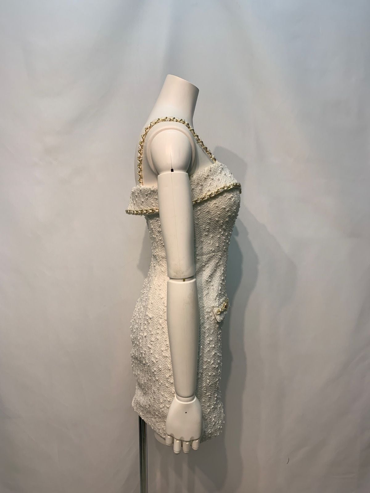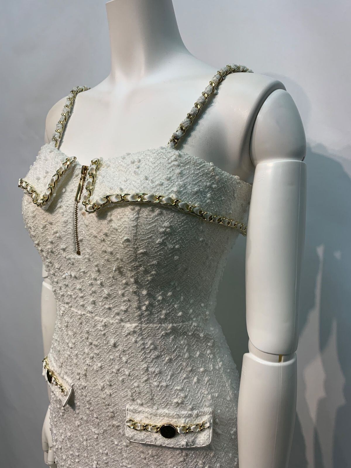 1754 an アン Andy アンディ キャバクラ ドレス ツイード チェーンストラップ ゴールド フロントジップ タイト ミニ キラキラ ラメ キャバドレス S
