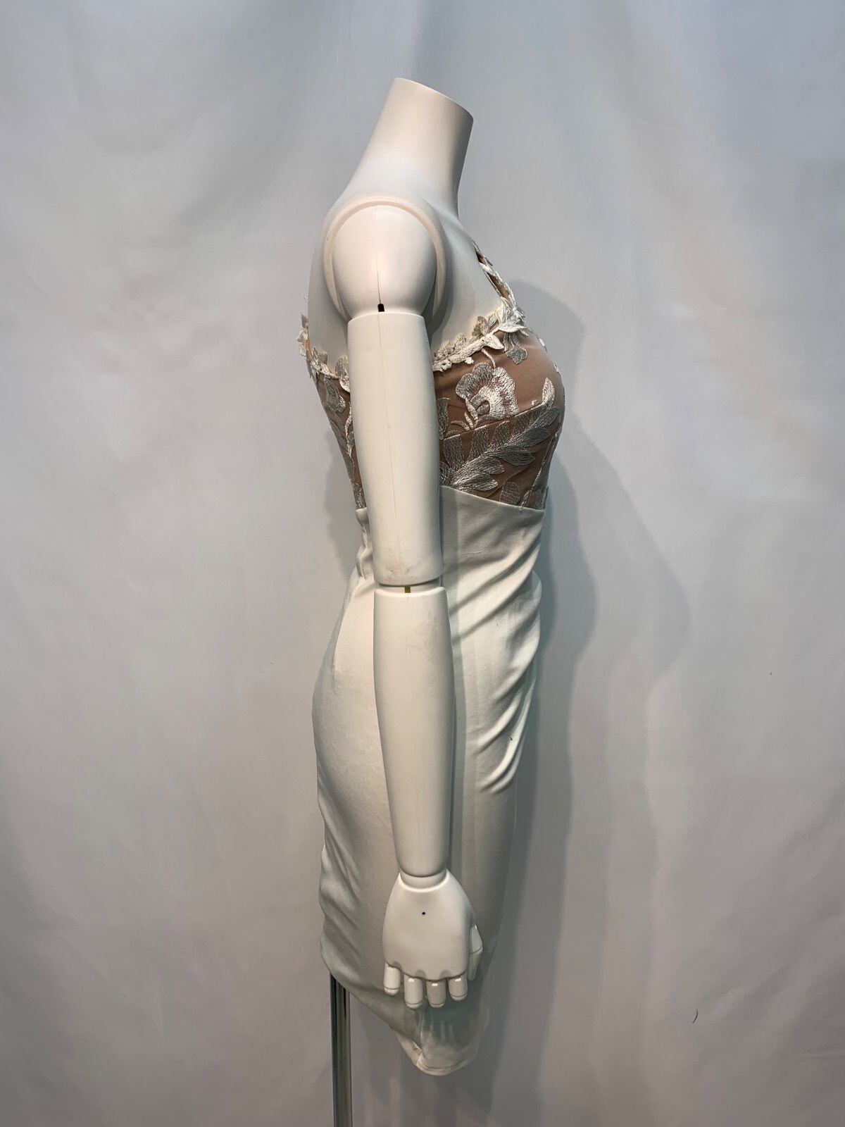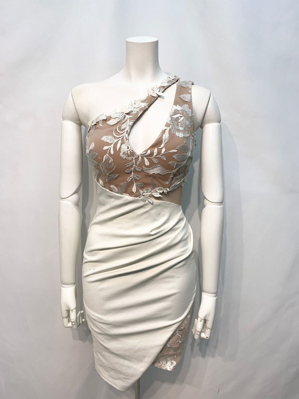 1768 JEWELS ジュエルズ キャバクラ ドレス レース ワンショルダー タイト ミニ ギャザー 伸縮性 フラワー キャバドレス S