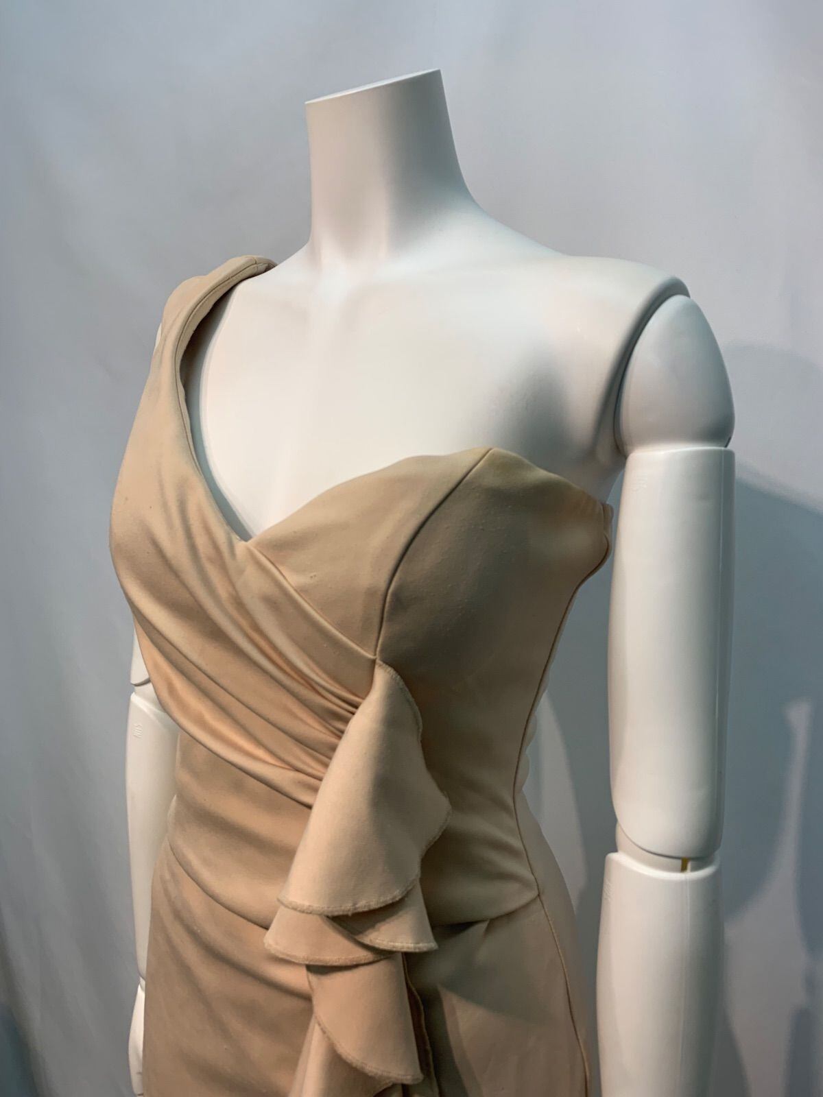 1791 JEAN MACLEAN ジャンマクレーン キャバクラ ドレス ワンショルダー フリル 伸縮性 ミディ キャバドレス S